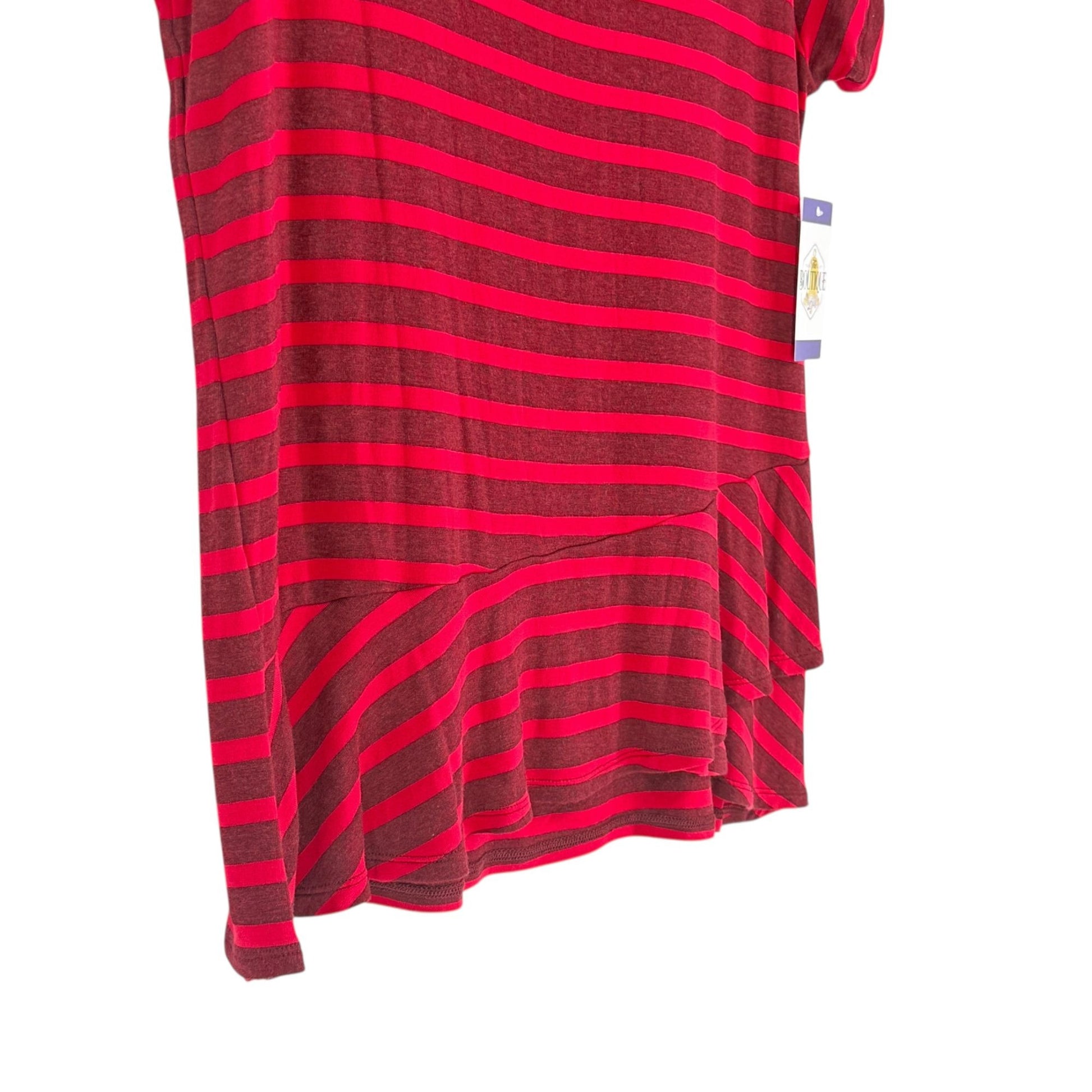 CAbi Womens M Sweet Talk Striped Peplum Shirt Ruffle Short Sleeve Garnet Red