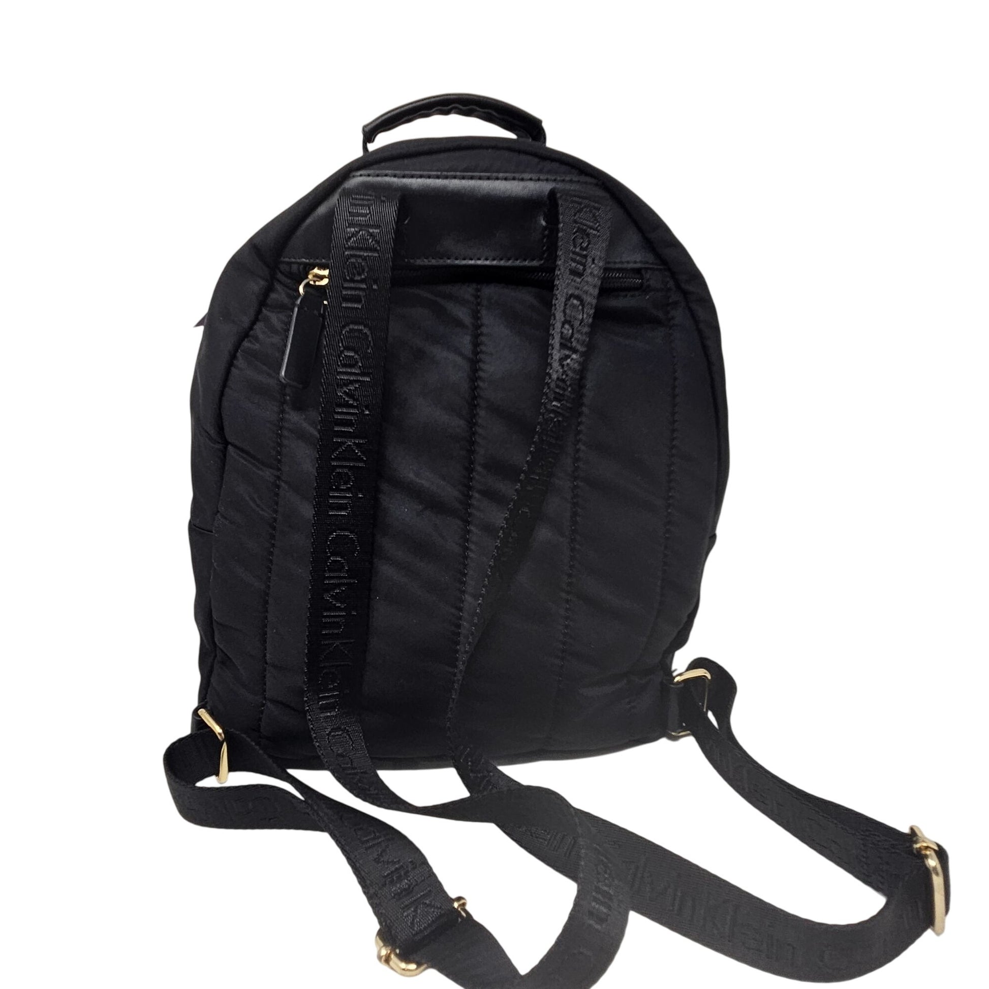 Calvin Klein Mini Back Pack Purse Black Gold Zip Adjust Straps Pockets RN54163