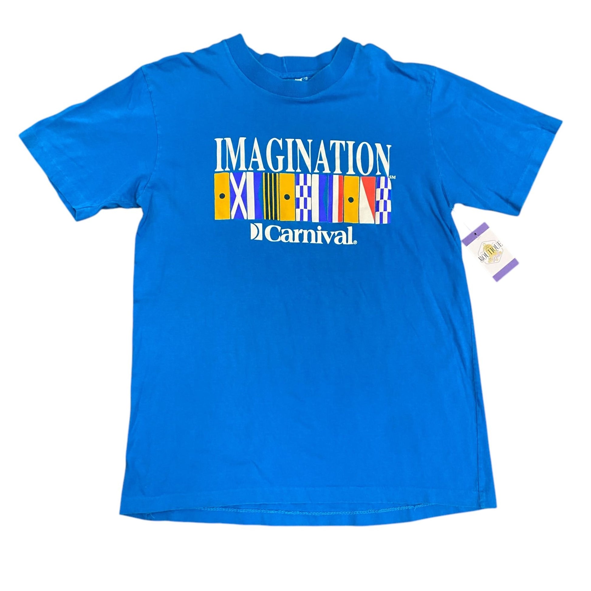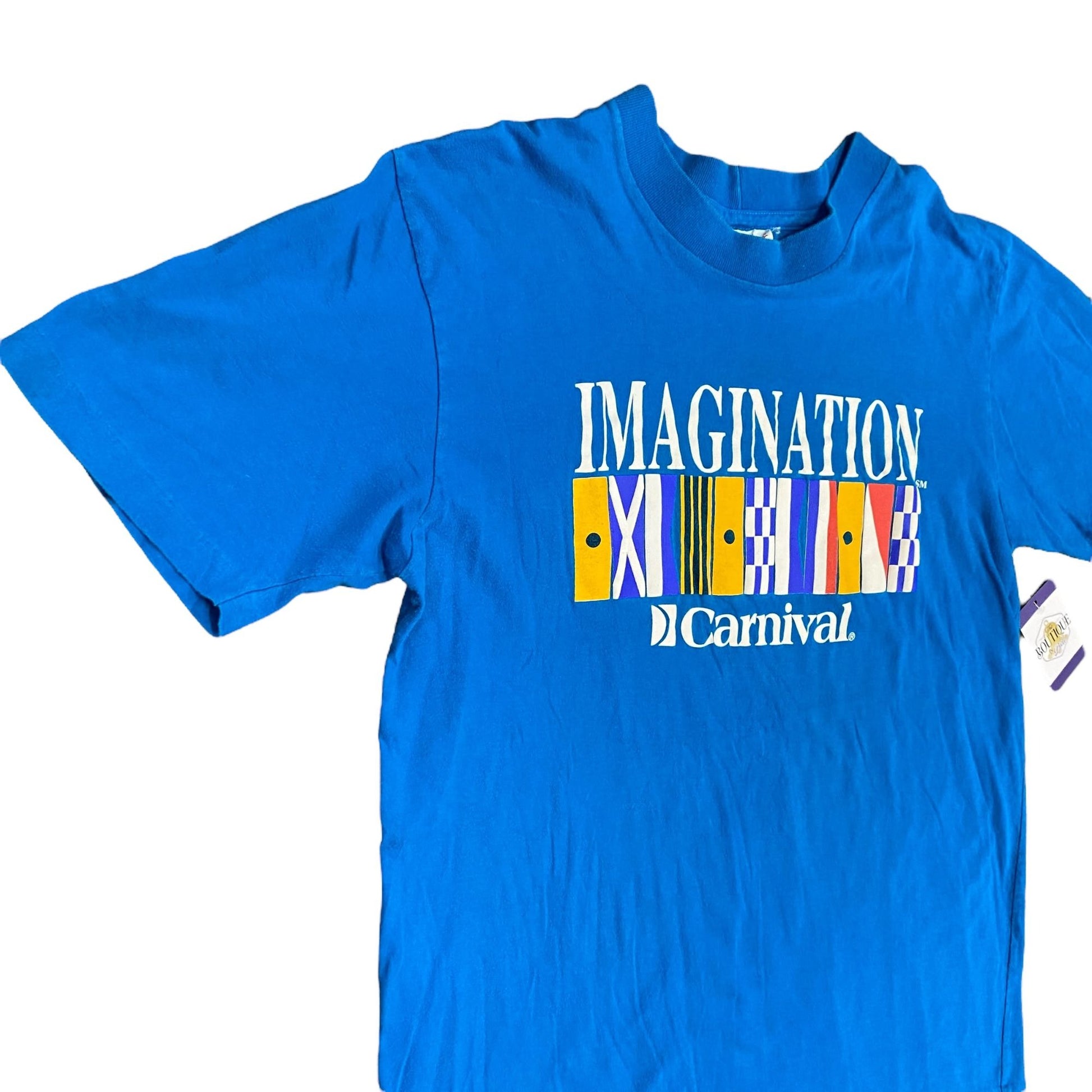 Vintage Carnival Cruise Mens XXL Blue TShirt Single Stitch Imagination Ship Flag