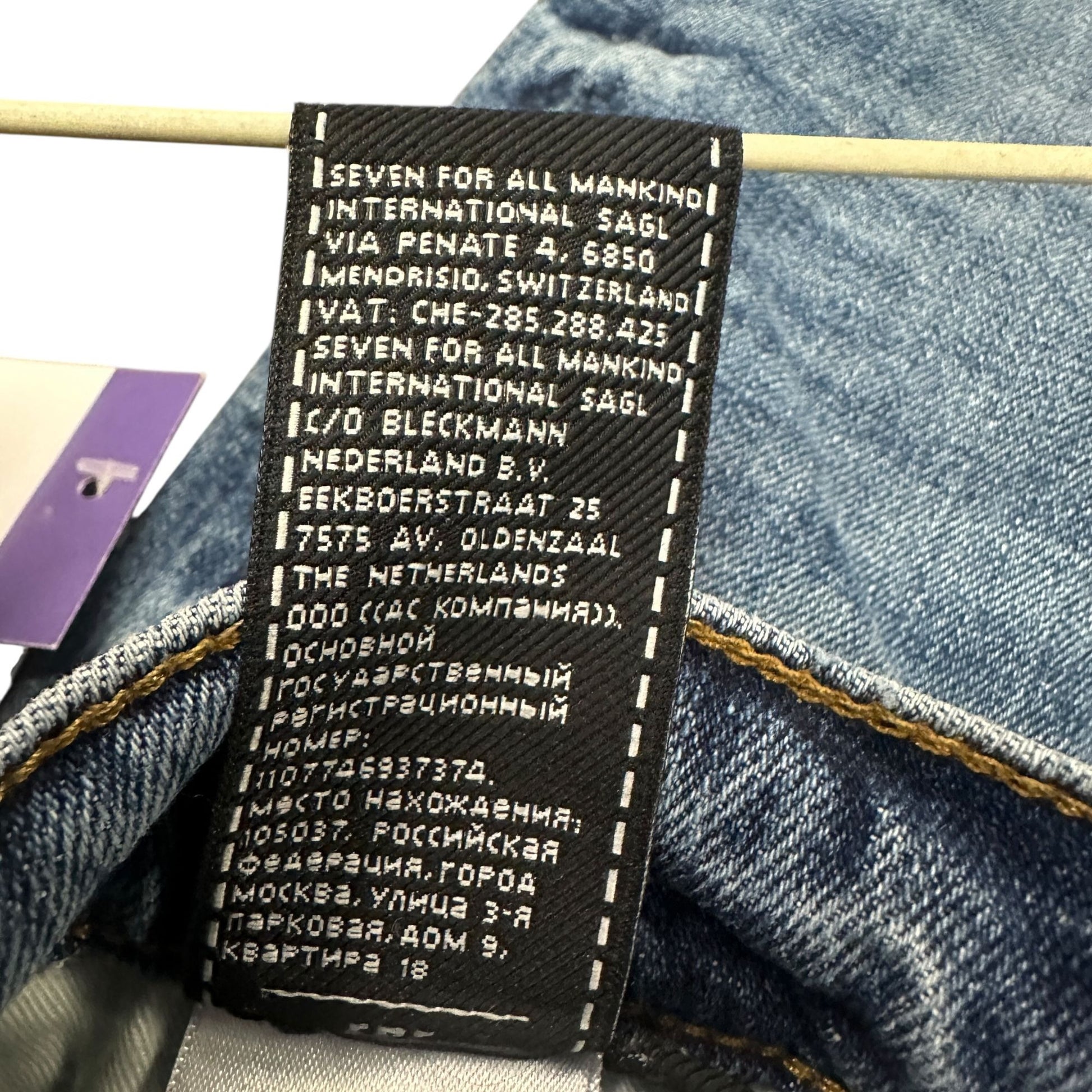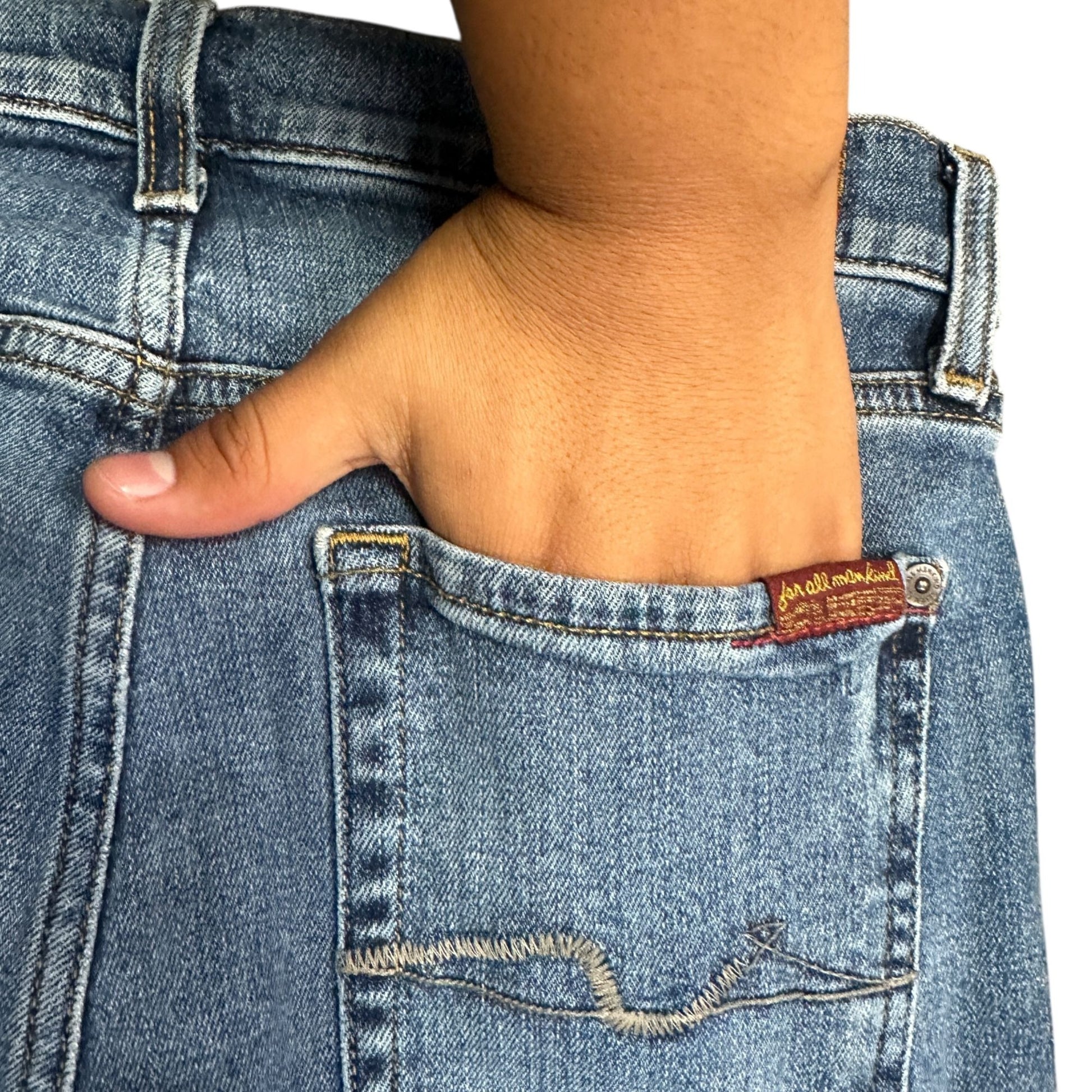 These Seven For All Mankind jeans embody the timeless appeal of classic denim with a modern twist. The "Slimmy" cut is a classic slim fit from the hip to the hem, designed to be streamlined but not too skinny. Crafted with precision, they offer a comfortable fit that transitions effortlessly from casual day to date night wear. The subtle fading and whiskering add character, while the durable construction ensures longevity. Perfectly tailored for those who appreciate both style and substance, these jeans are a wardrobe staple.