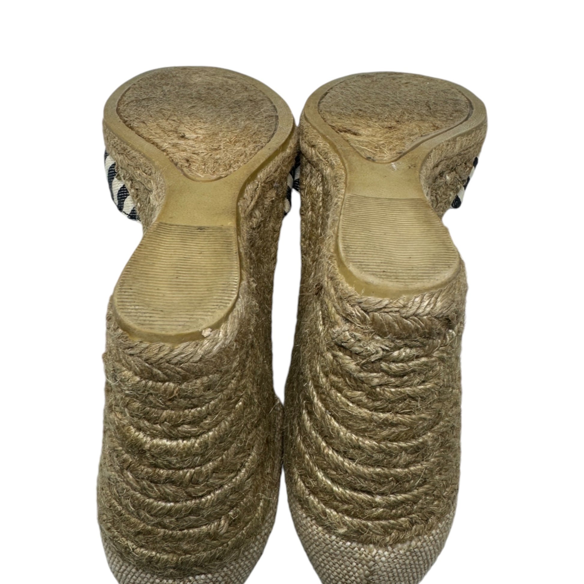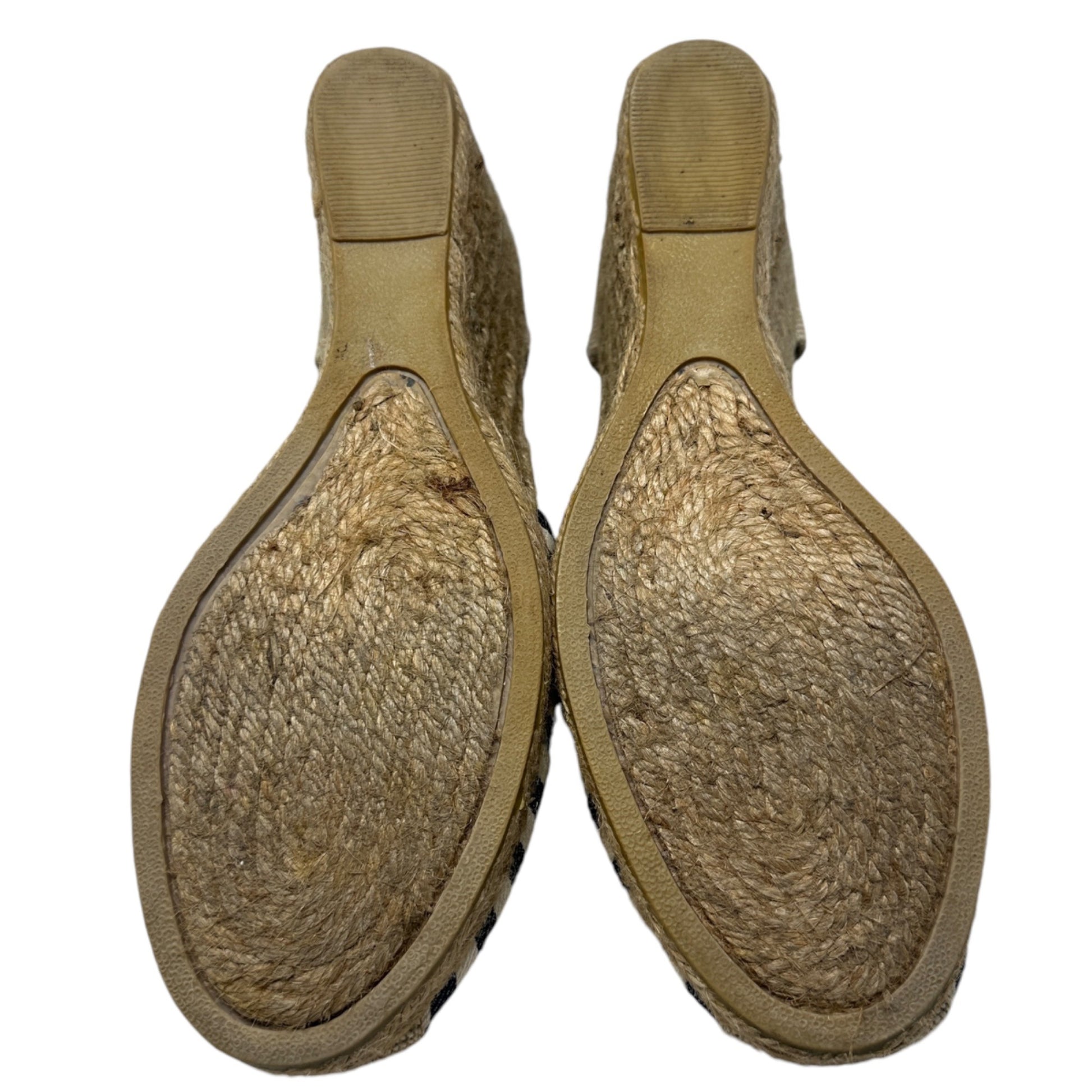 Bass 10 Emelia Black White Striped Wedge Espadrilles Slingback Summer Heels