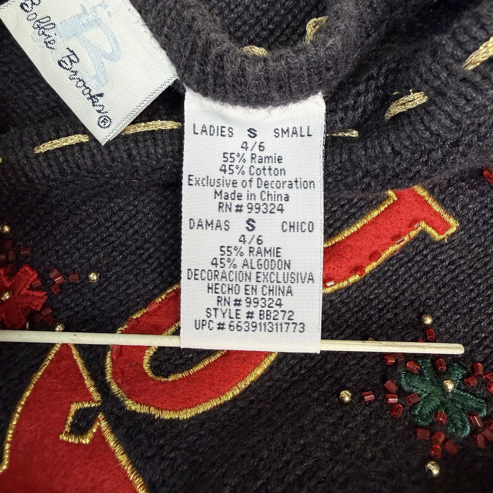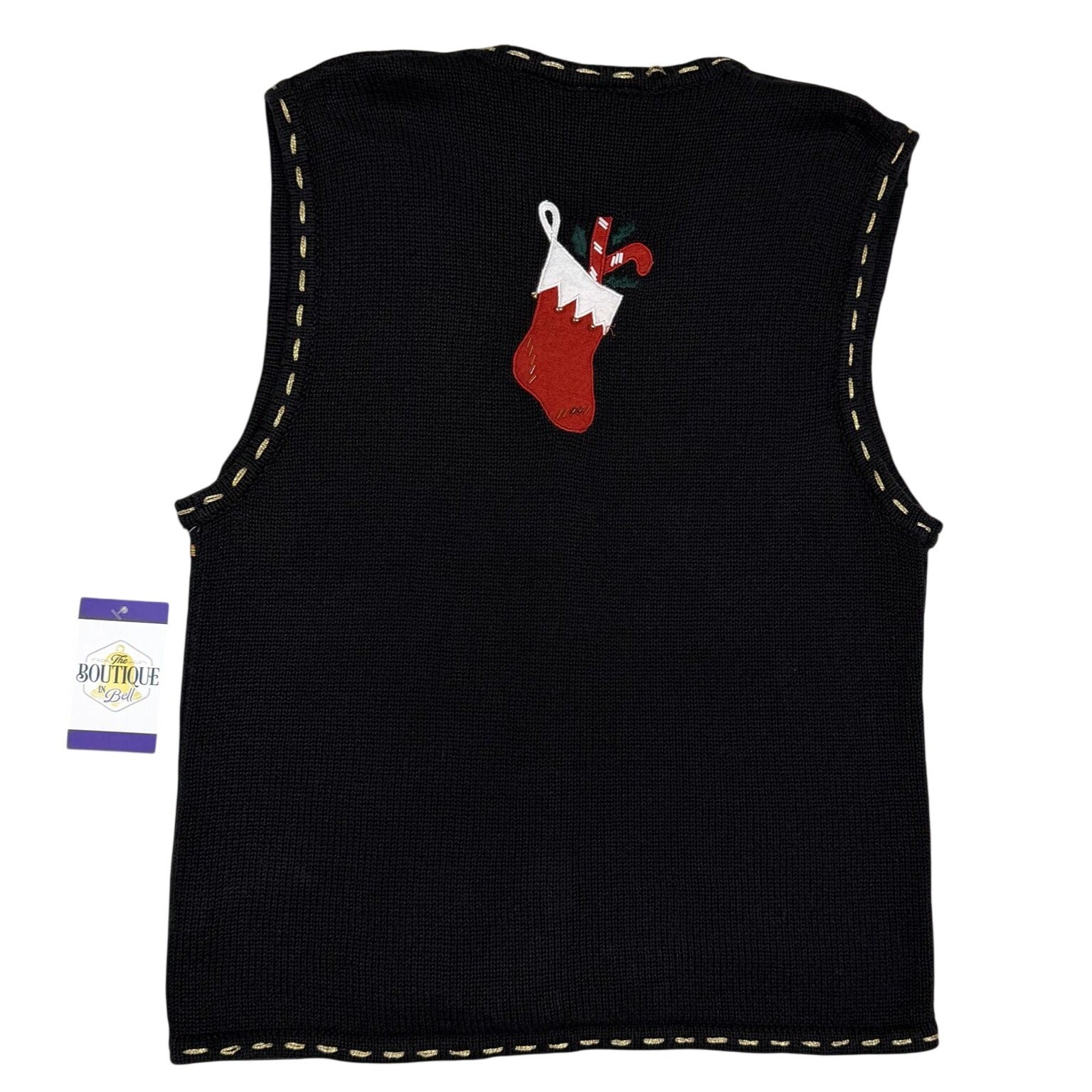 Bobbie Brooks Womens S Christmas Sweater Vest Black Festive Embroidered Beaded