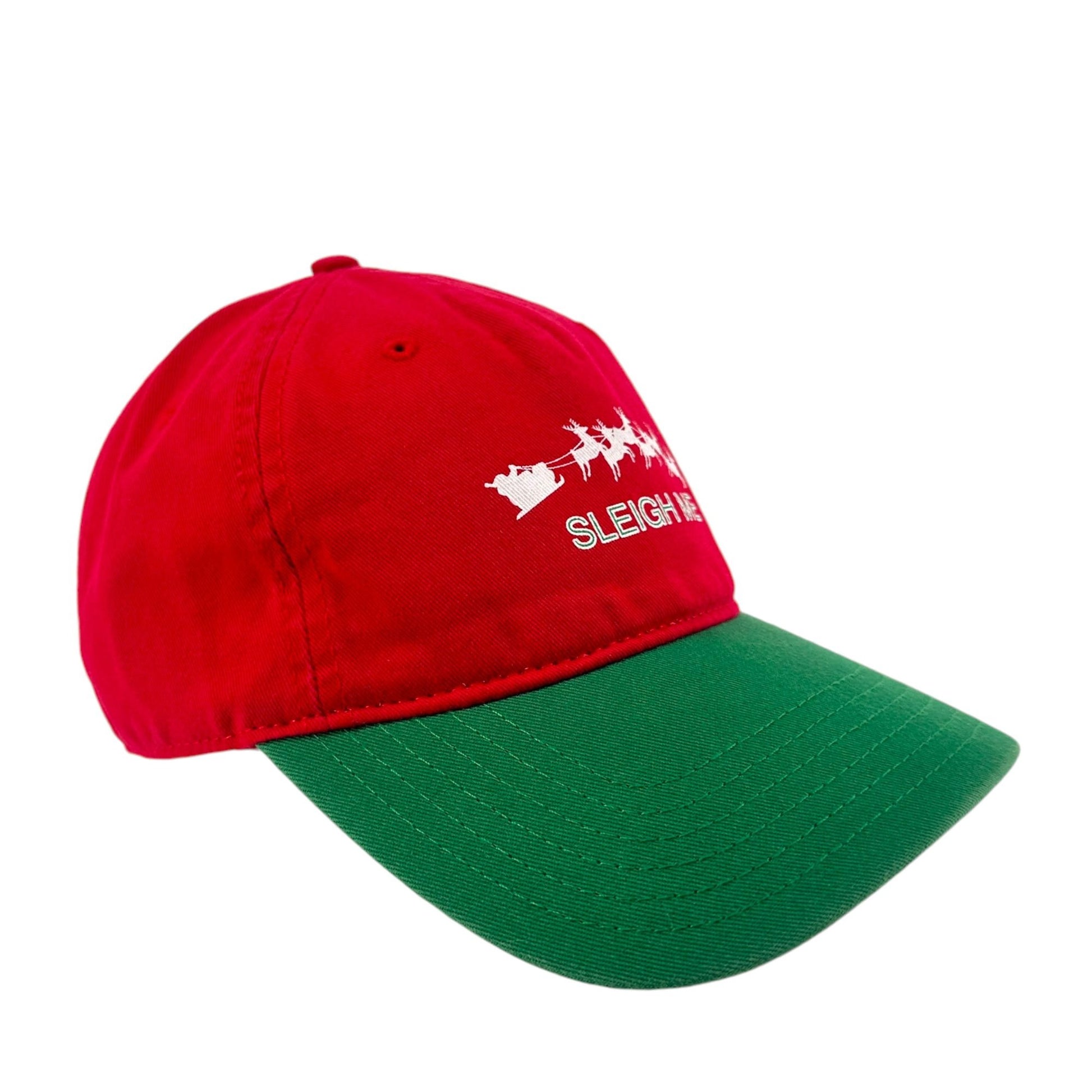 Get festive with this NWT Ugly Stuff Supply "Sleigh Me" strapback hat, featuring Santa’s sleigh and reindeer embroidered in bold holiday style. With a bright red crown, green brim, and playful slogan, this 100% cotton adjustable cap is perfect for Christmas parties, gag gifts, or holiday season wear. OSFM makes it a fun and easy fit for anyone who wants to sleigh all season long.