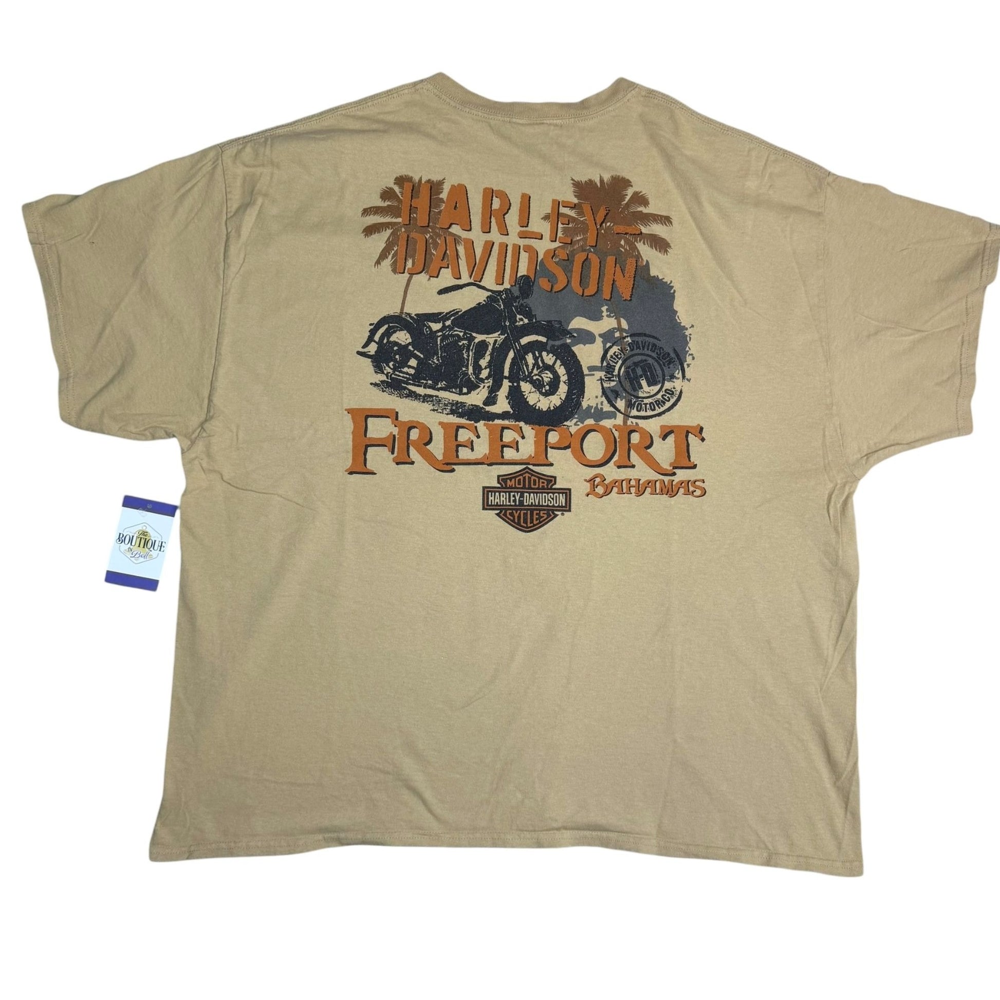 Harley Davidson Freeport Bahamas 3XL Beige Graphic TShirt Double Sided Print