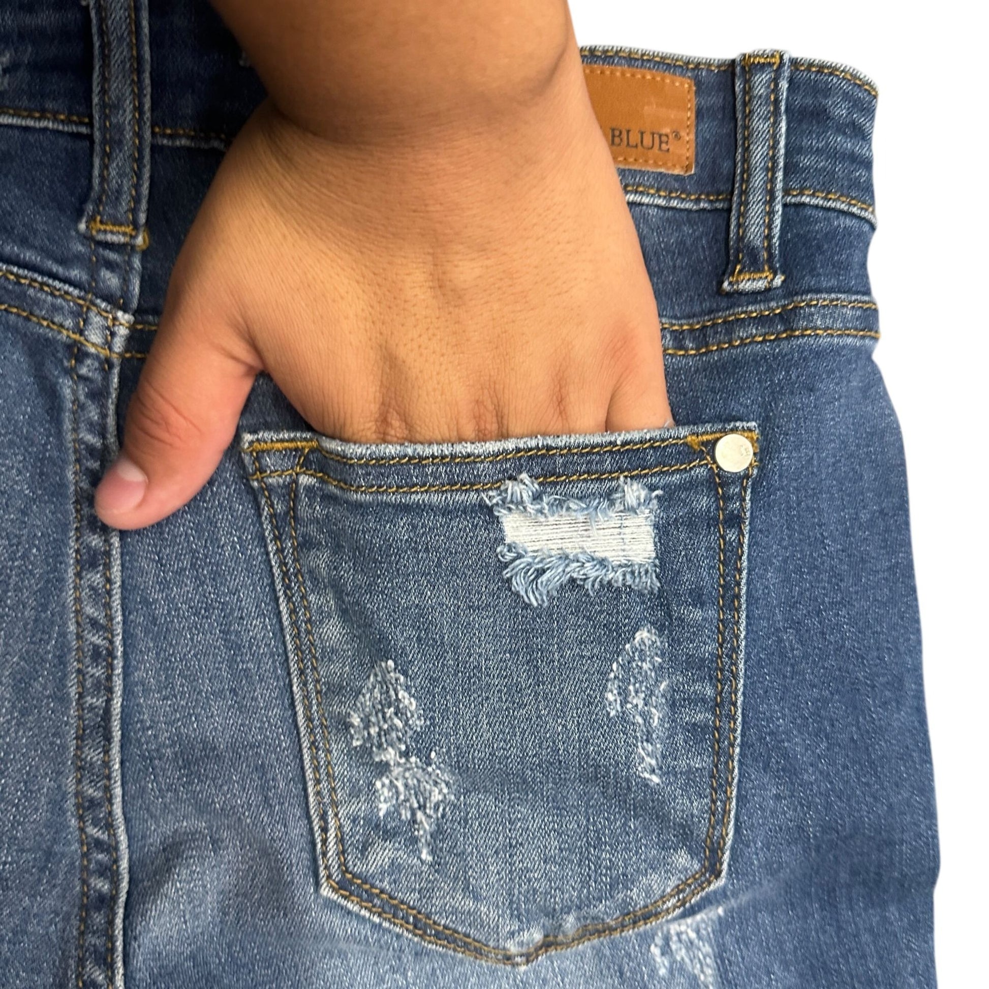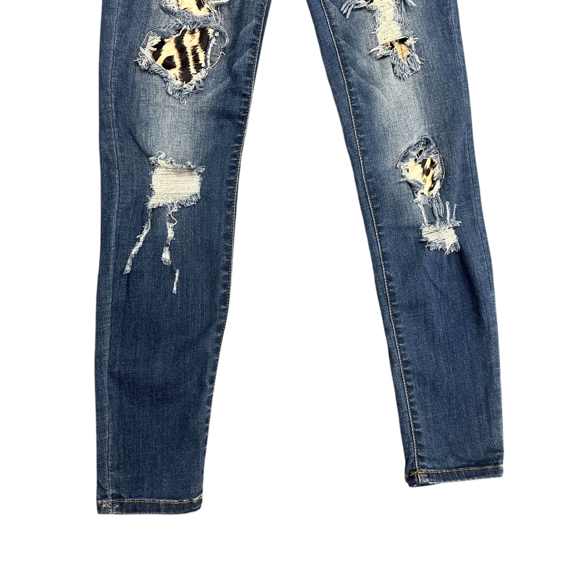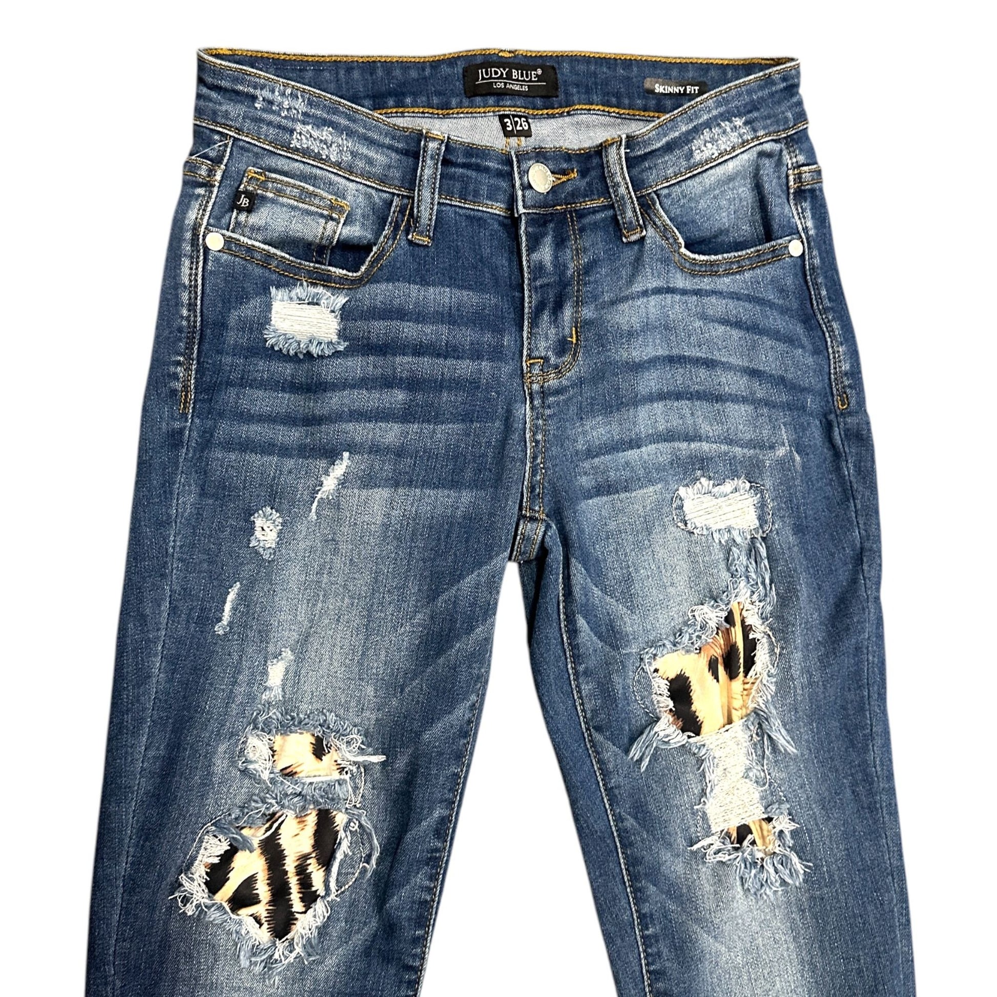 Judy Blue Juniors 3/26 Skinny Fit Ripped Jeans Animal Print Accents Stretch Logo