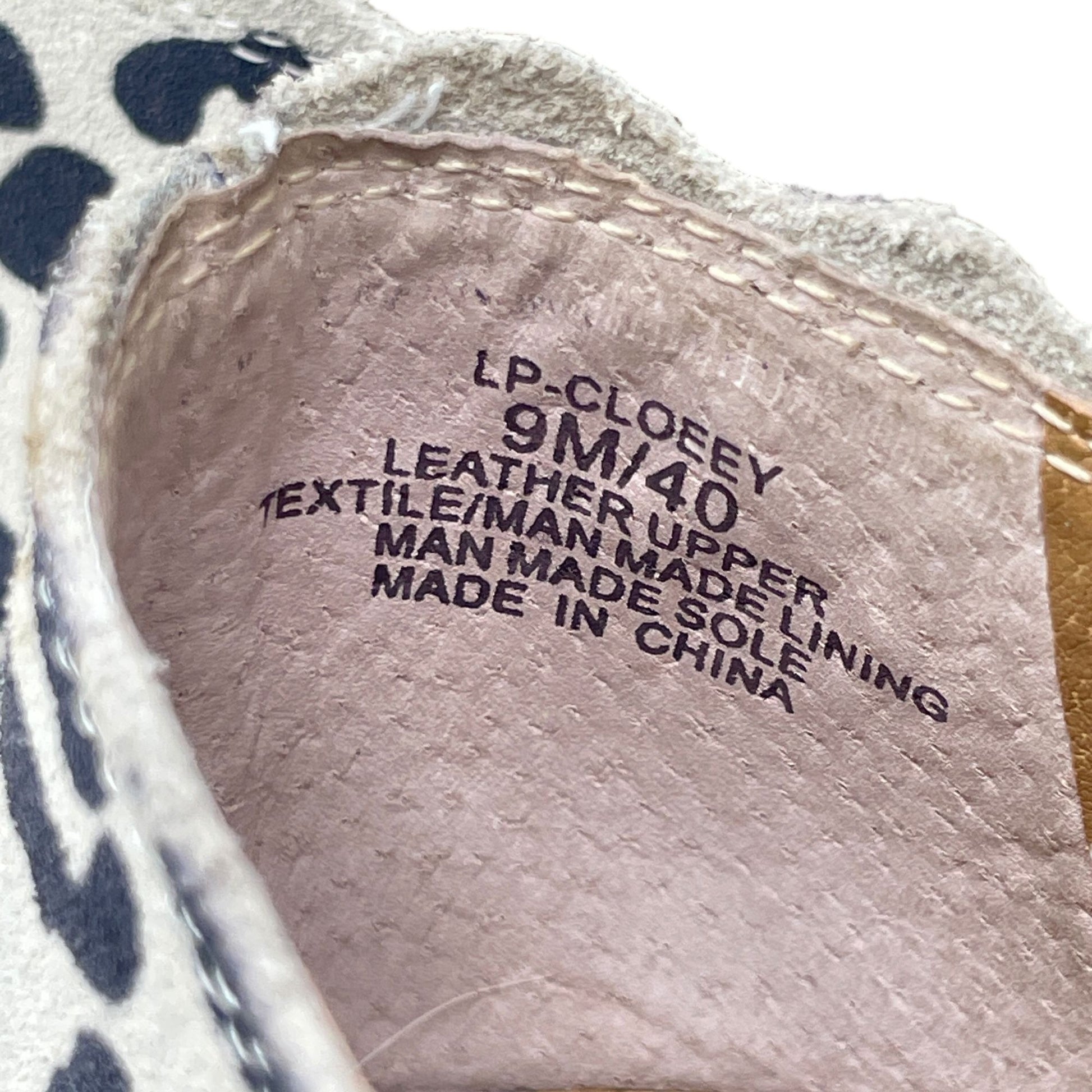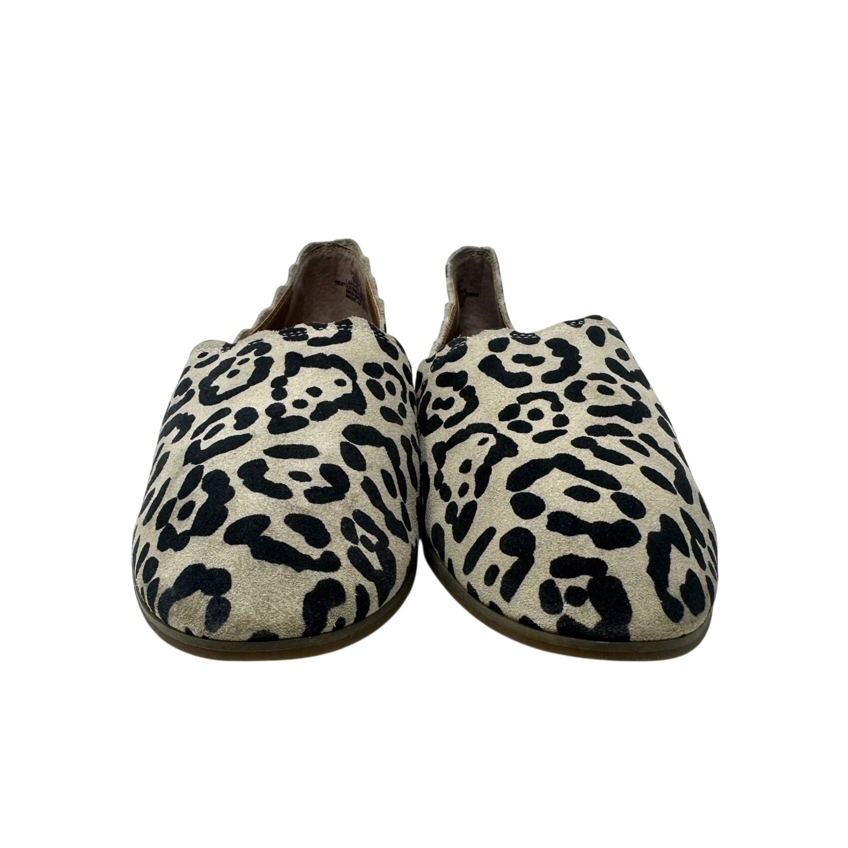 Lucky Brand Womens 9M Cloeey Scalloped Leopard Print Leather Flat Loafer Stone