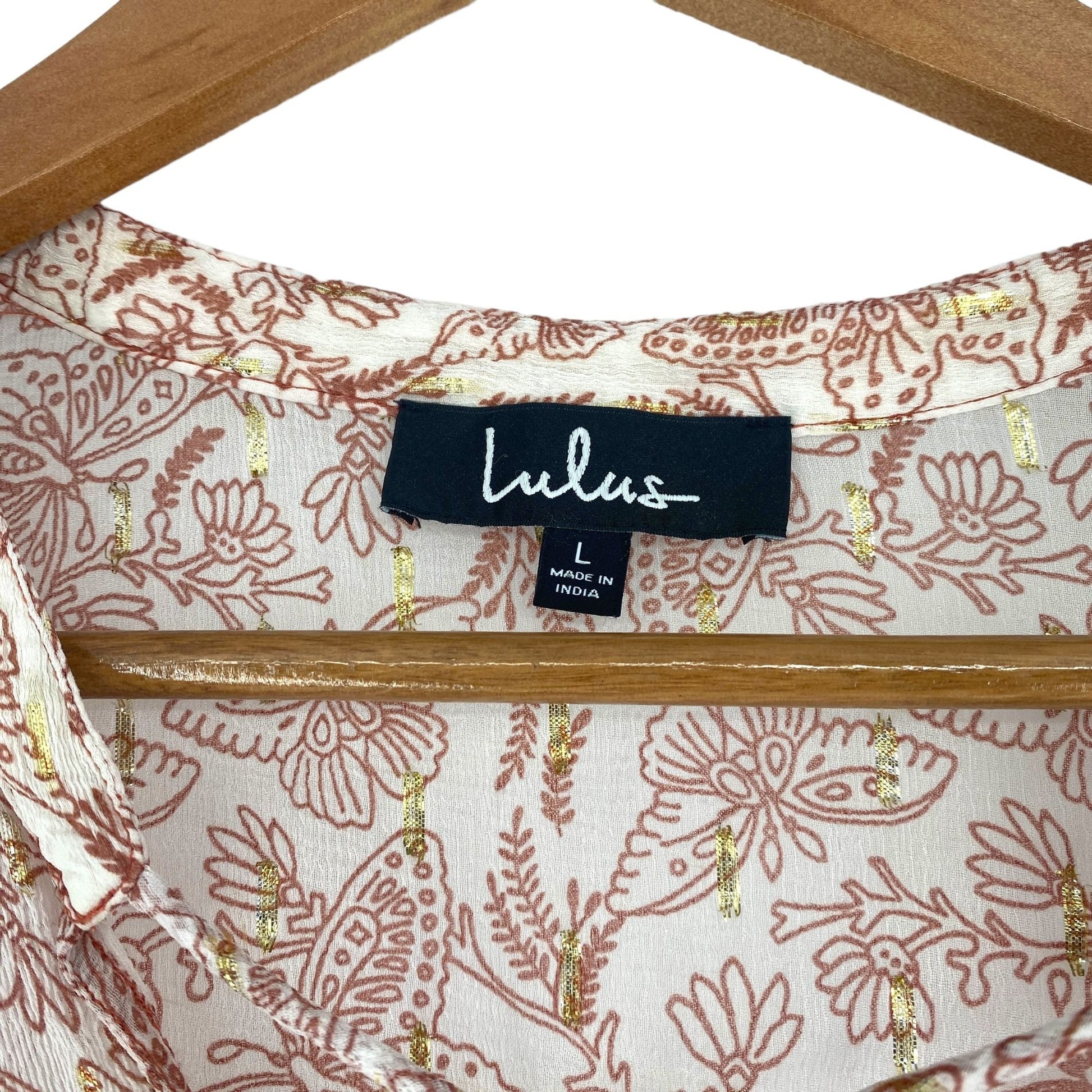 Lulus Blouse Desert Days Sheer Boho Ruffle Tiered Butterfly Floral Bell Sleeves
