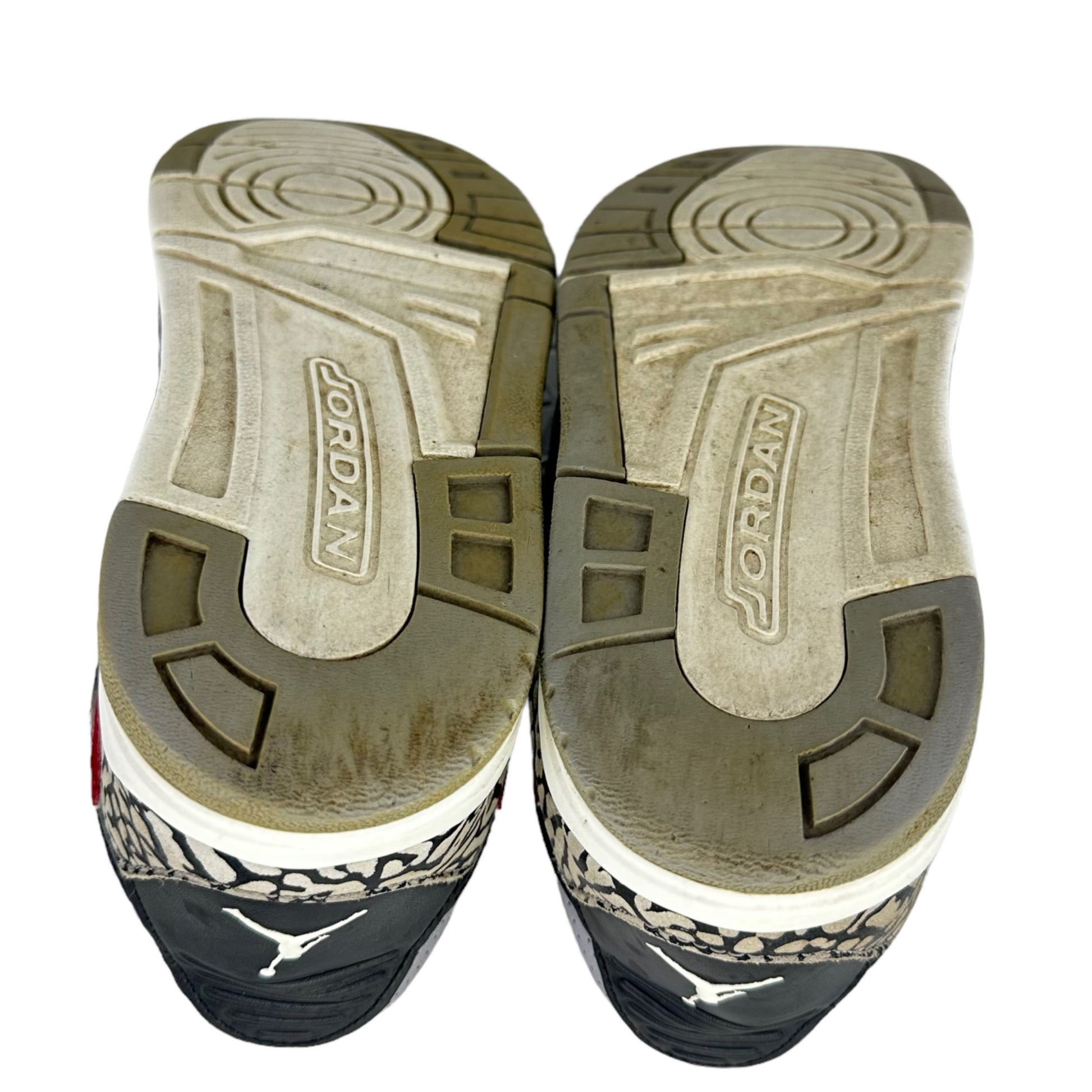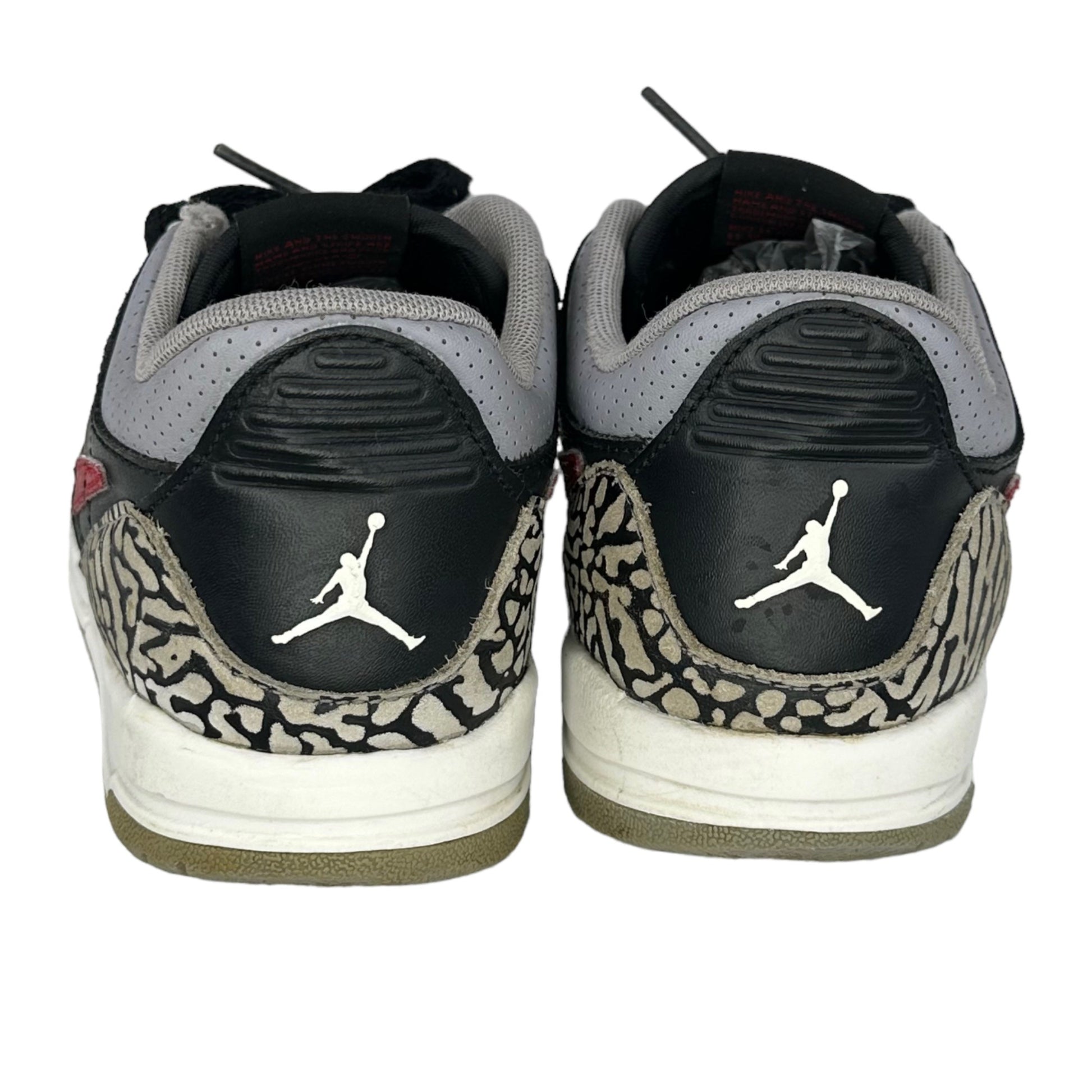Sporty kid’s black and red low-top sneakers with bold Bred Cement color blocking and classic Jordan heritage details, perfect for everyday wear, school, or play. These shoes feature a leather and synthetic upper with secure laces and strap closure, offering both comfort and style for active little feet. With cushioned midsoles and durable rubber outsoles, they deliver reliable traction for running, jumping, and all-around fun. A versatile pair that pairs easily with casual or athletic looks.