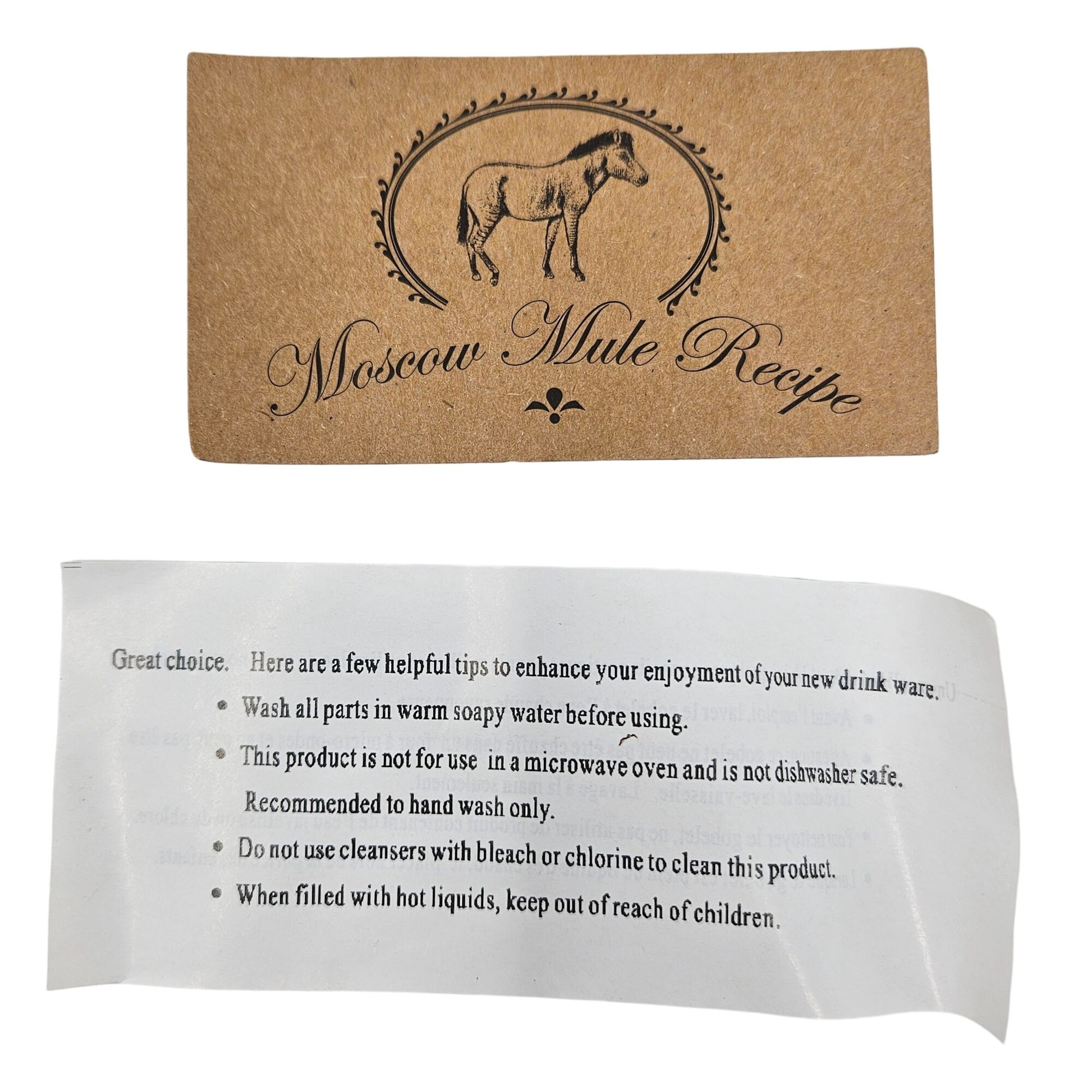 Elevate your cocktail experience with these copper-tone Moscow Mule mugs, designed to keep drinks icy cold and presentation stylish. Each mug features the Jim Beam “Drink Smart” logo on one side and a Moscow Mule recipe card for authentic preparation. The sturdy metal construction and angular handle add a sleek touch to any bar setup, perfect for bourbon cocktails, mixed drinks, or as a thoughtful gift for whiskey lovers and home entertainers.