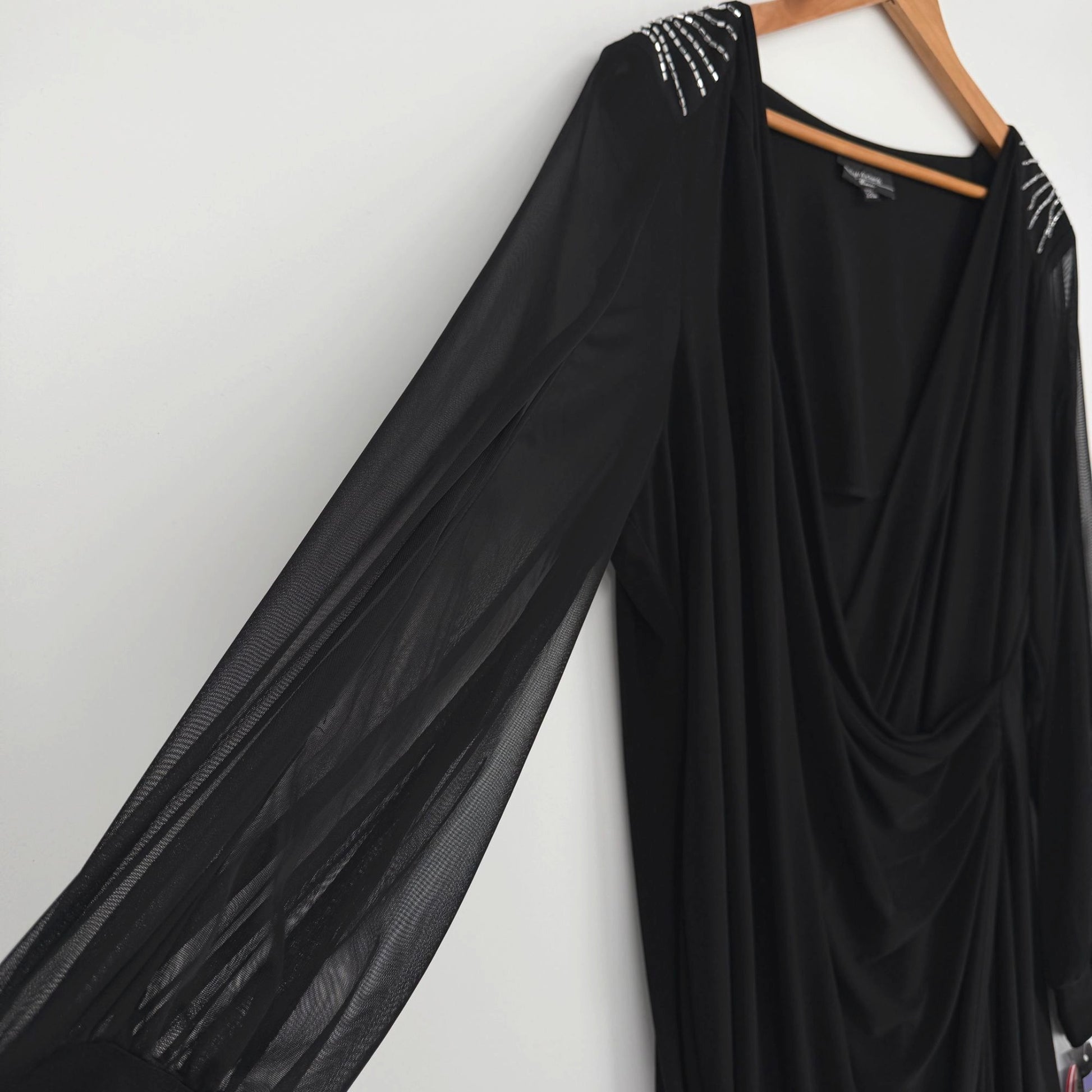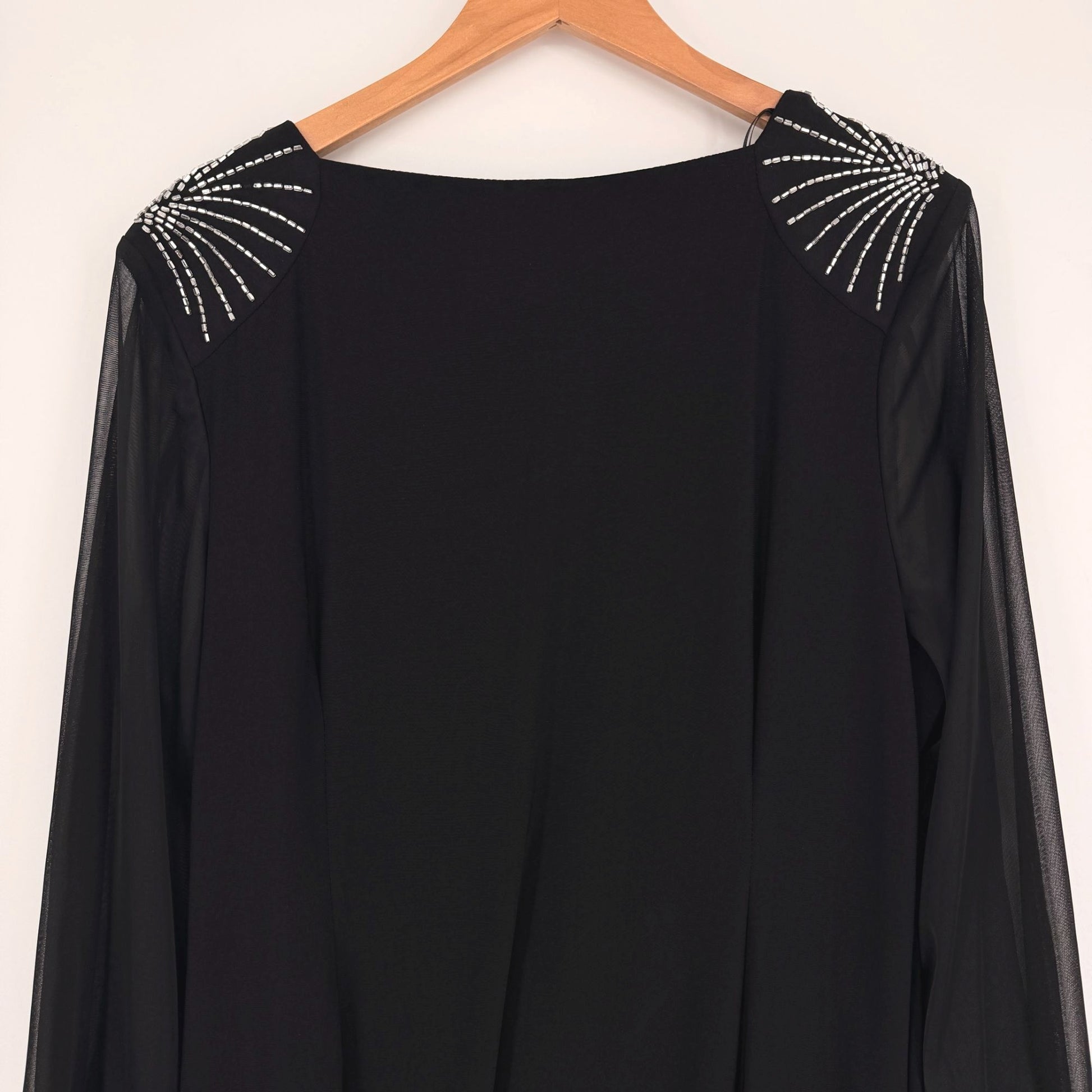 R&M Richards Black Dress Short Cocktail Long Sleeve Rhinestones Plus Size 22