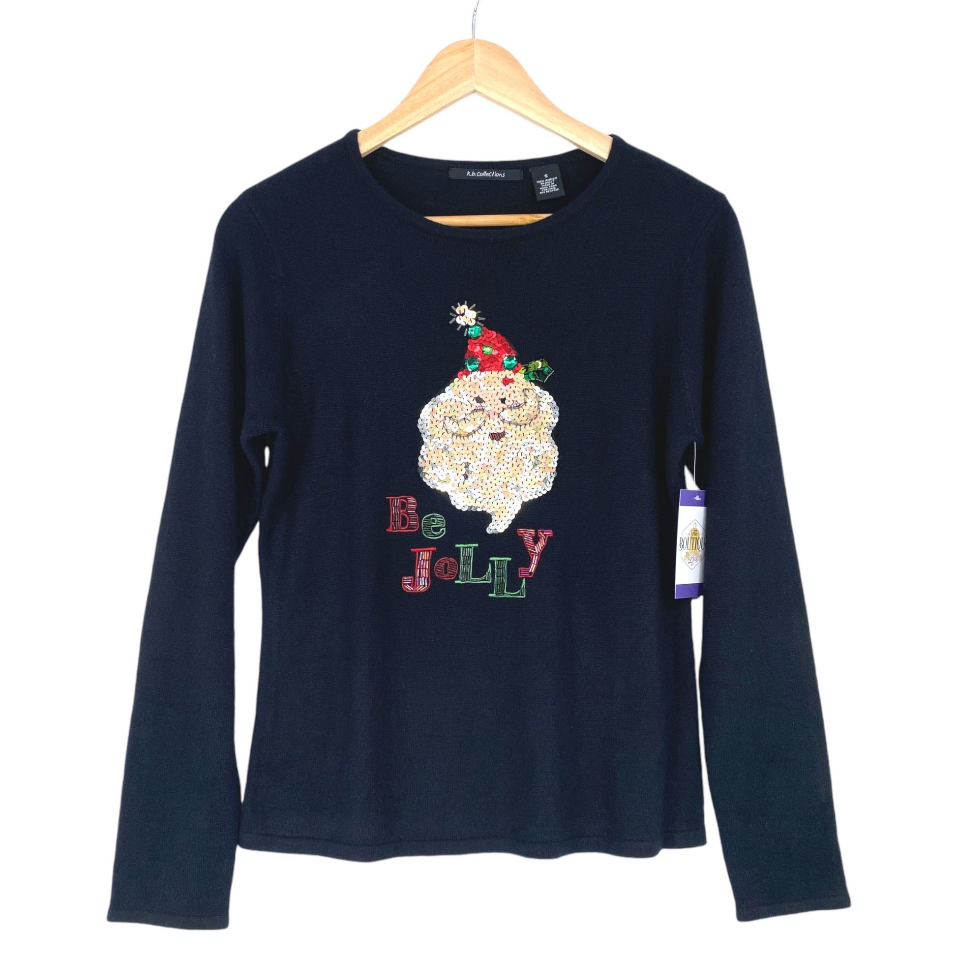 Santa Xmas Sweater K.B. Collections S Black "Be Jolly" Bling Festive Glam Kitsch