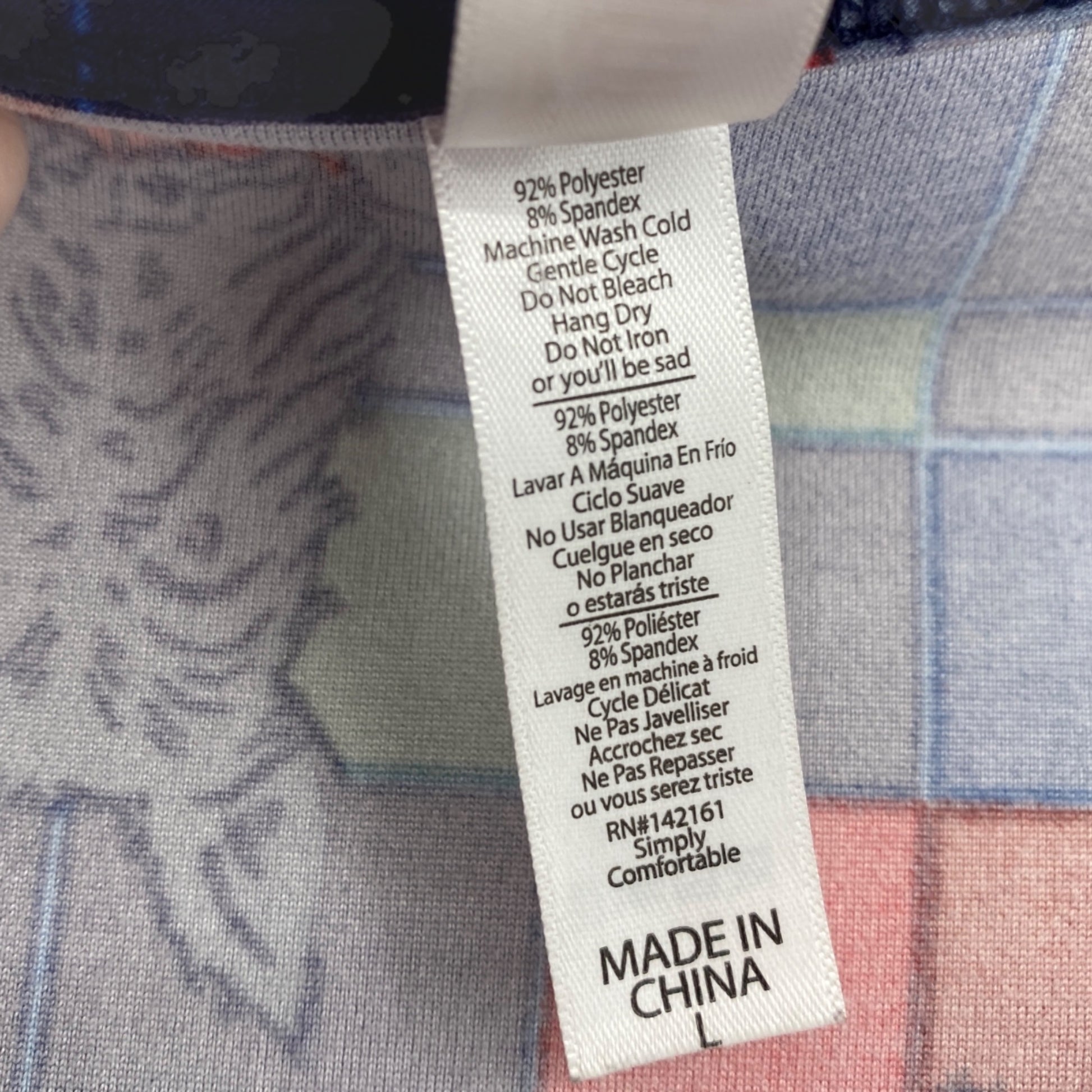 Festive LuLaRoe Christmas tee in a bold red, blue, and green plaid with adorable Scottie dog graphics wearing red scarves. Made from a soft stretch poly-spandex blend, this short sleeve top offers comfort and playful holiday style. Perfect for Christmas parties, casual winter outfits, or gifting to a dog lover who enjoys quirky seasonal prints.