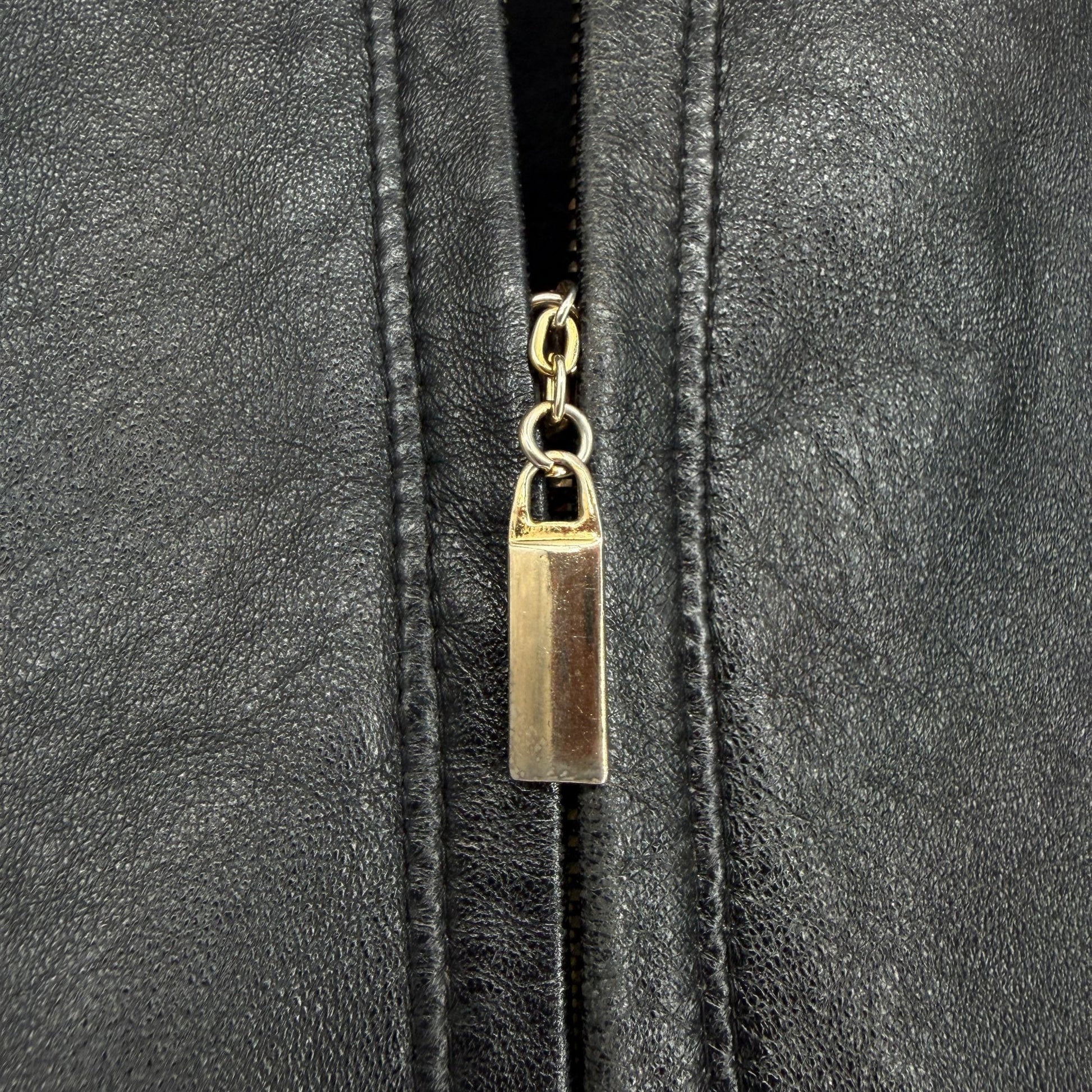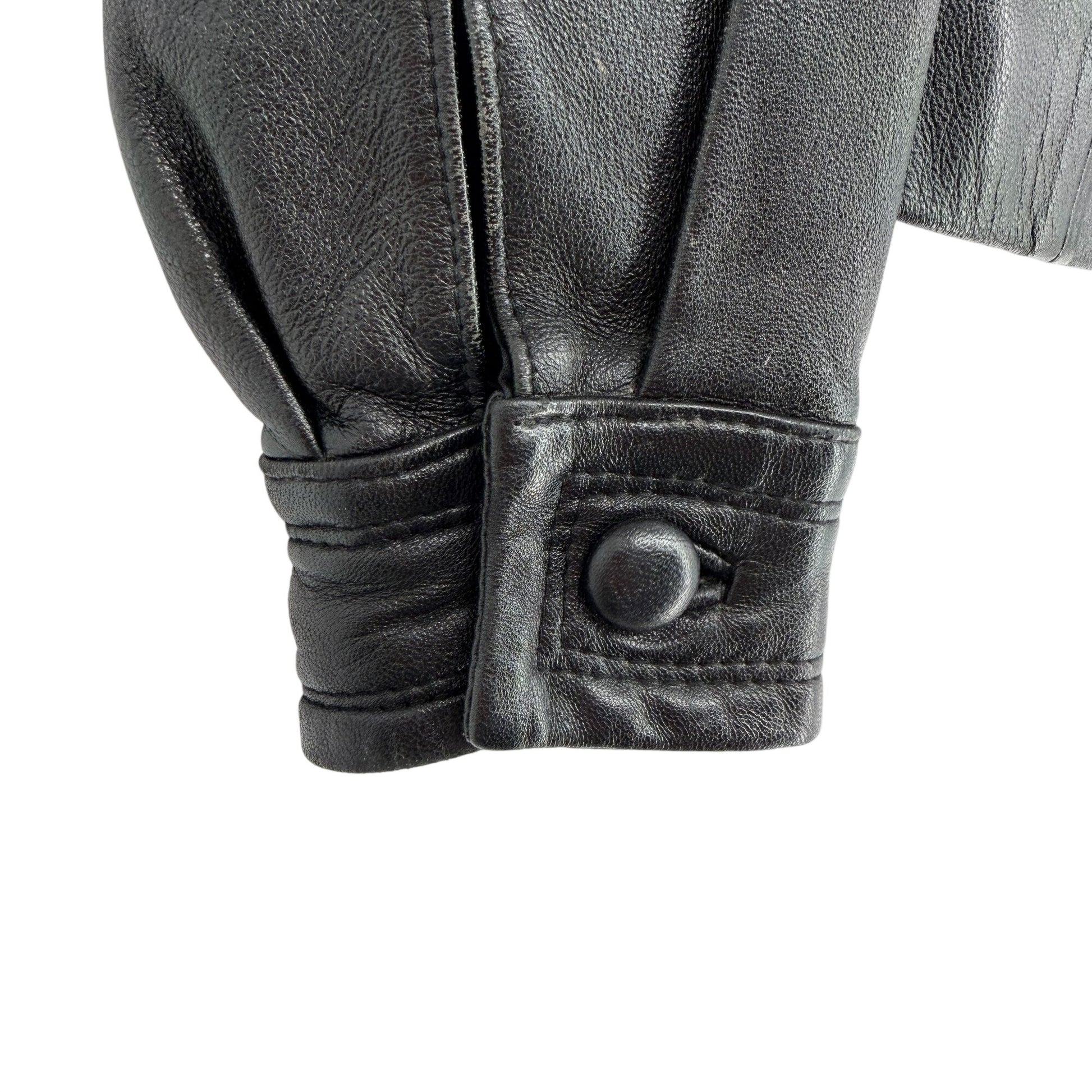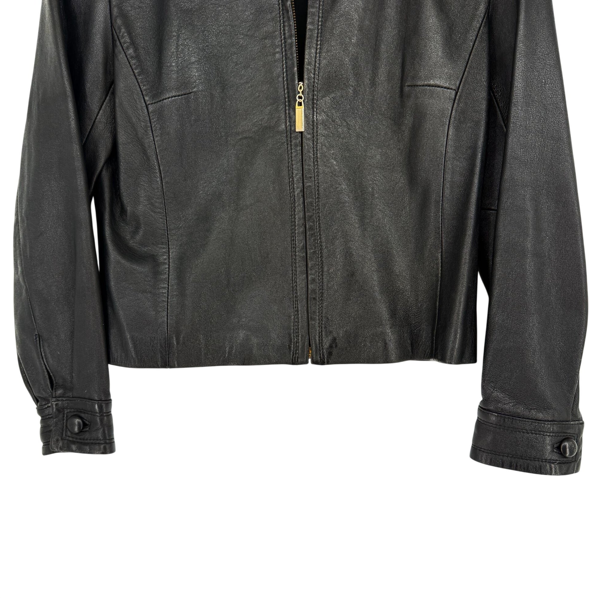 Suzelle Black Leather Jacket Womens S Vtg Full Zip Classic Fitted Gold Hardware
