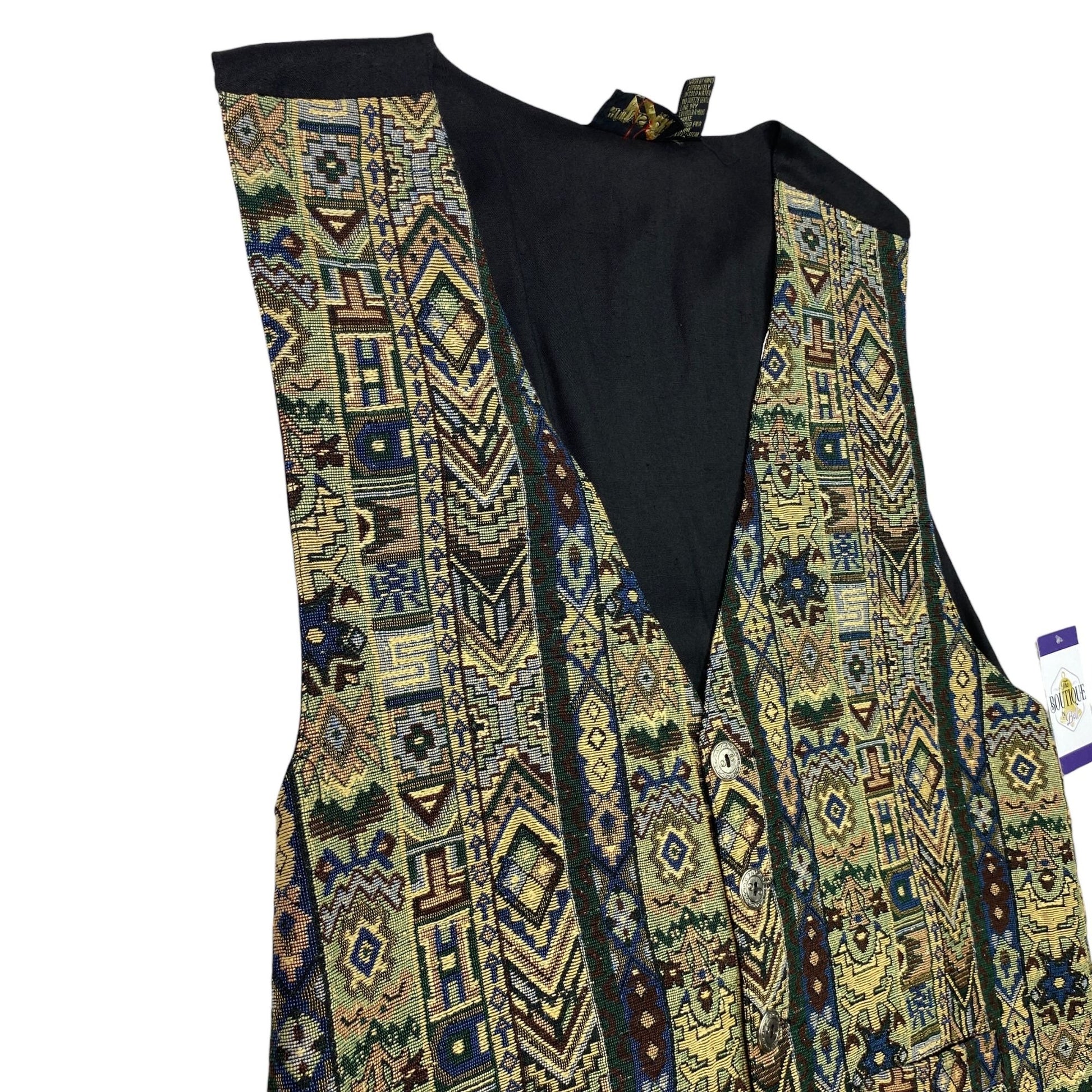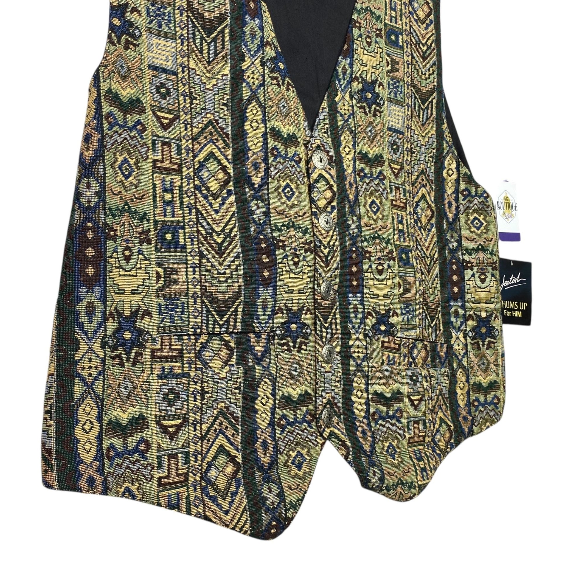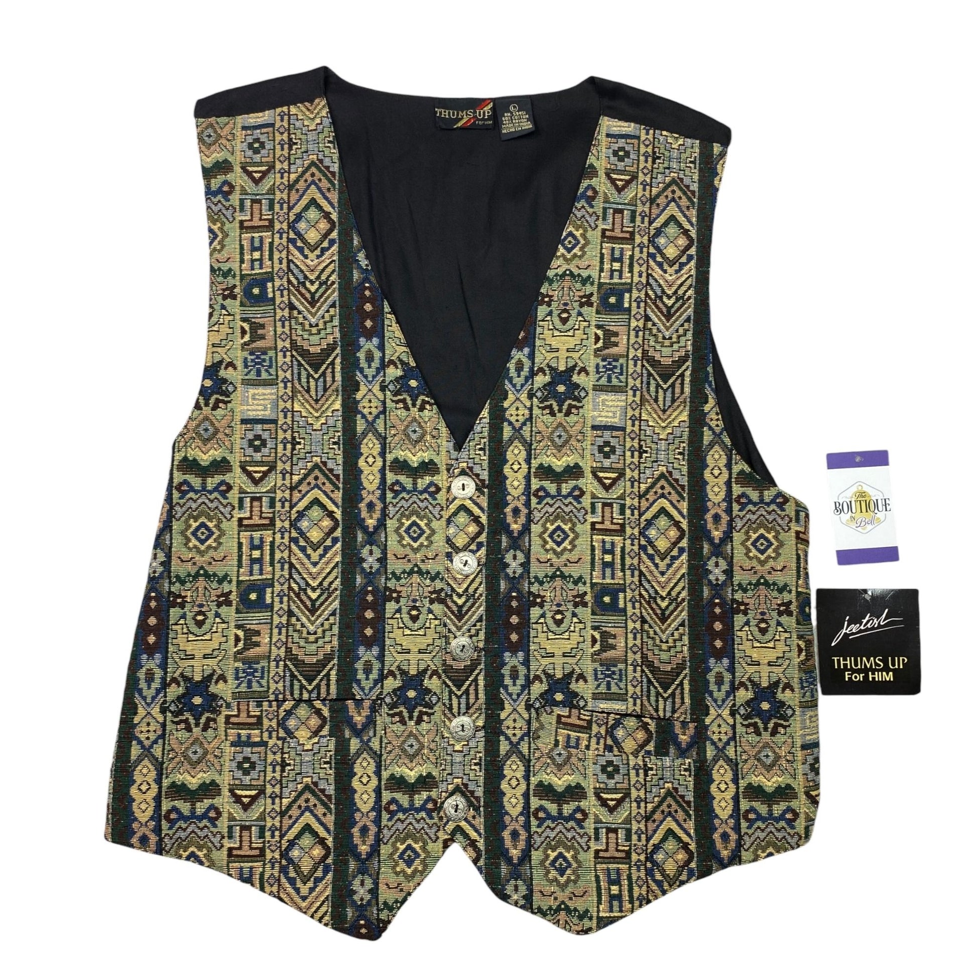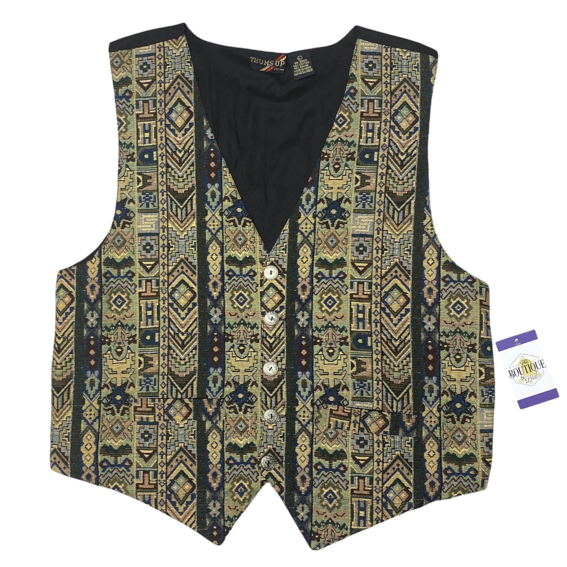 Thums Up Tapestry Vest Mens L Button Front Adjustable Tailored Aztec Grandpa NWT