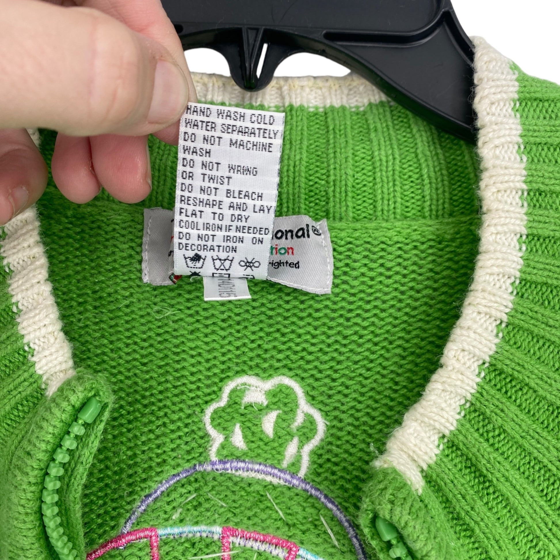 This Tiara International women’s plus size 26/28 Christmas sweater features a cheerful group of snowmen appliques with sequin accents on a bright green knit. Finished with embroidered snowflakes, a decorative snowflake zipper pull, and a cozy full zip front, this playful holiday cardigan brings whimsical festive charm to your Christmas wardrobe.
