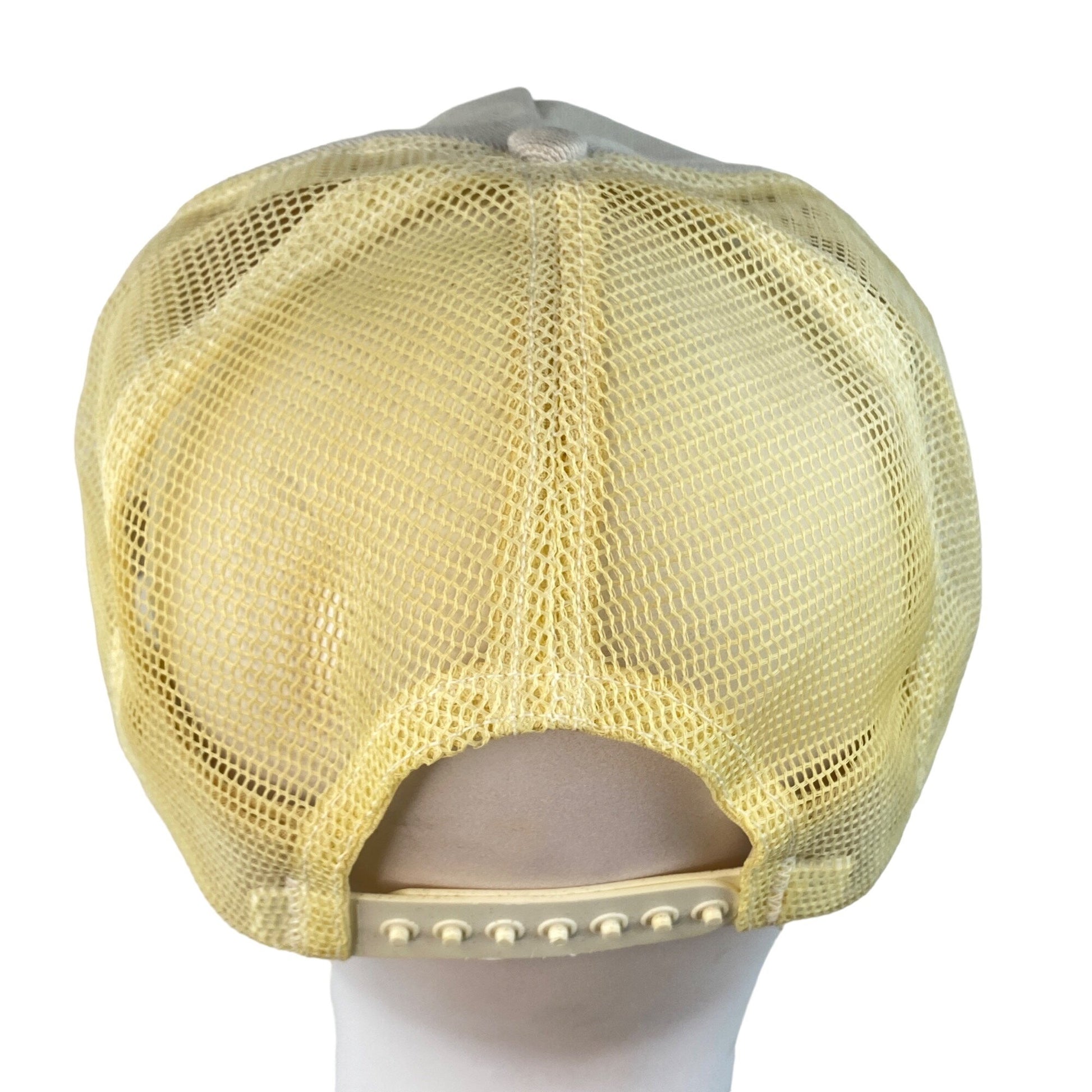 This vintage Darrell Waltrip Tide Racing snapback trucker hat features bold puffy print graphics of the #17 orange race car and classic Tide logo on the front. The mesh back in soft yellow pairs with a structured cream front panel and bill. Autographed with a printed Darrell Waltrip signature, this USA-made cap is a rare find for NASCAR collectors and retro racing fans. One size fits all with adjustable snapback closure.