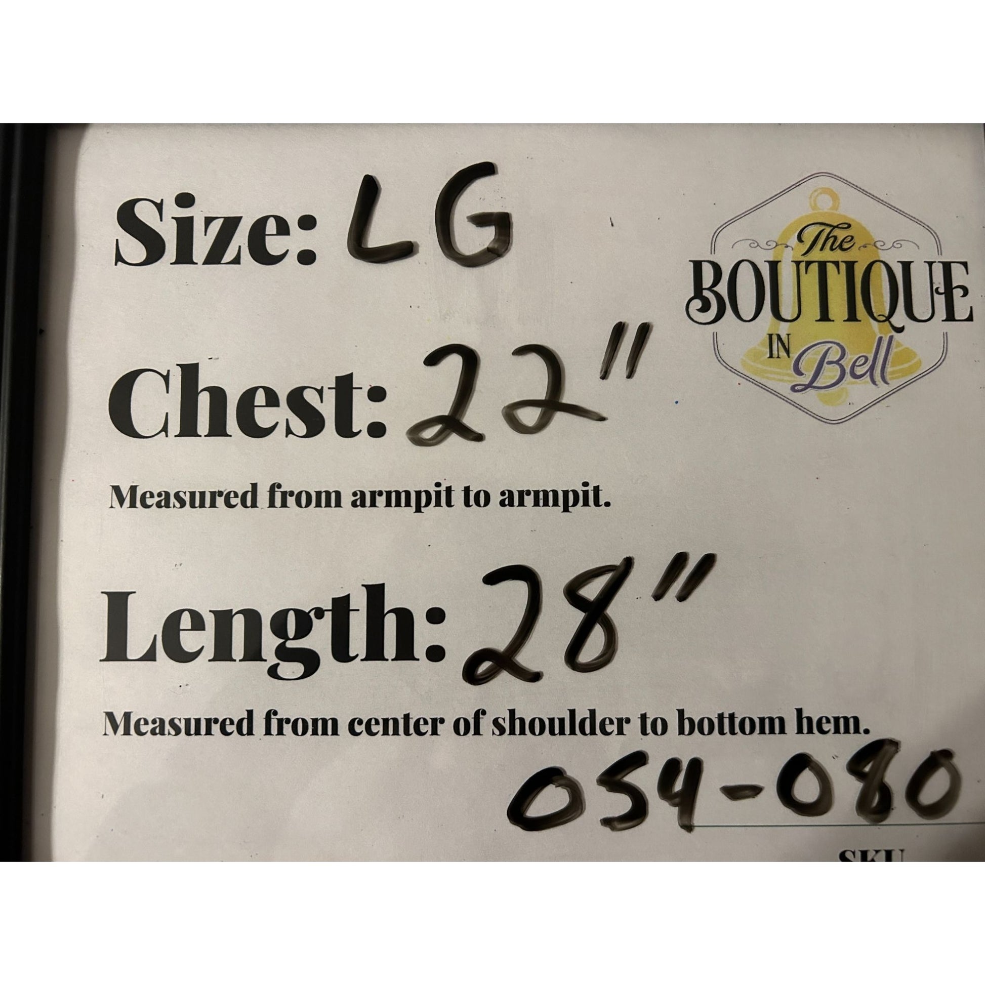 Pit to Pit: 22 in / 56 cm