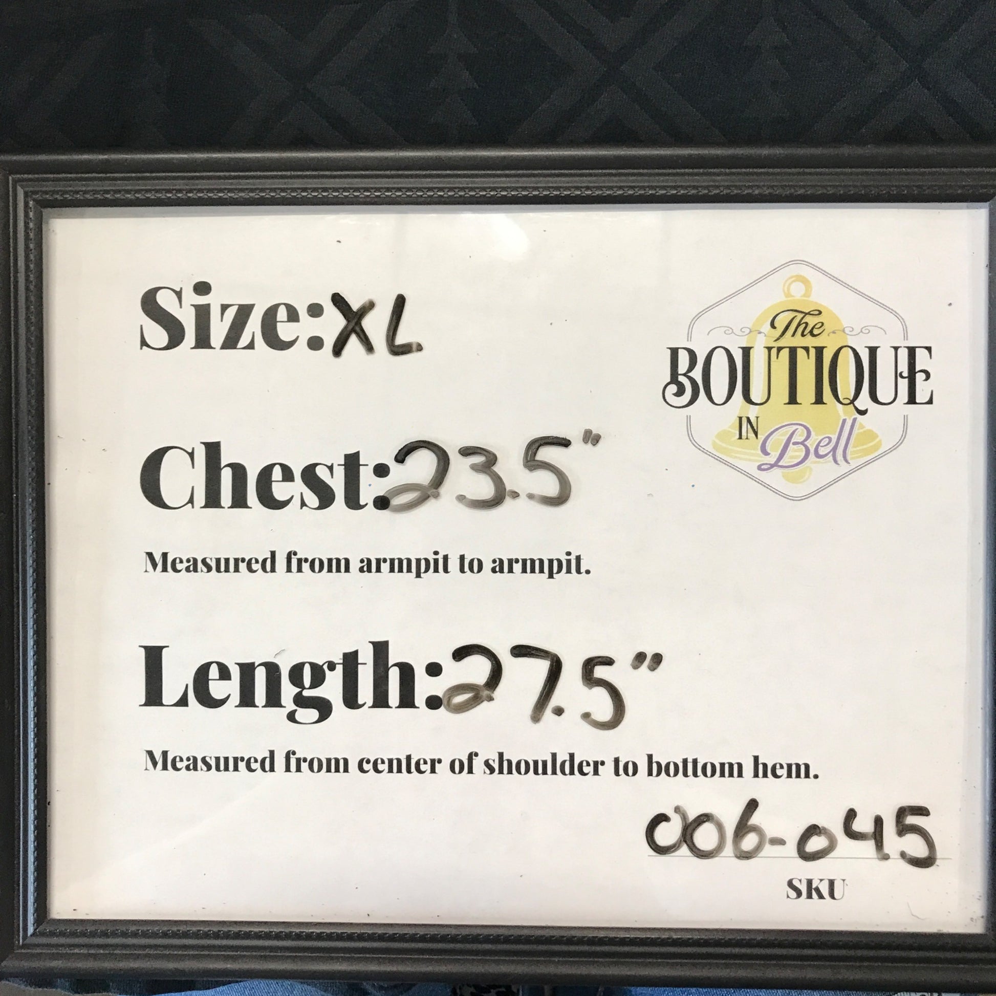 Pit to Pit: 23.5 in / 60 cm