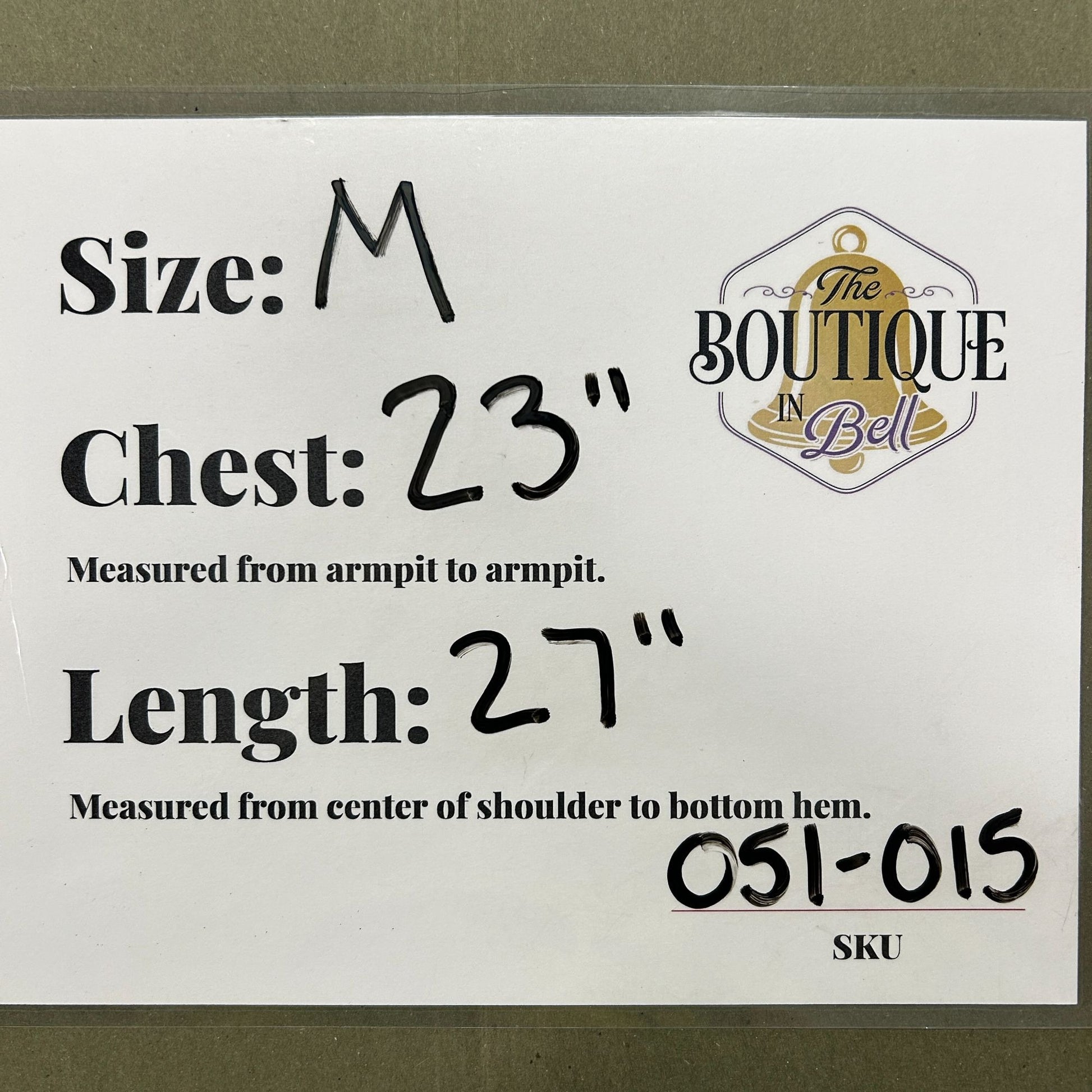Pit to Pit: 23 in / 58 cm