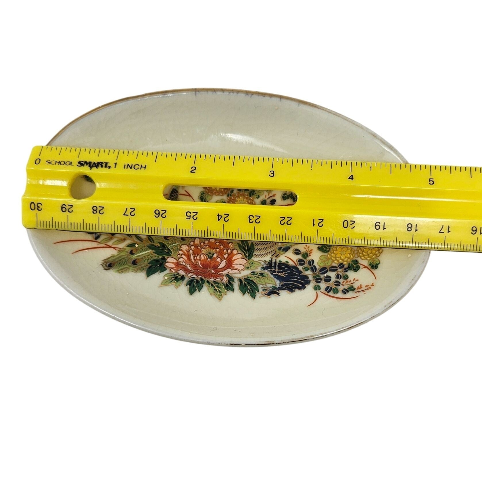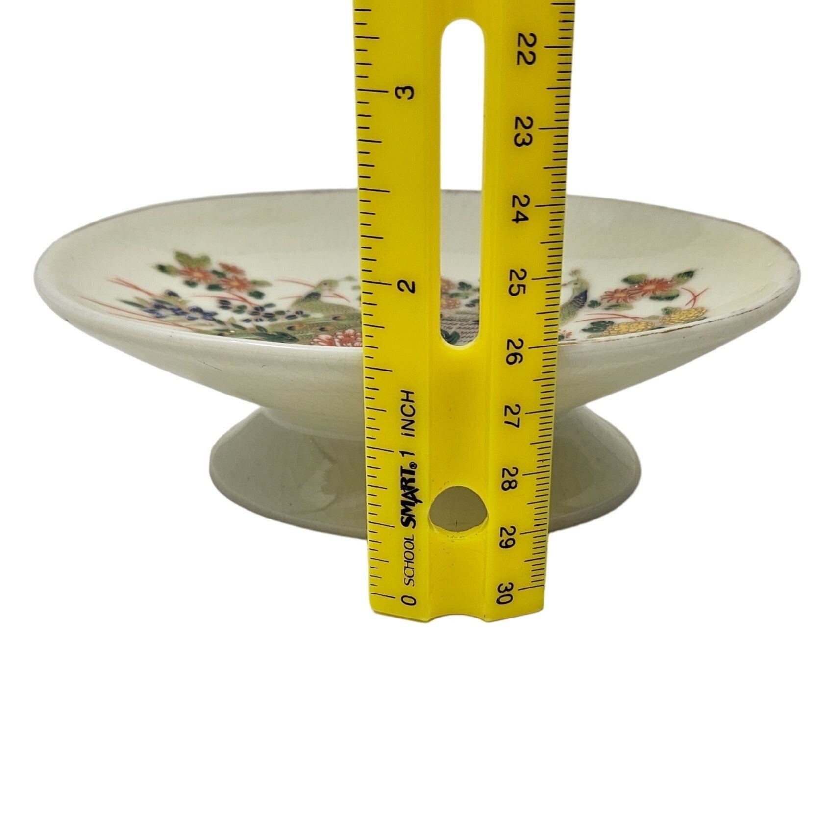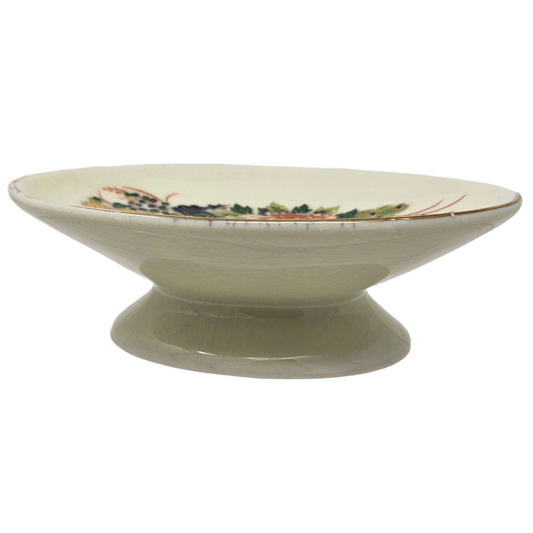 Vtg Pedestal Bowl Peacock Floral Japanese Hand Painted Ceramic Key Candy Dish