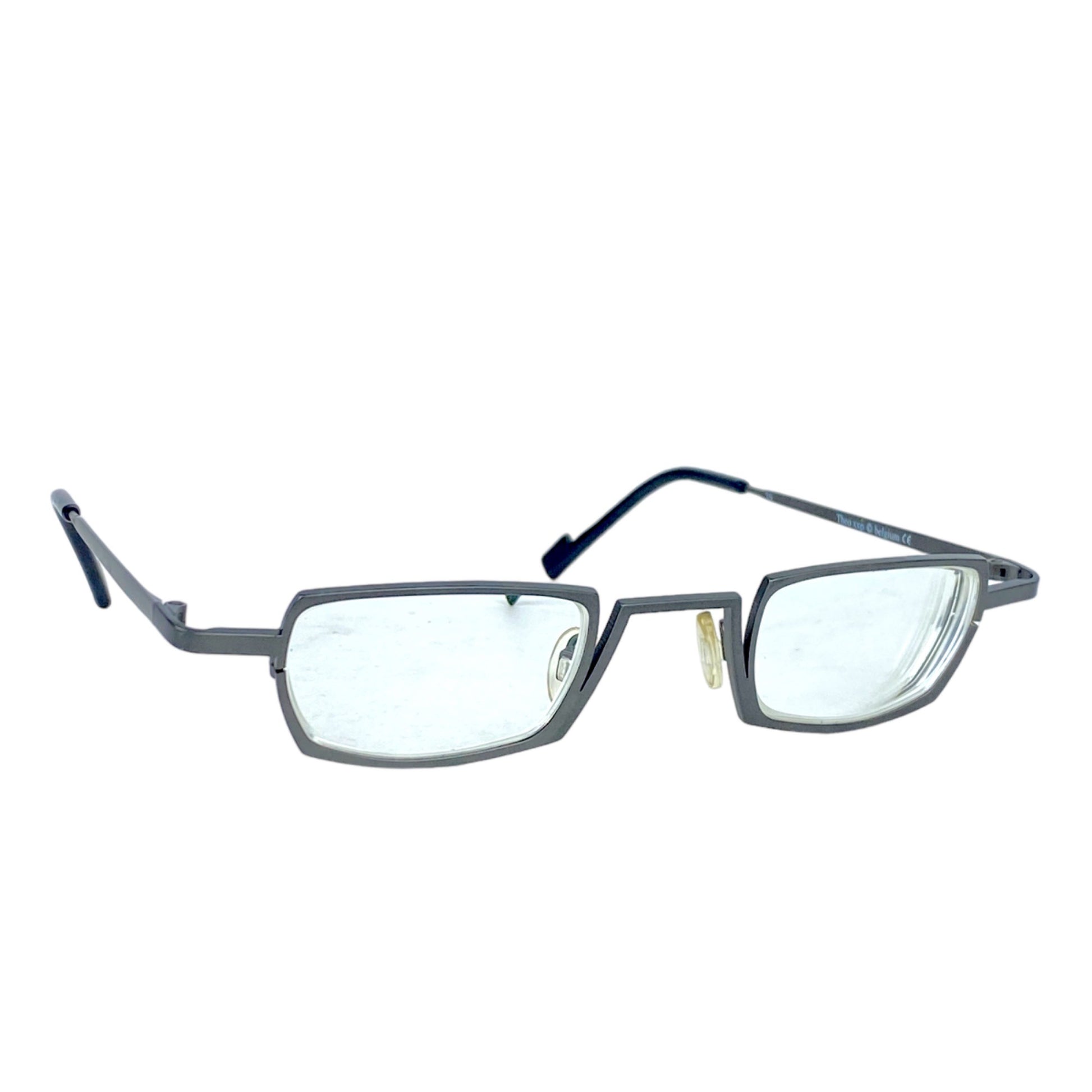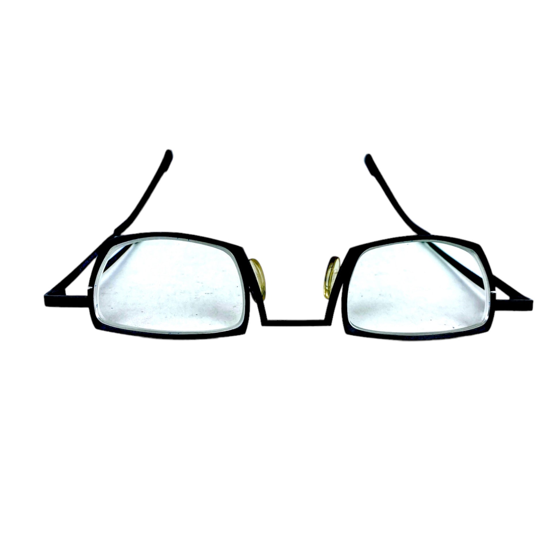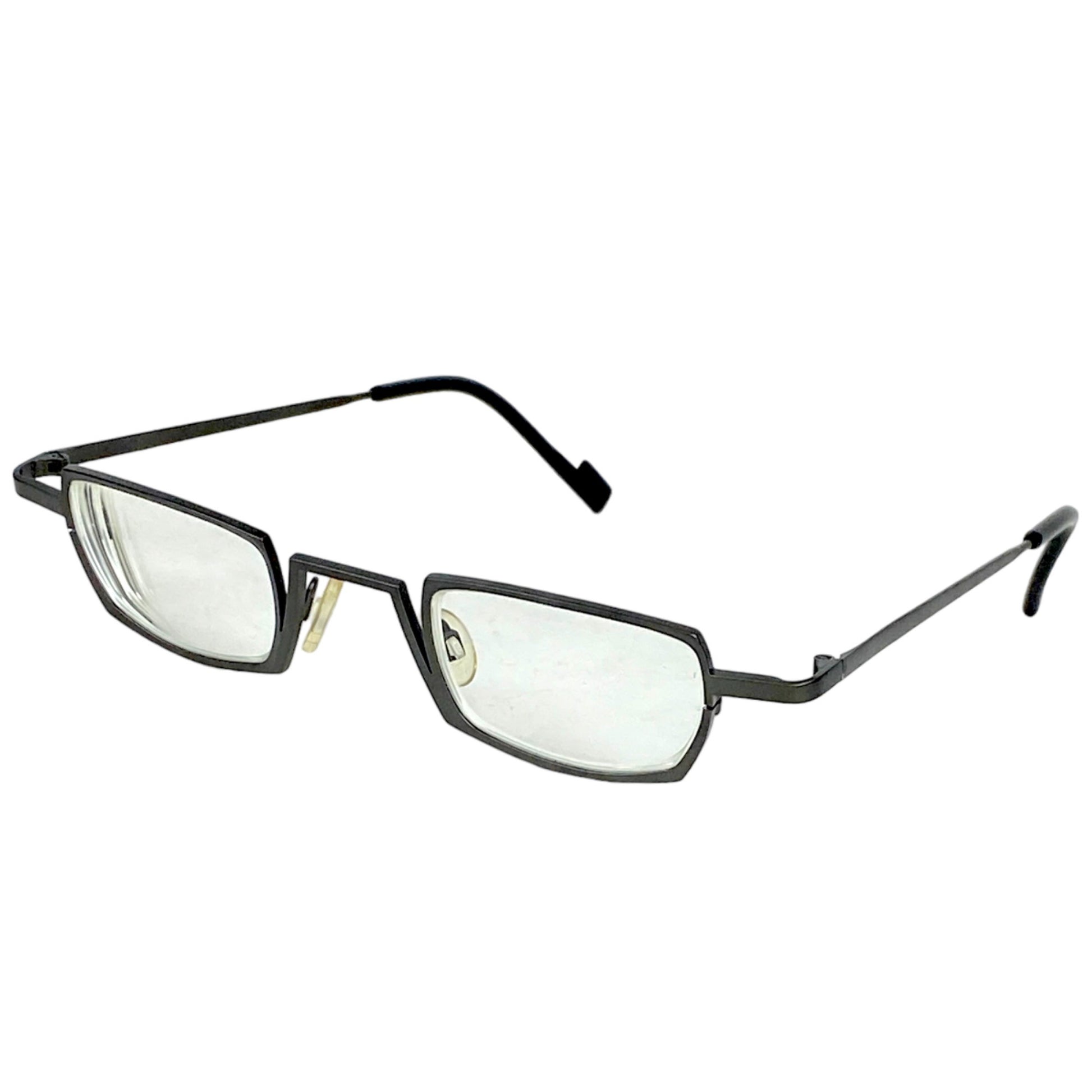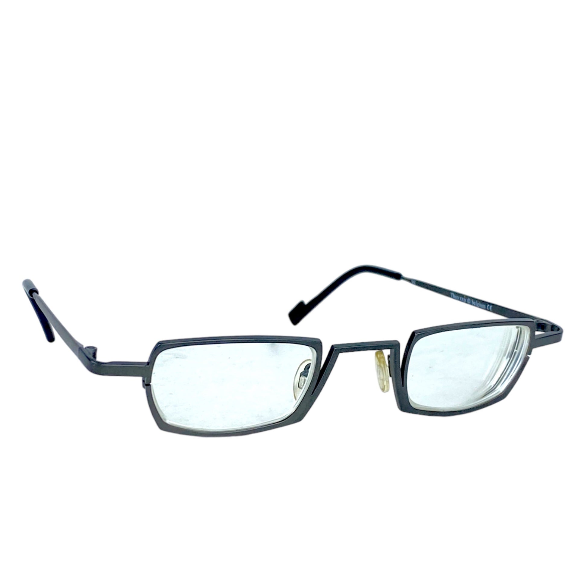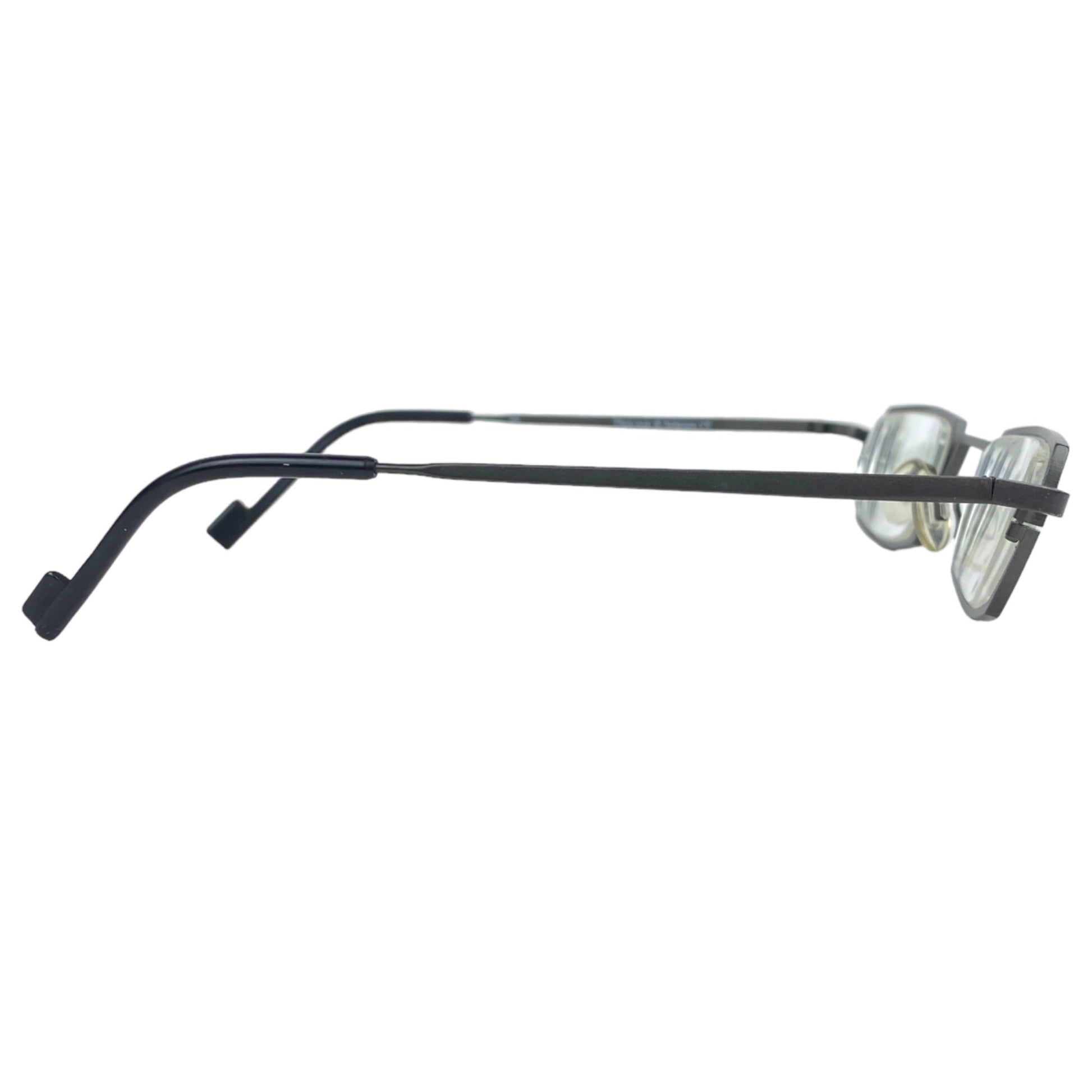 Bold and rare Theo XXP Belgium glasses with a geometric, modern silhouette in matte brown "burned shadow" finish. These vintage 1998 metal frame spectacles feature a distinctive angular shape, minimalist design, and premium craftsmanship, making them a collector's piece for fans of avant-garde eyewear and European design. The frameless rectangular lenses and lightweight metal arms offer a sleek profile, while the comfortable nose pads ensure they’re suitable for all-day wear. With a compact, portable build and timeless minimalist style, these glasses effortlessly blend functionality with standout fashion.