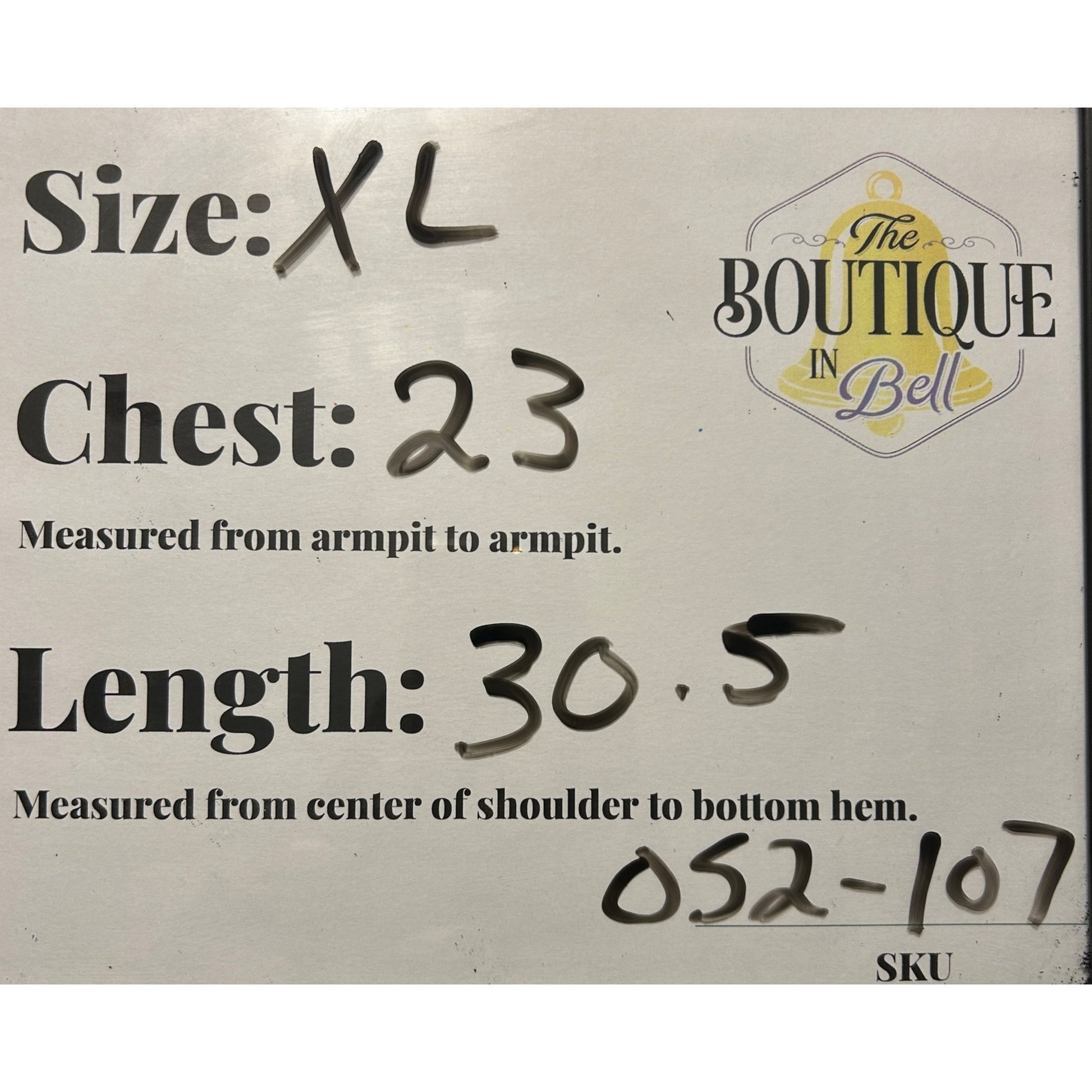 Pit to Pit: 23 in / 58 cm