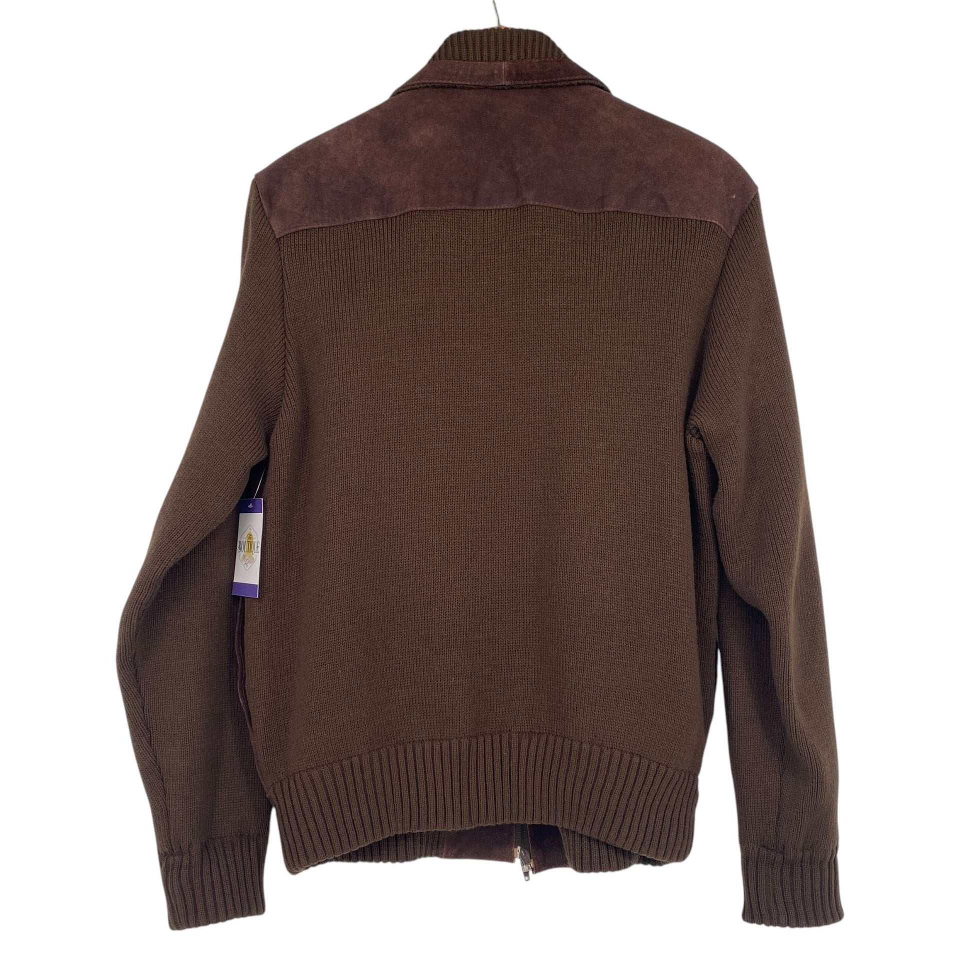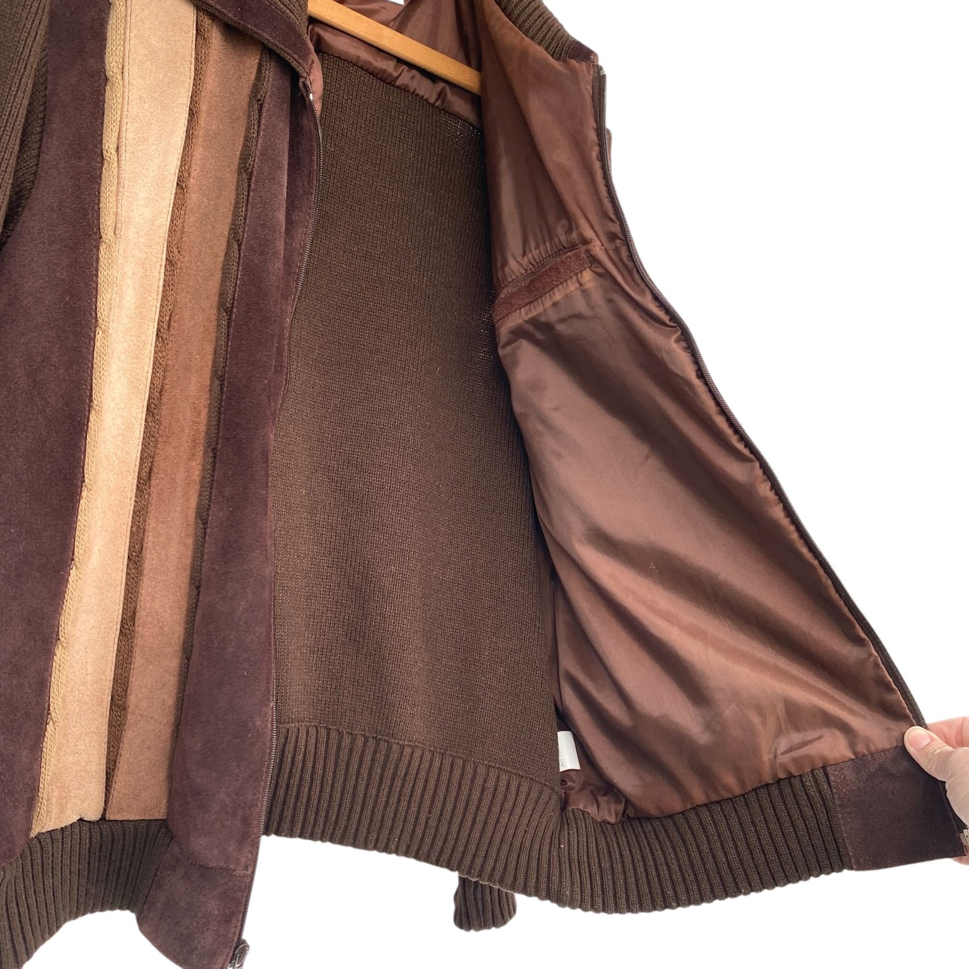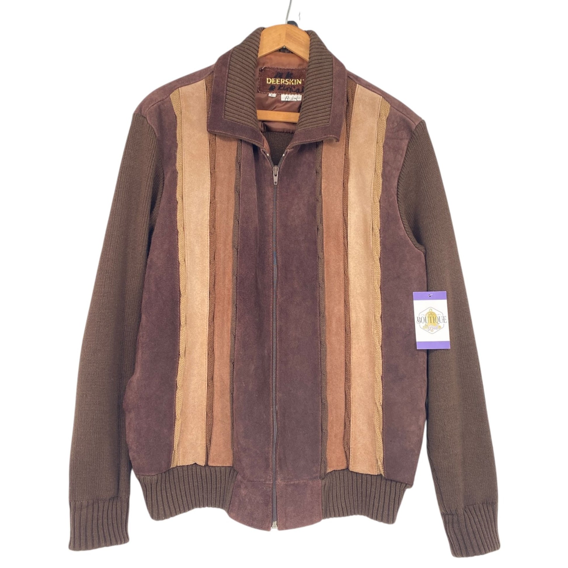 Vtg 70s Deerskin Sweater Jacket Brown Suede Leather Full Zip Grandpa Academia L