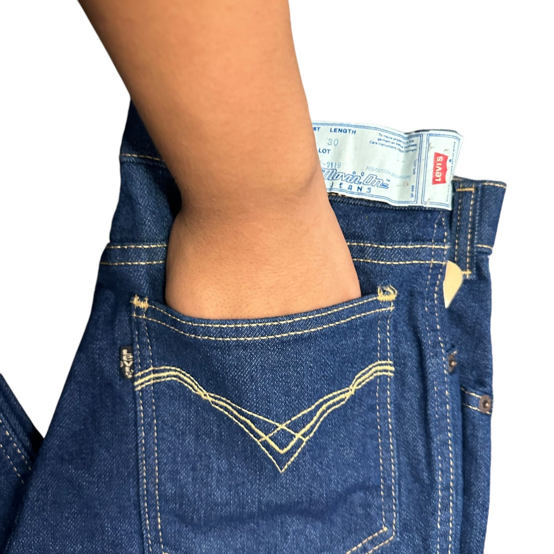 Vtg 70s Levis Movin On Jeans Stretch Denim High Rise Dark Wash 31x30 USA NEW