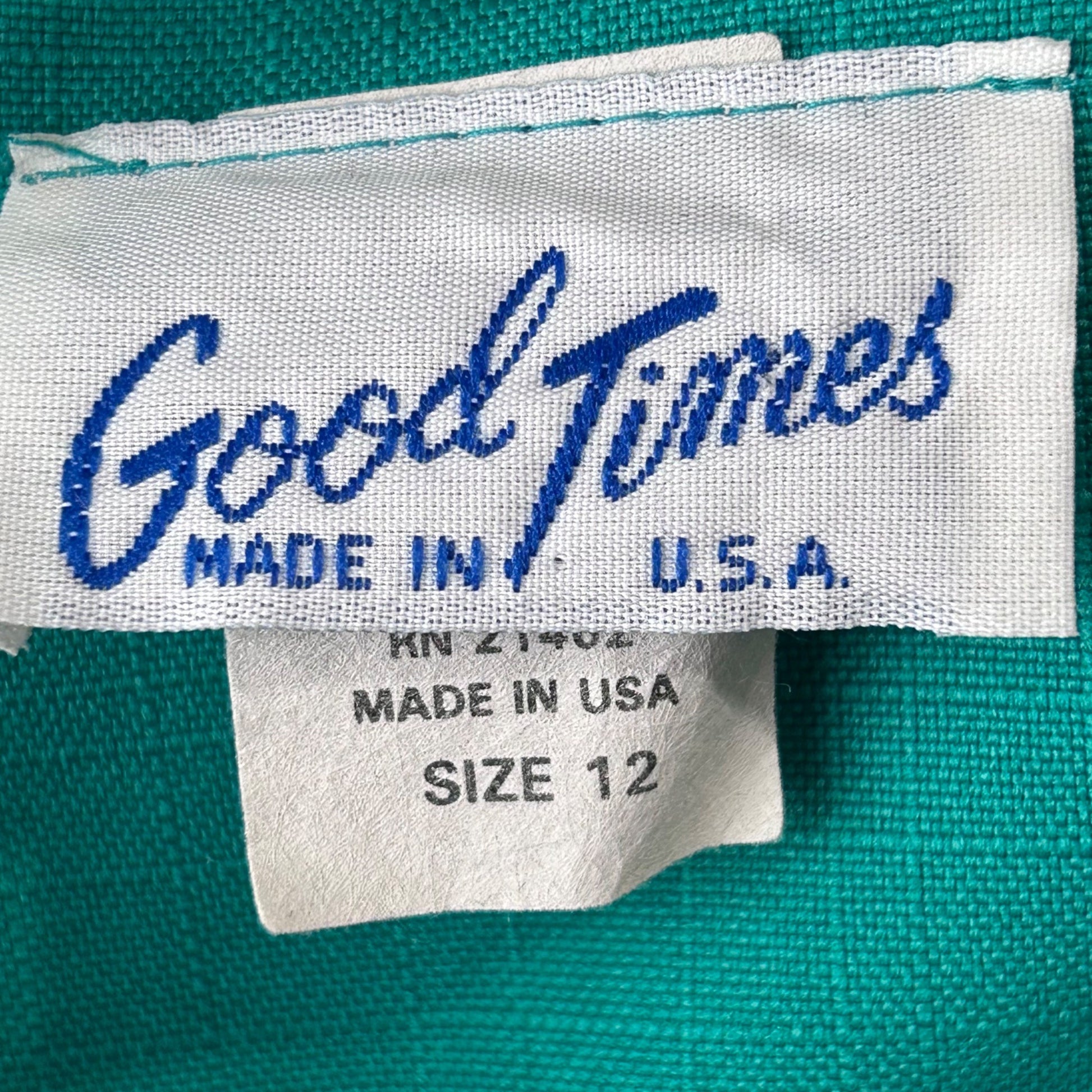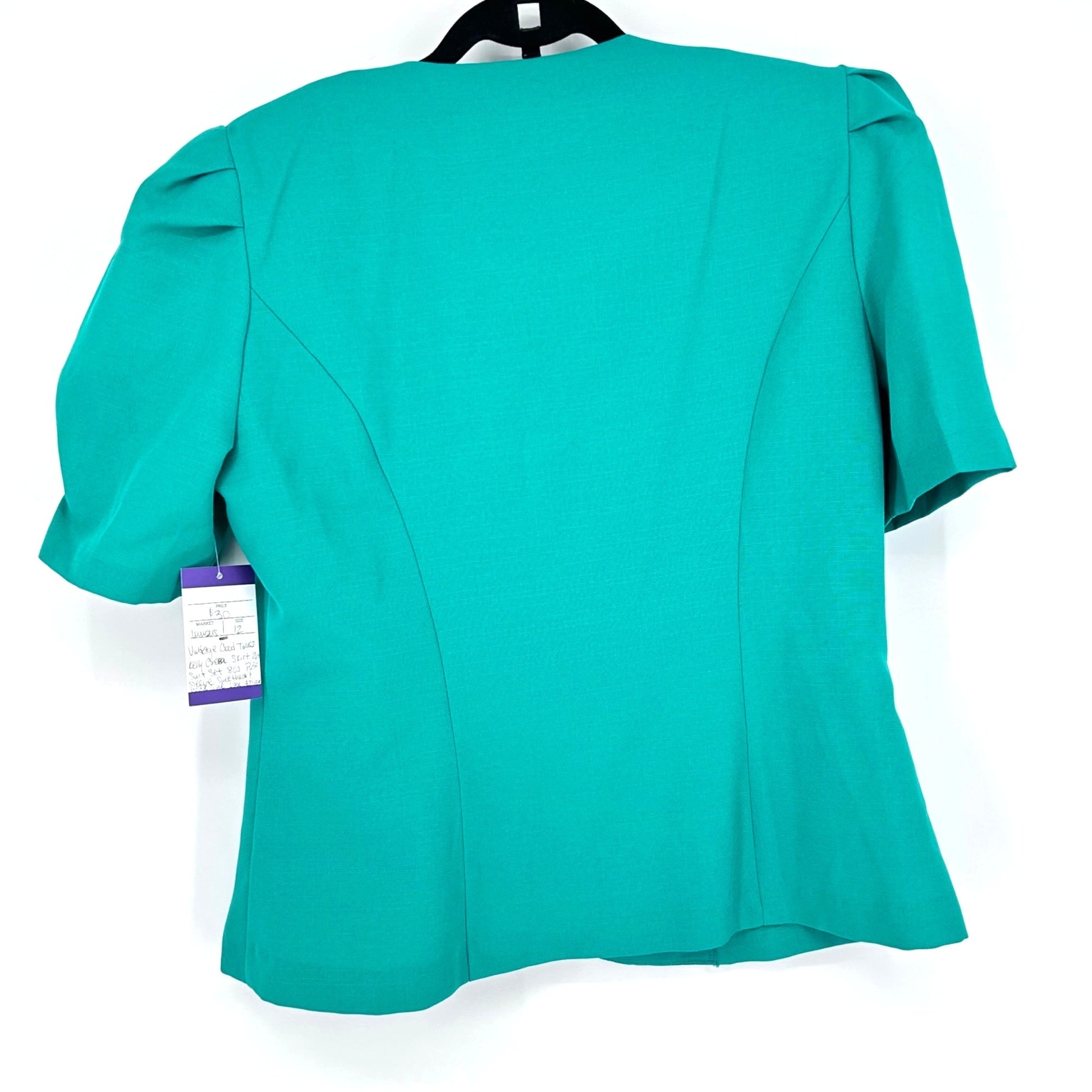 Vtg 80s Good Times 2 Piece Suit Skirt Set 12 Kelly Green Puff Sleeve Secretary