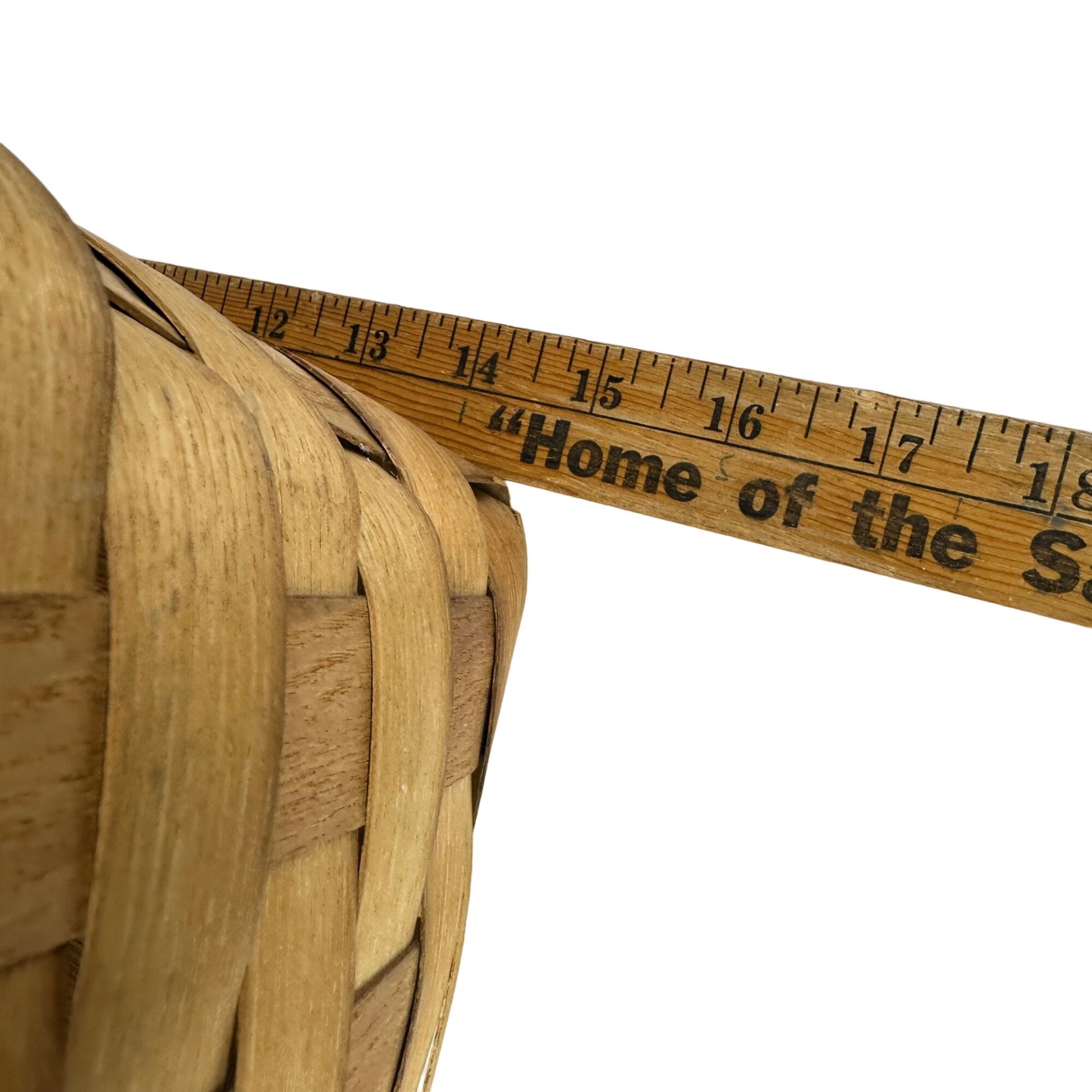 Bring a touch of rustic farmhouse charm to your home with this vintage woven wooden basket. Measuring 15” long, 10” wide, and 9” tall, it features dual handles, sturdy craftsmanship, and a classic woven design. Perfect for farmhouse storage, organizing kitchen essentials, or displaying seasonal decor, this timeless piece adds natural warmth to any space.