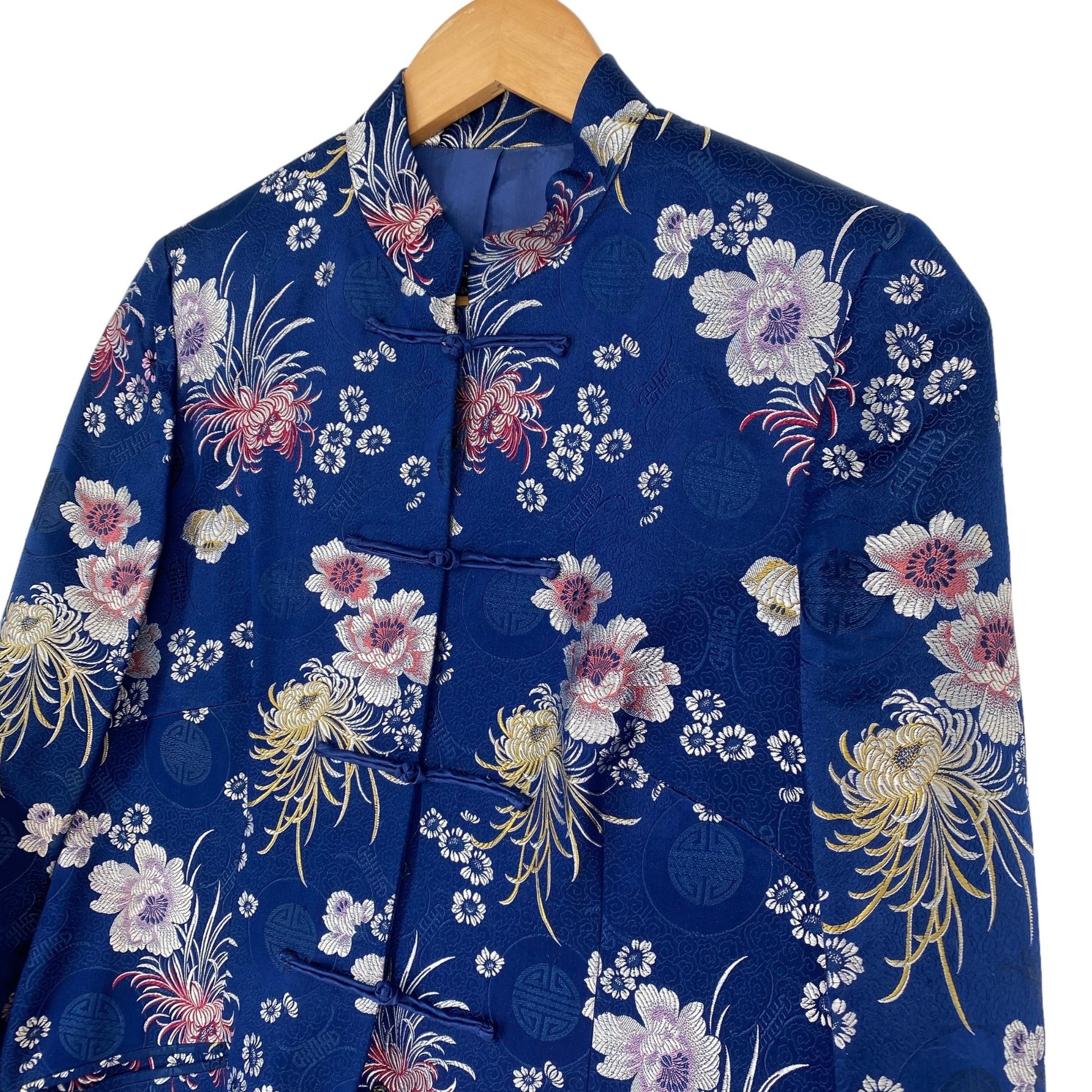 Vtg Chinese Floral Brocade Jacket Pete Fashions Blue Trad Oriental Hong Kong