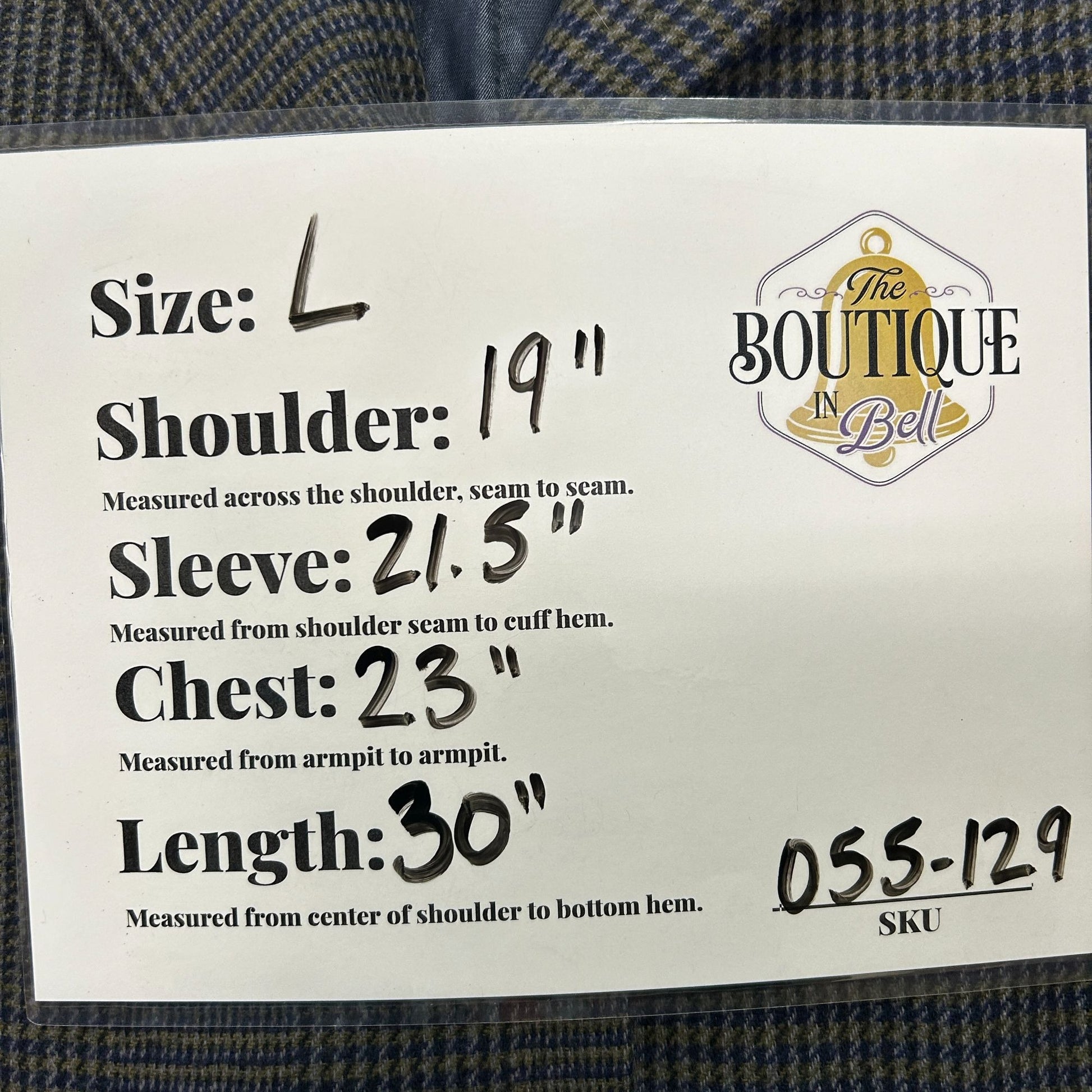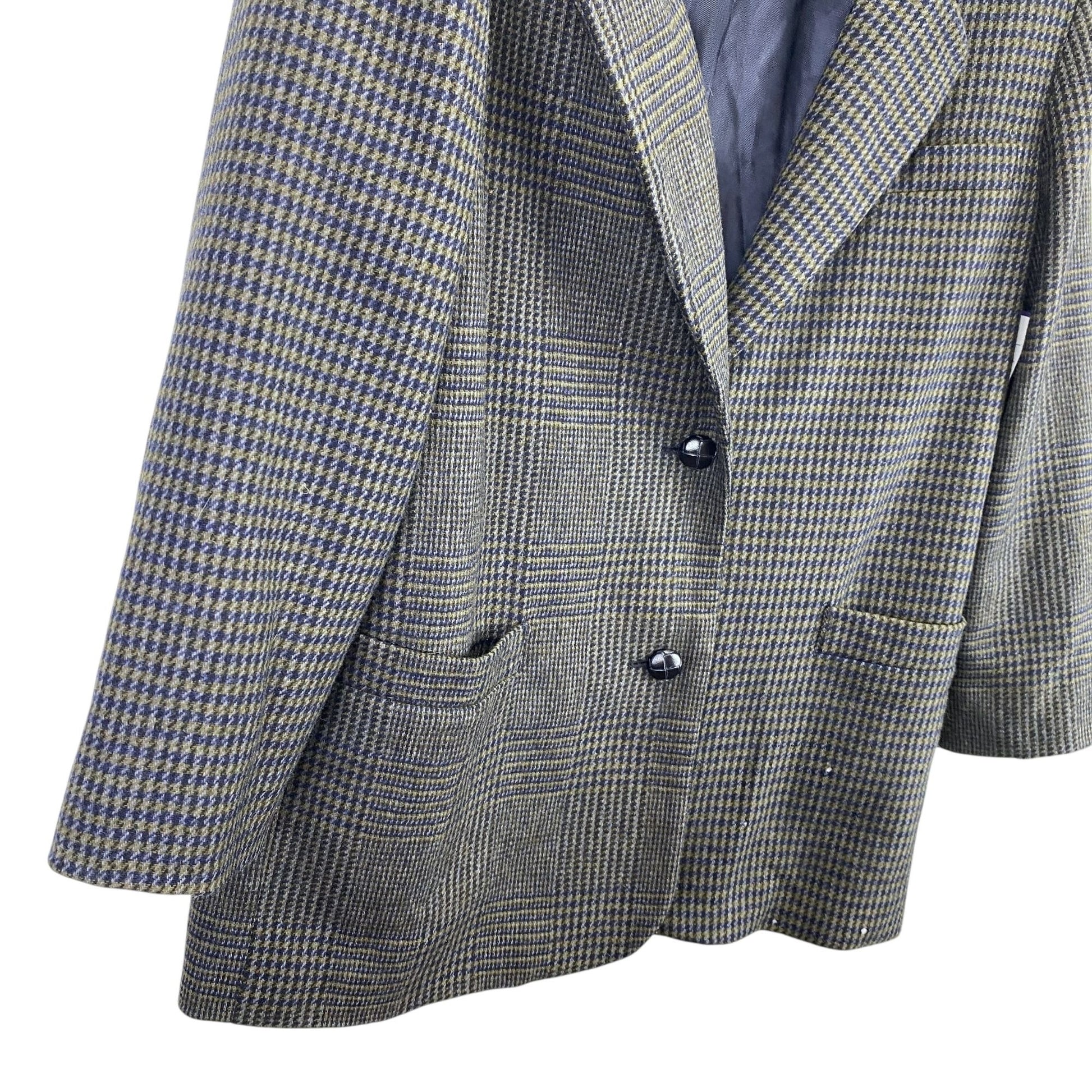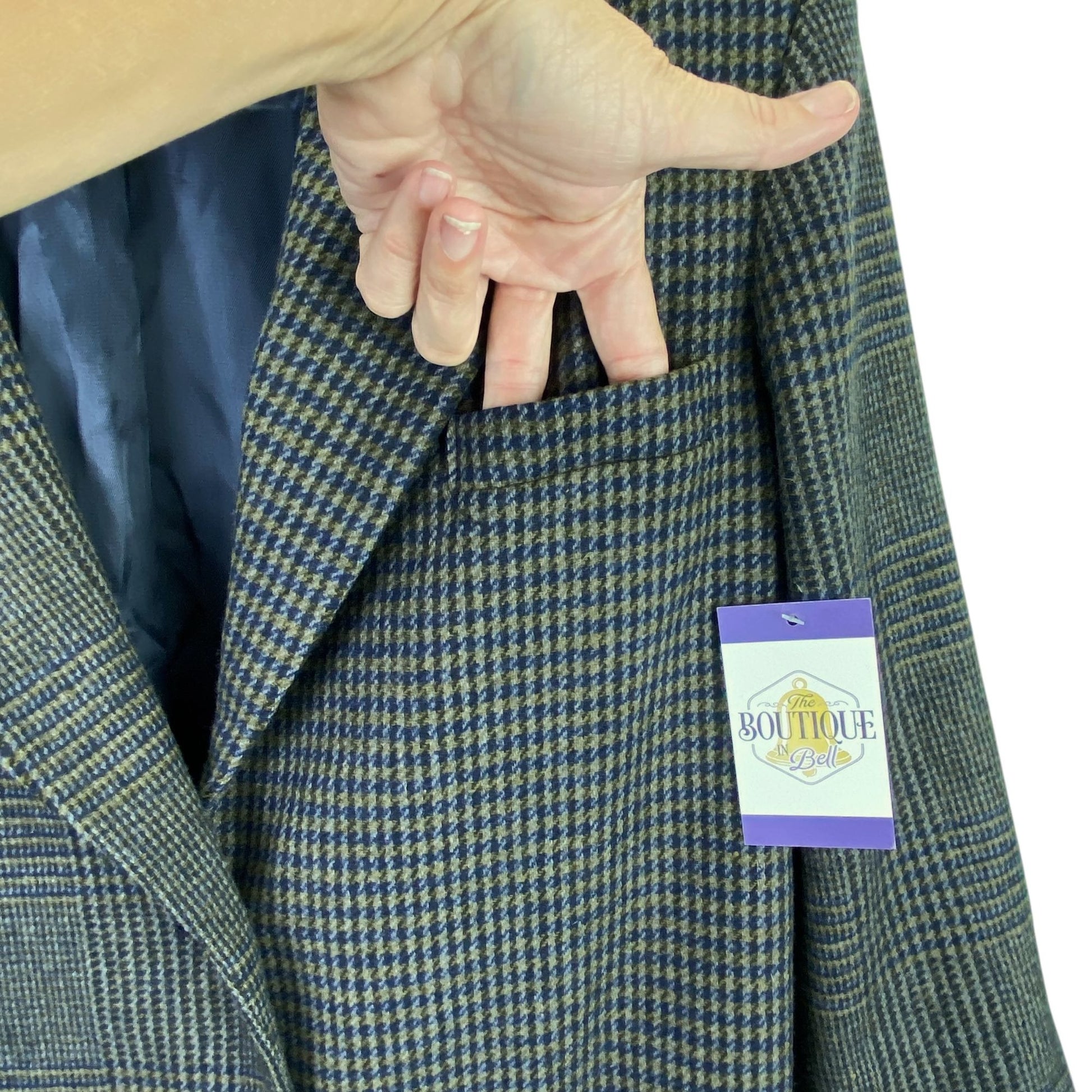 A classic piece from County Seat, this vintage blazer exudes timeless charm. Its plaid wool fabric and suede leather collar create a sophisticated look, making it a statement wardrobe addition.