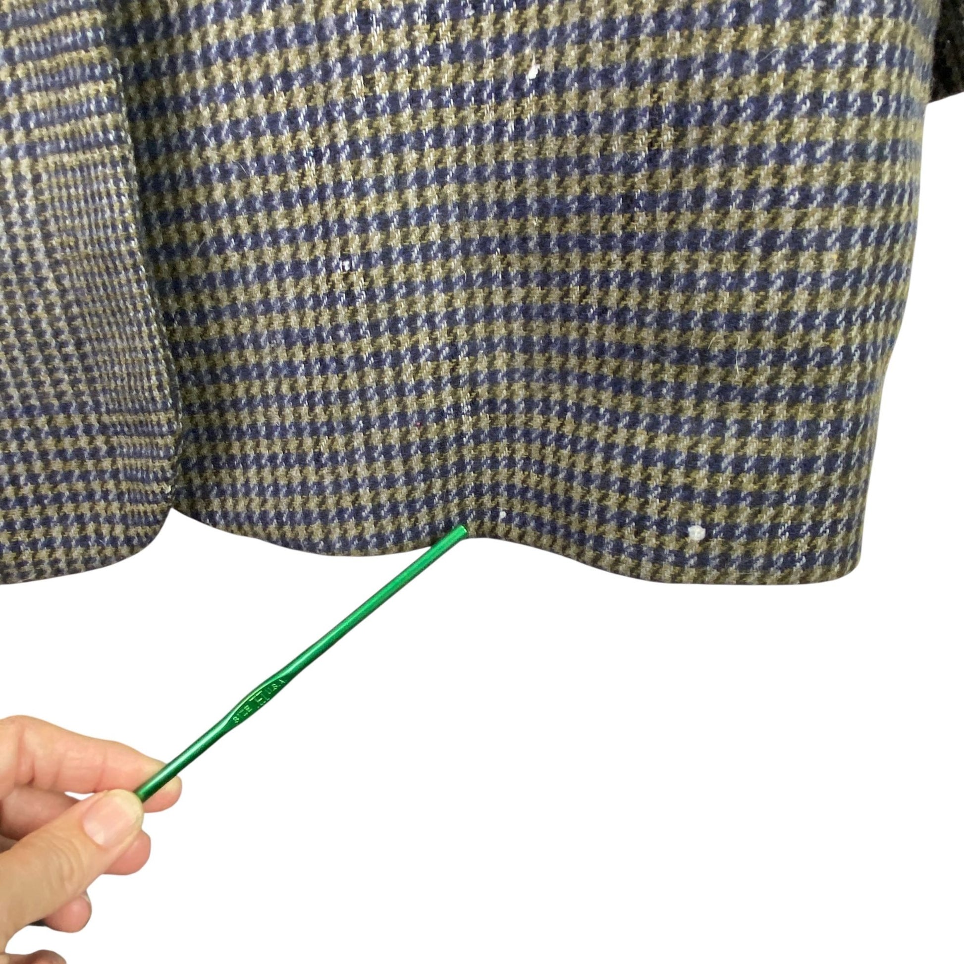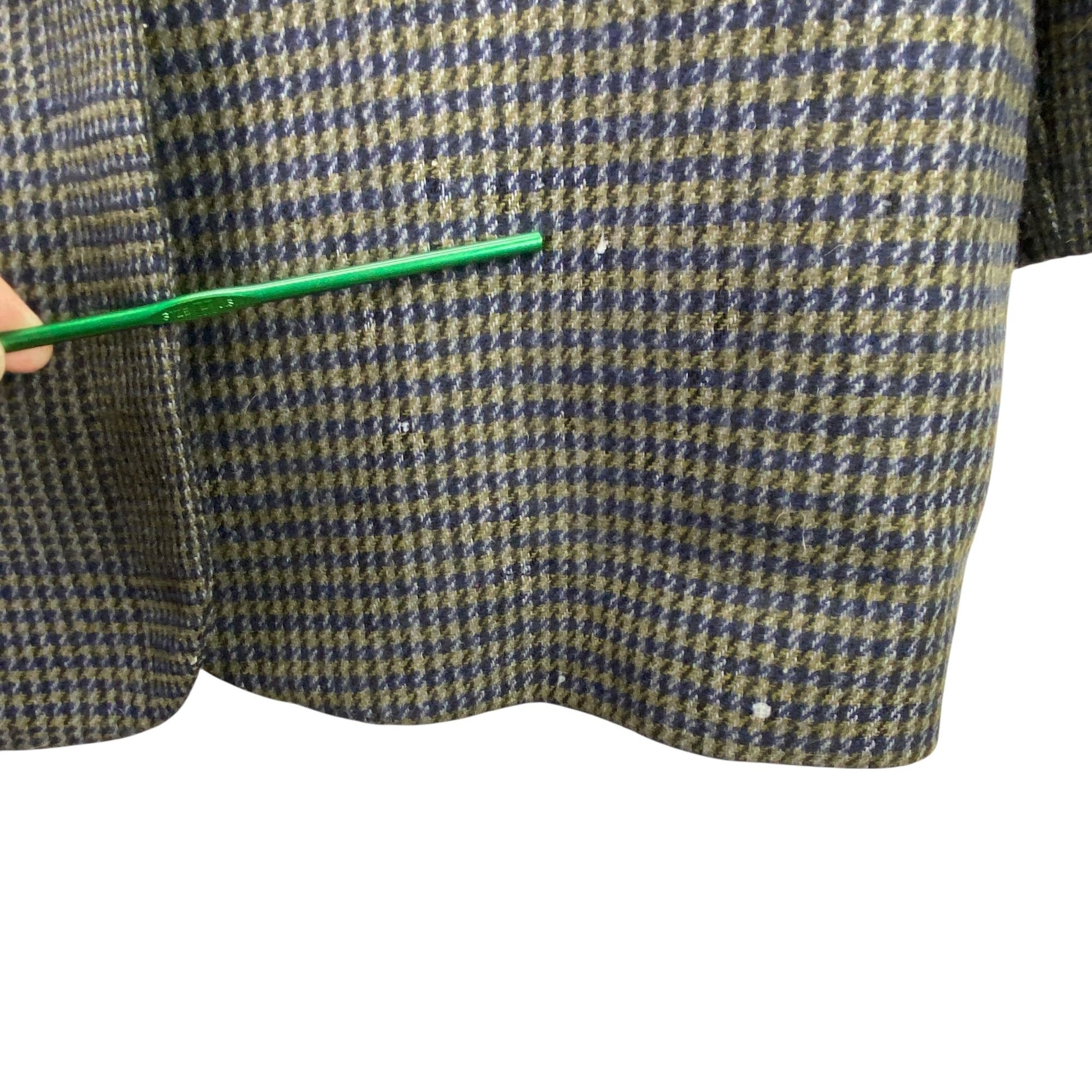 Small fabric snag on back of jacket, small holes below front left pocket and minor wear on the wool surface consistent with age. No other notable flaws. Please see pictures for an accurate description of the item and condition. Colors vary based on perception and screen display.