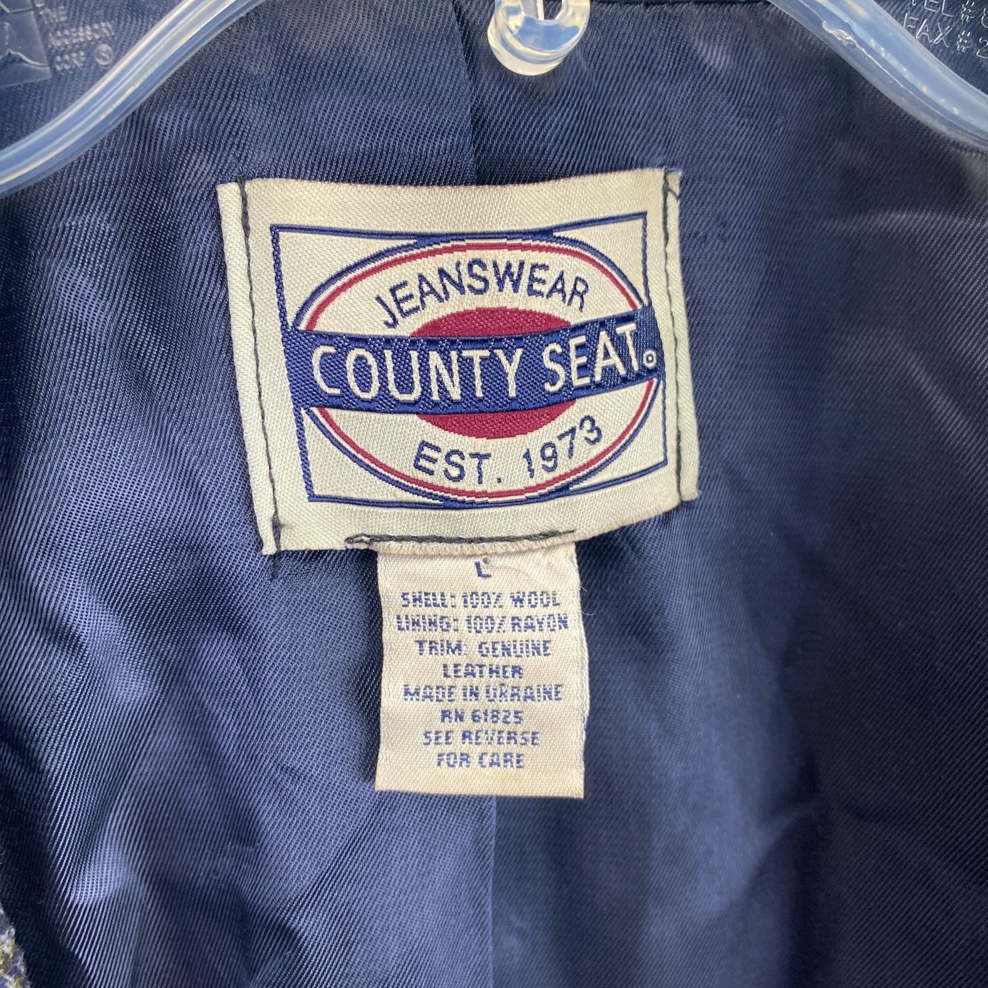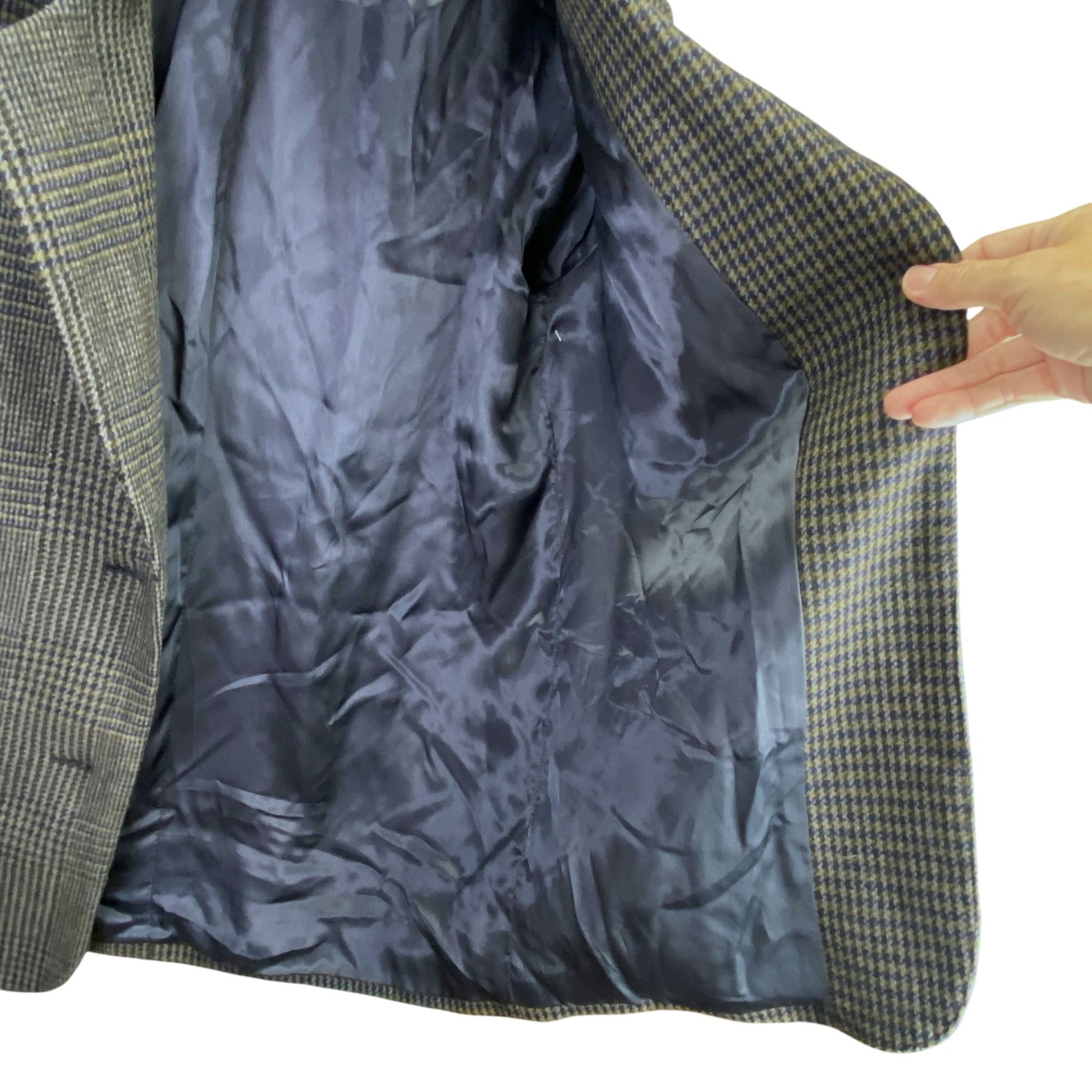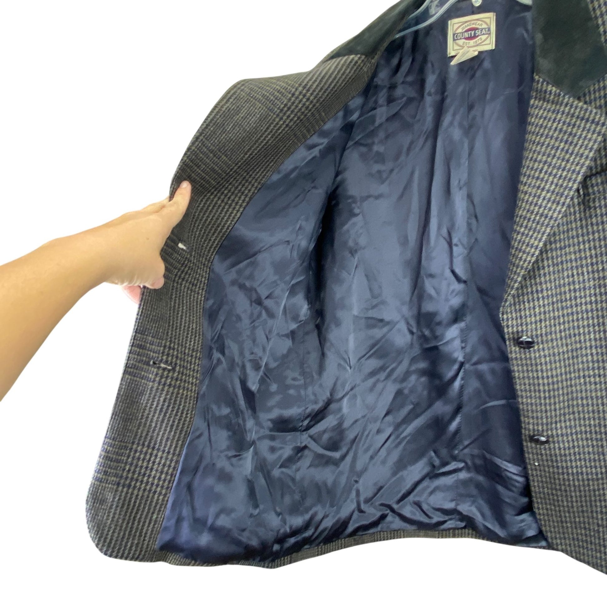 Vtg County Seat Houndstooth Plaid Wool Blazer Suede Leather Collar Mens L