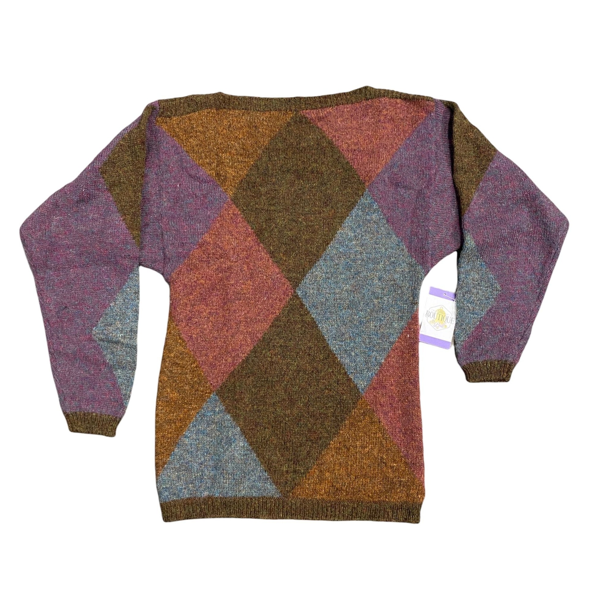 Vtg Ellen Tracy Shetland Wool Sweater Argyle Dark Academia S Purple Brown Blue