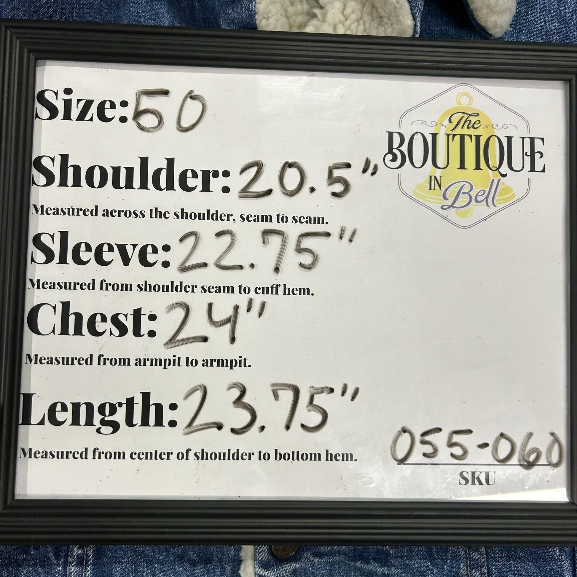Slight discoloration on the sherpa lining. Small spots on front and sleeve. Please see pictures for an accurate description of the item and condition. Colors vary based on perception and screen display.