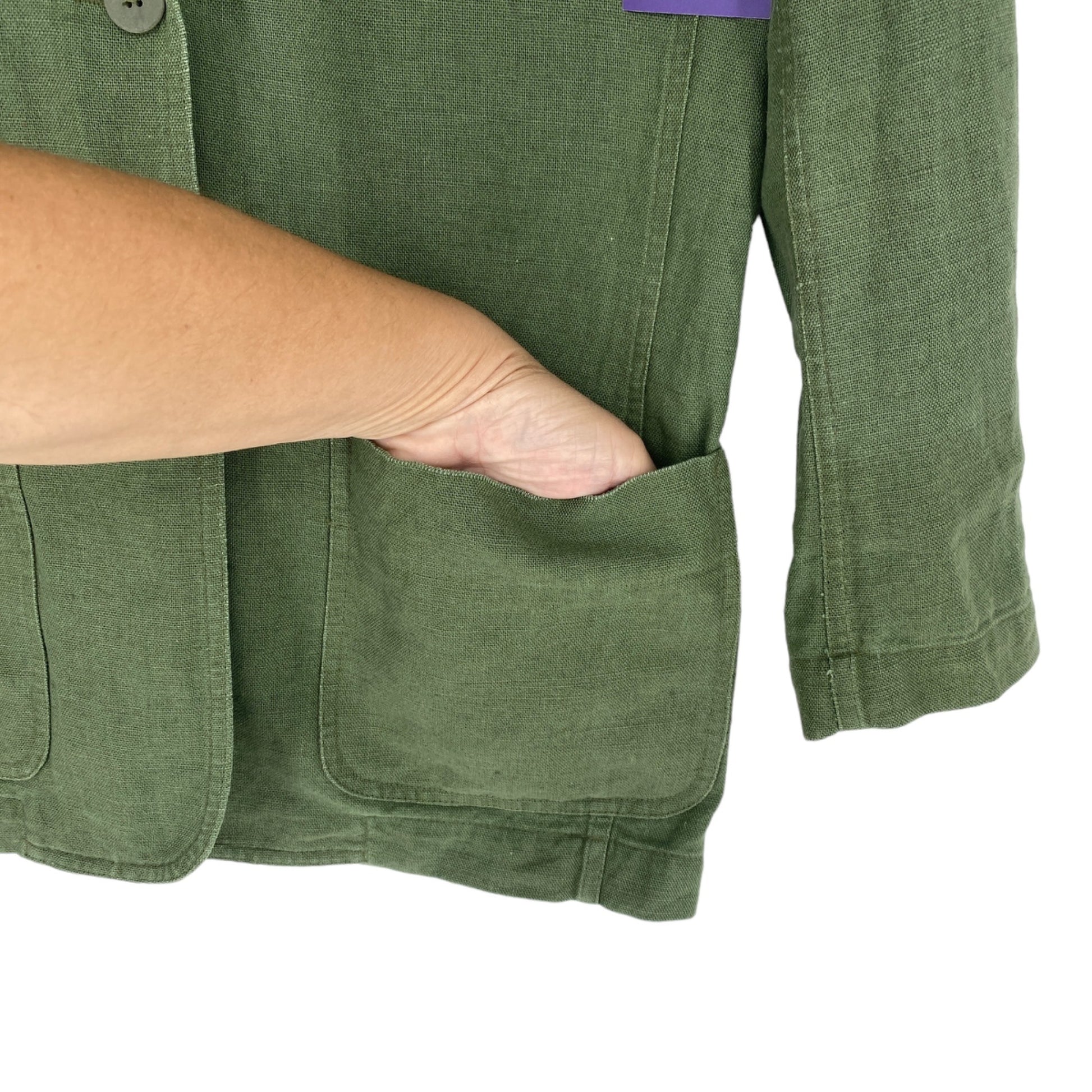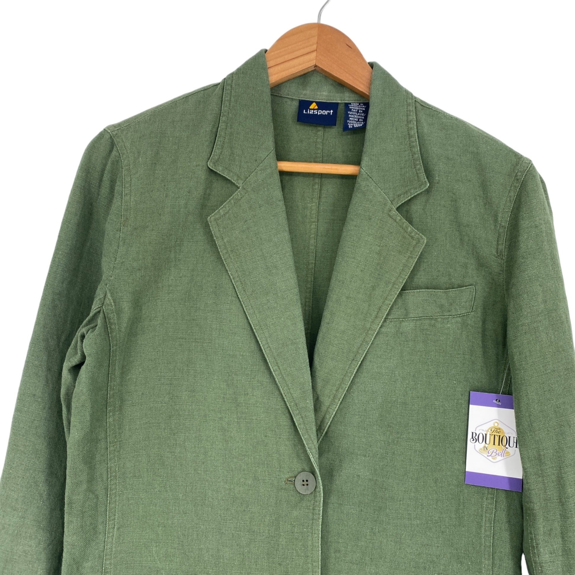 Vtg Liz Sport Linen Blazer Jacket S Green Career Academia Office Wear Quiet Lux