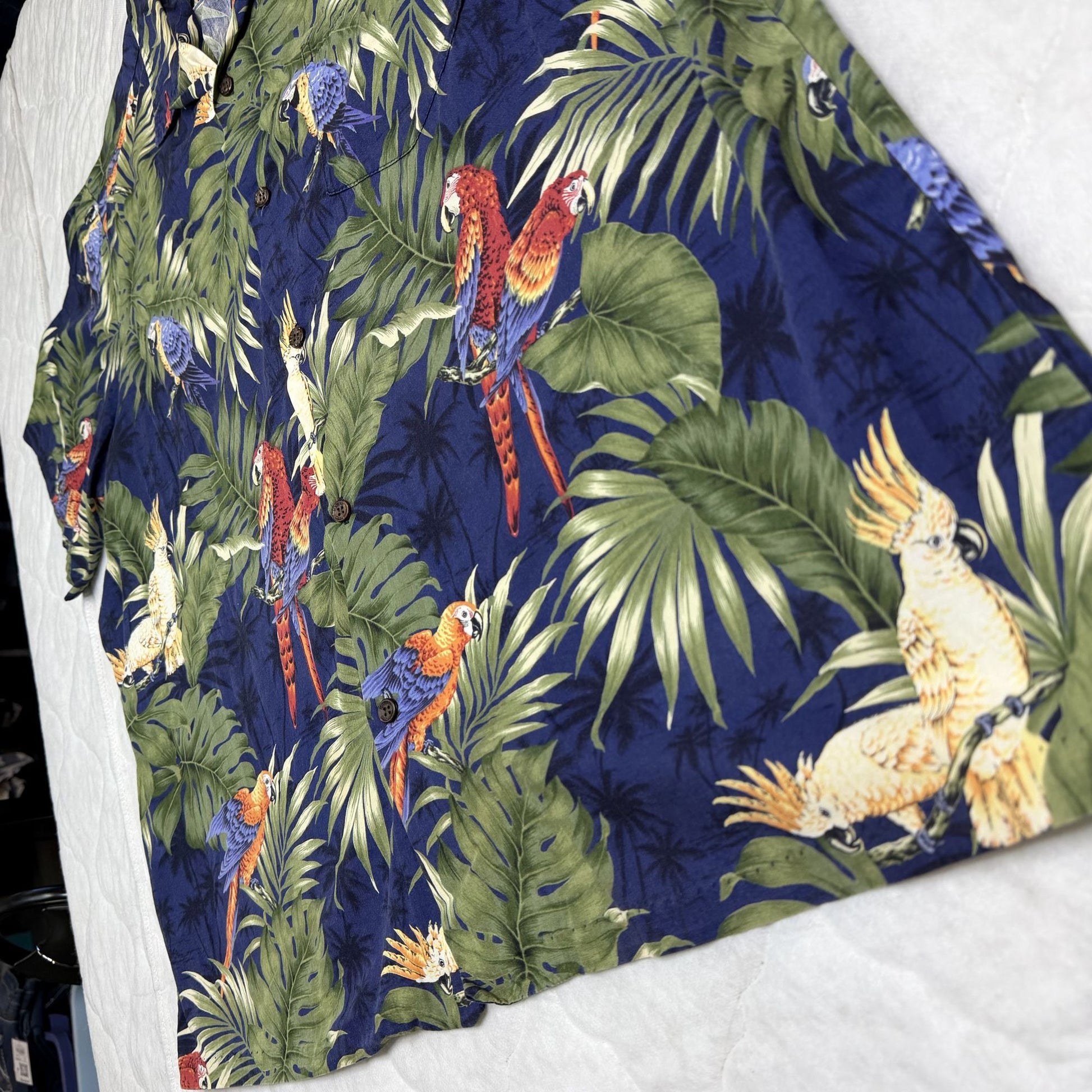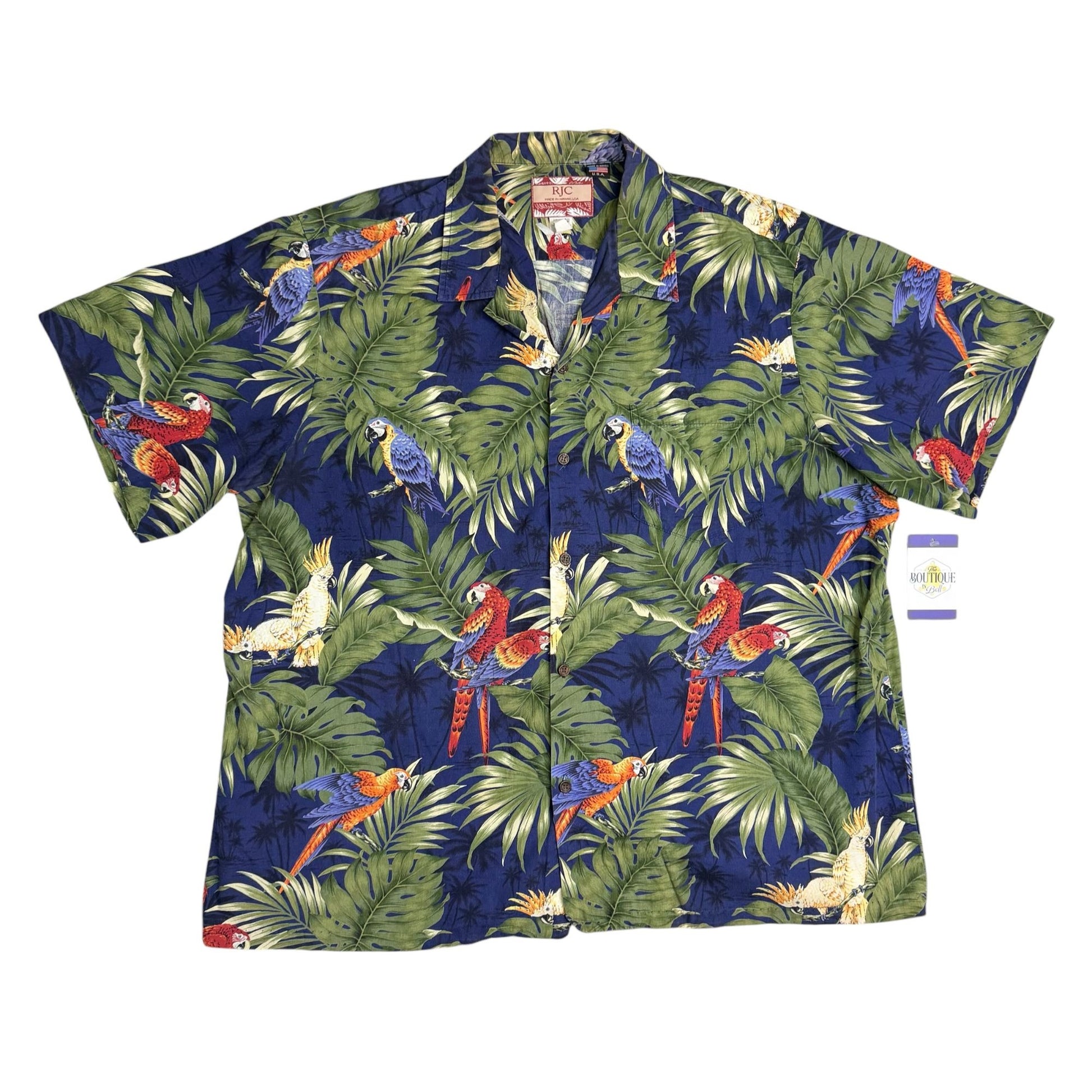 Vtg RJC Hawaiian Aloha Shirt 2XL Parrot Tropical Short Sleeve Hawaii USA Made