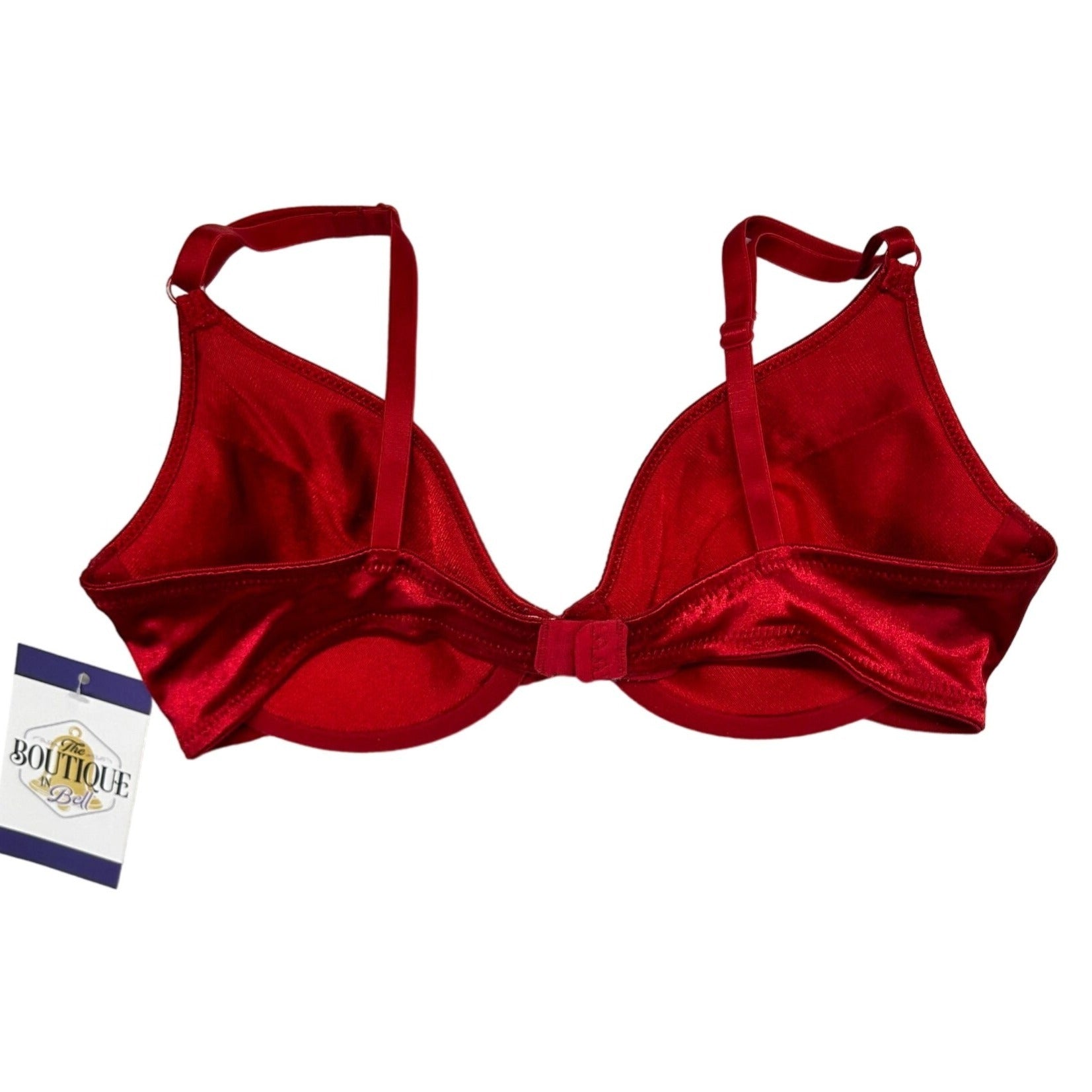 This timeless set of two vintage bras from Sears includes one sleek black and one rich red style, both crafted for a smooth, supportive fit with underwire shaping and light lining. Designed with adjustable straps and a soft satin-like finish, these pieces offer everyday comfort with an elegant retro aesthetic.