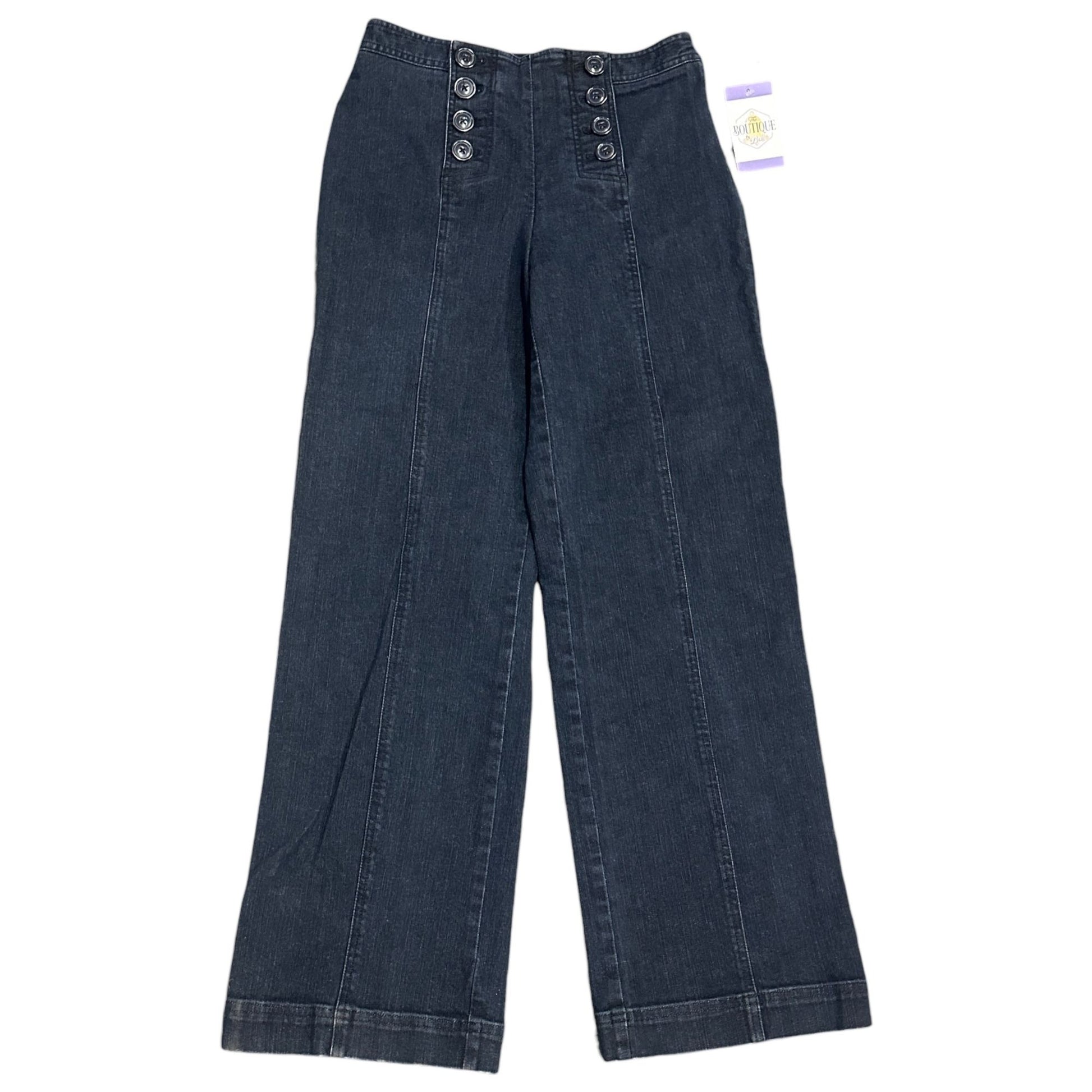 Vtg Talbots 6 High Waist Deck Trouser Pant Wide Leg Sailor Buttons Jeans Stretch