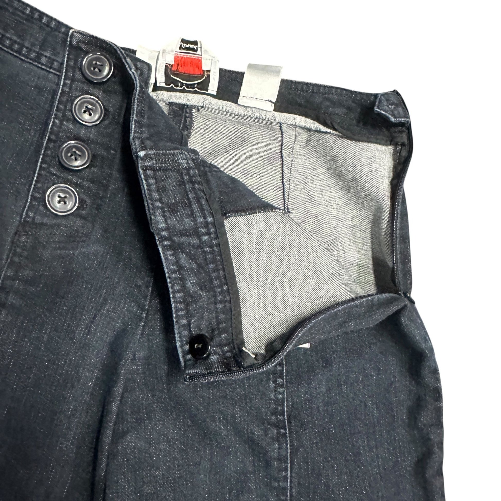 Elevate your style with these chic high-waisted deck trousers featuring a wide-leg design and sailor buttons. Perfect for any casual or semi-formal occasion, these dark wash jeans offer both comfort and a timeless nautical flair.