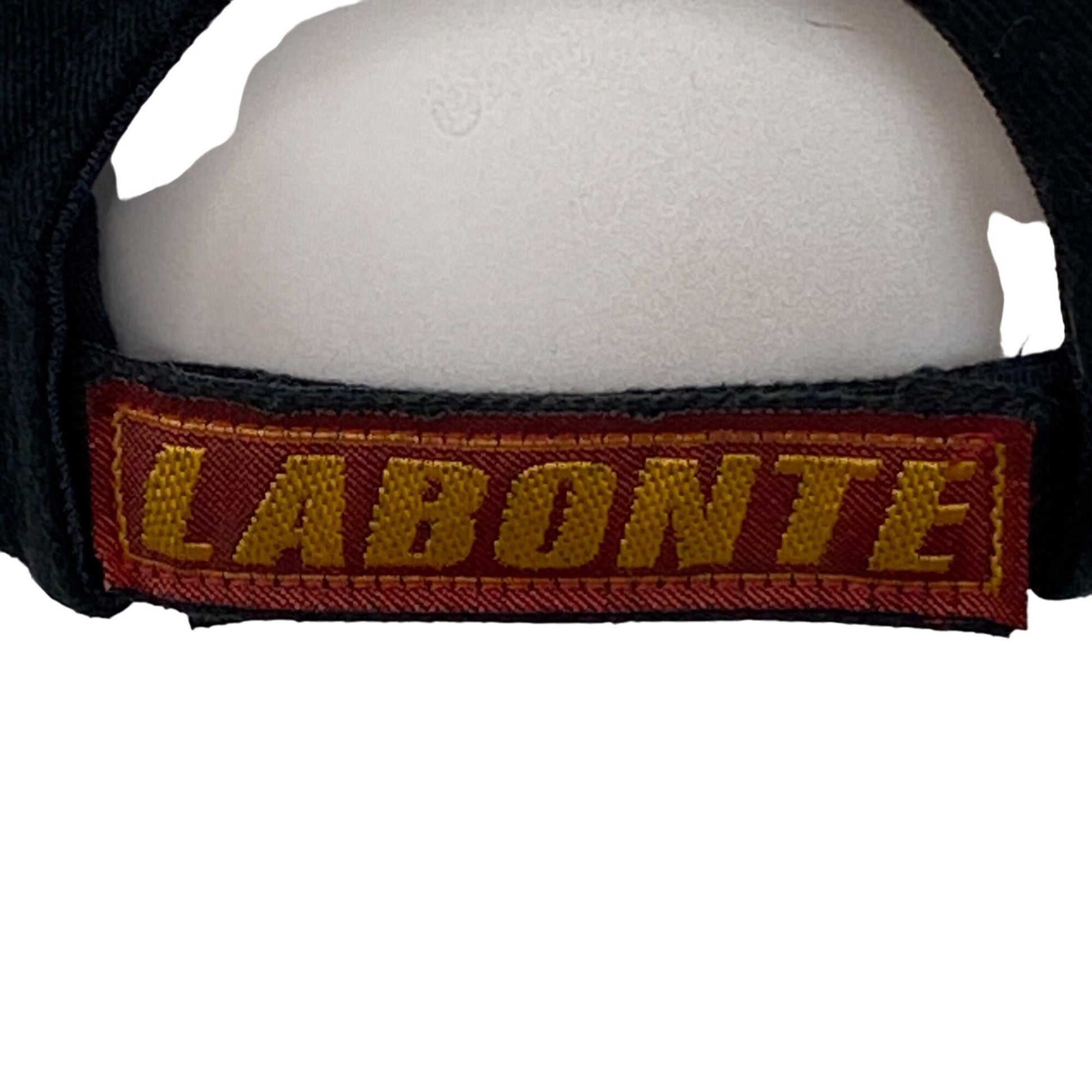 This vintage Terry Labonte #5 Kellogg's Racing adjustable strap hat is an officially licensed Chase Authentics collectible from the late 1990s. The front features bold embroidered "Kellogg’s Racing" graphics, while the back showcases Labonte’s signature and number. It comes complete with original tags and two collectible fan club pins, one dated 1993. Made of 100% cotton in the Dominican Republic, this structured black and red cap is a rare NASCAR find for collectors and racing fans alike.