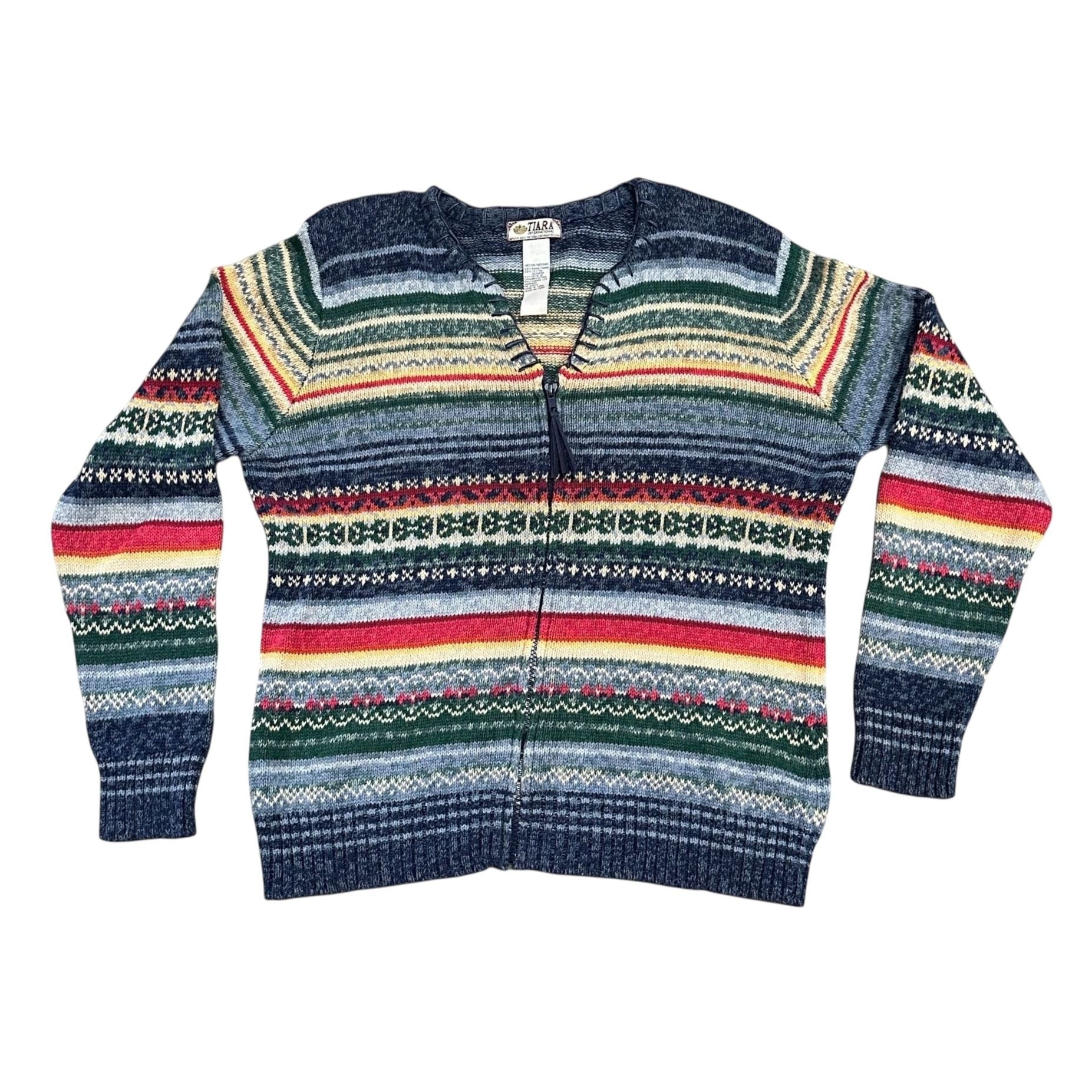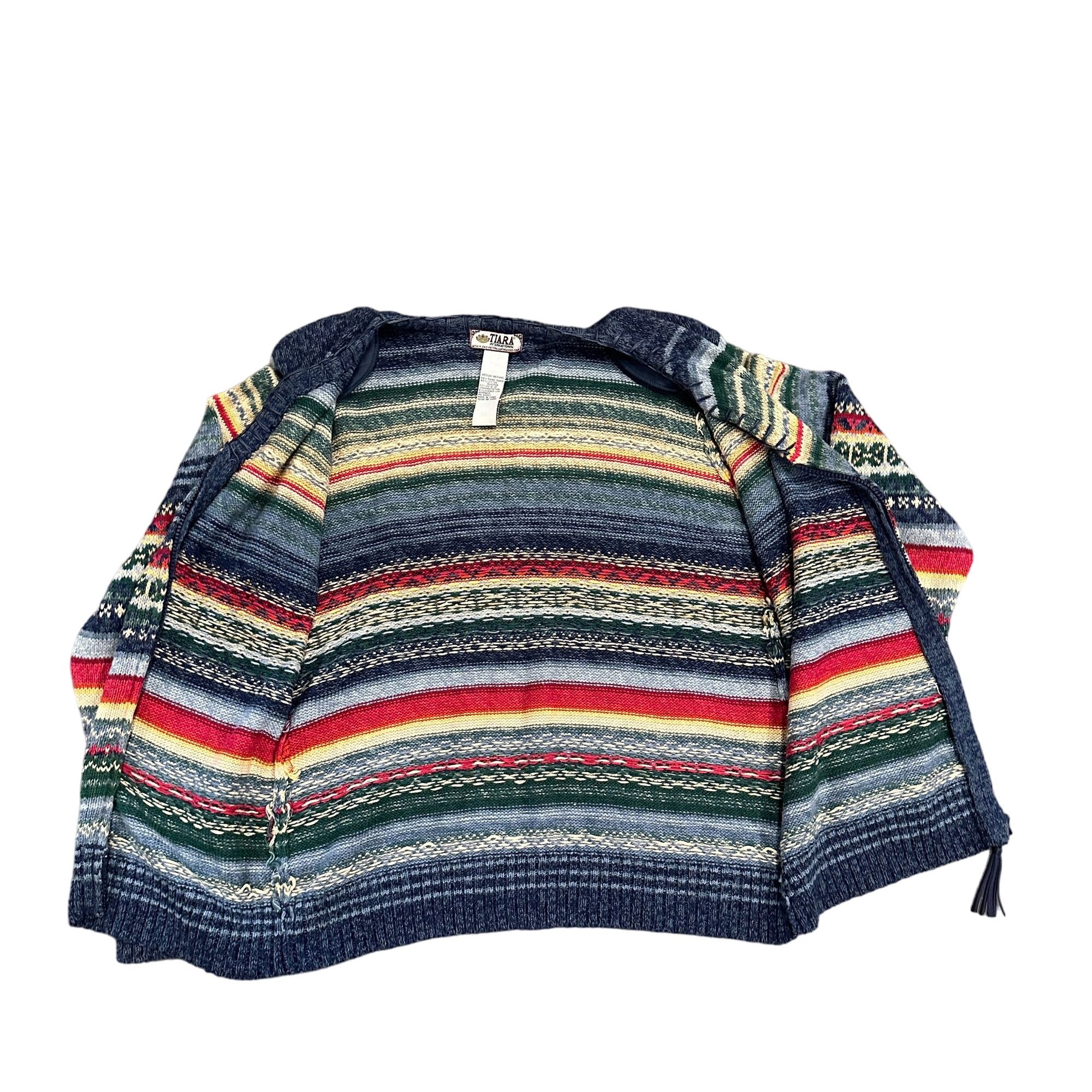Vtg Tiara International Cardigan Sweater M Striped Full Zip Preppy Granny Cozy