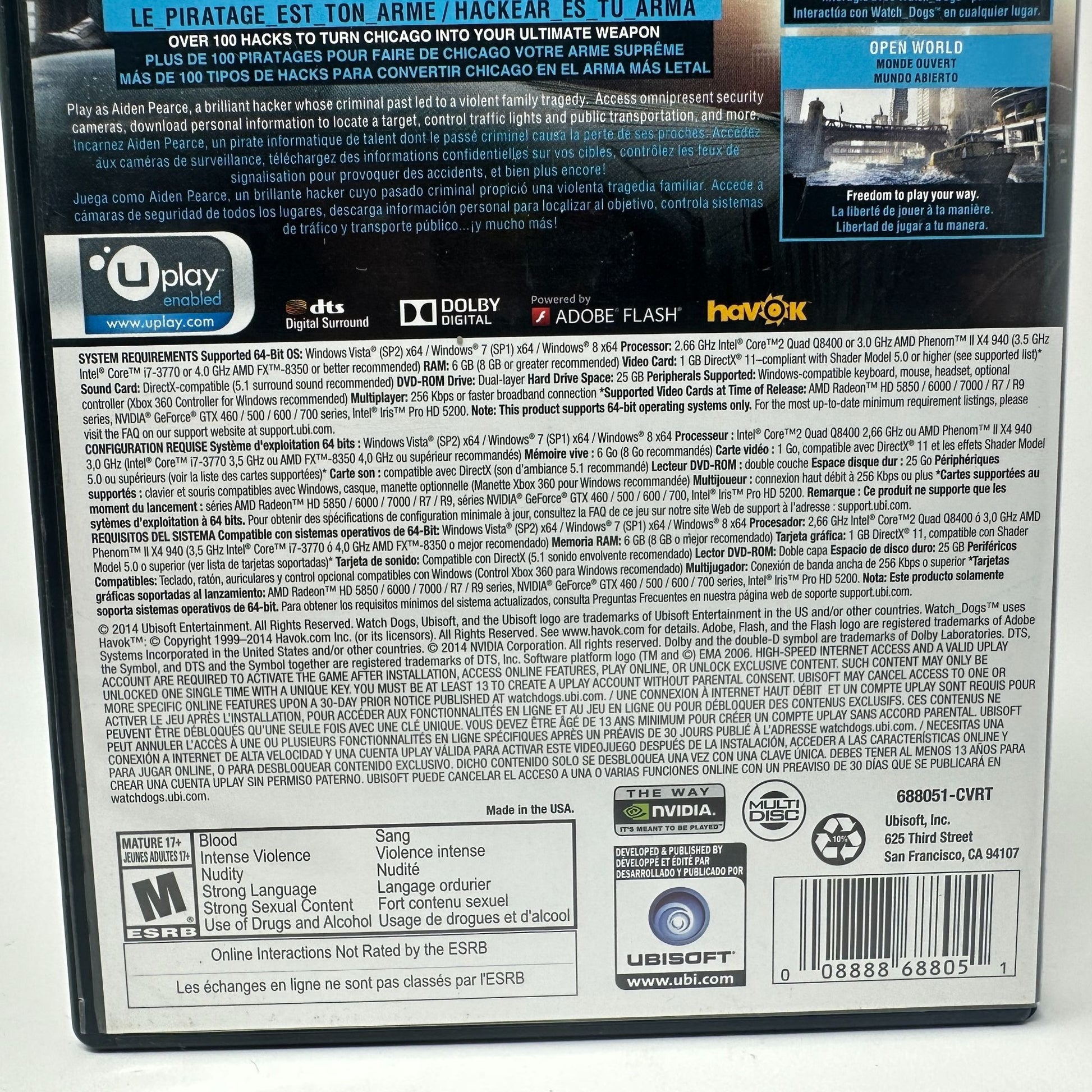 Watch Dogs PC DVD-ROM Computer Ubisoft Video Game in Case w/ Codes and Manual
