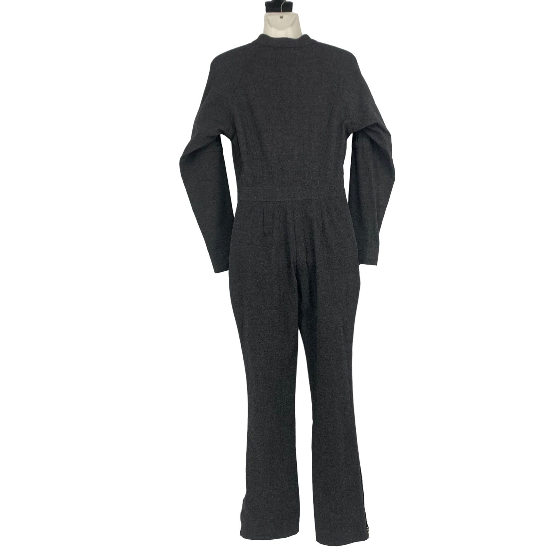 Womens Vtg Utility Jumpsuit Fubu L Gray Pockets Front Zip Side Leg Y2K Stretch