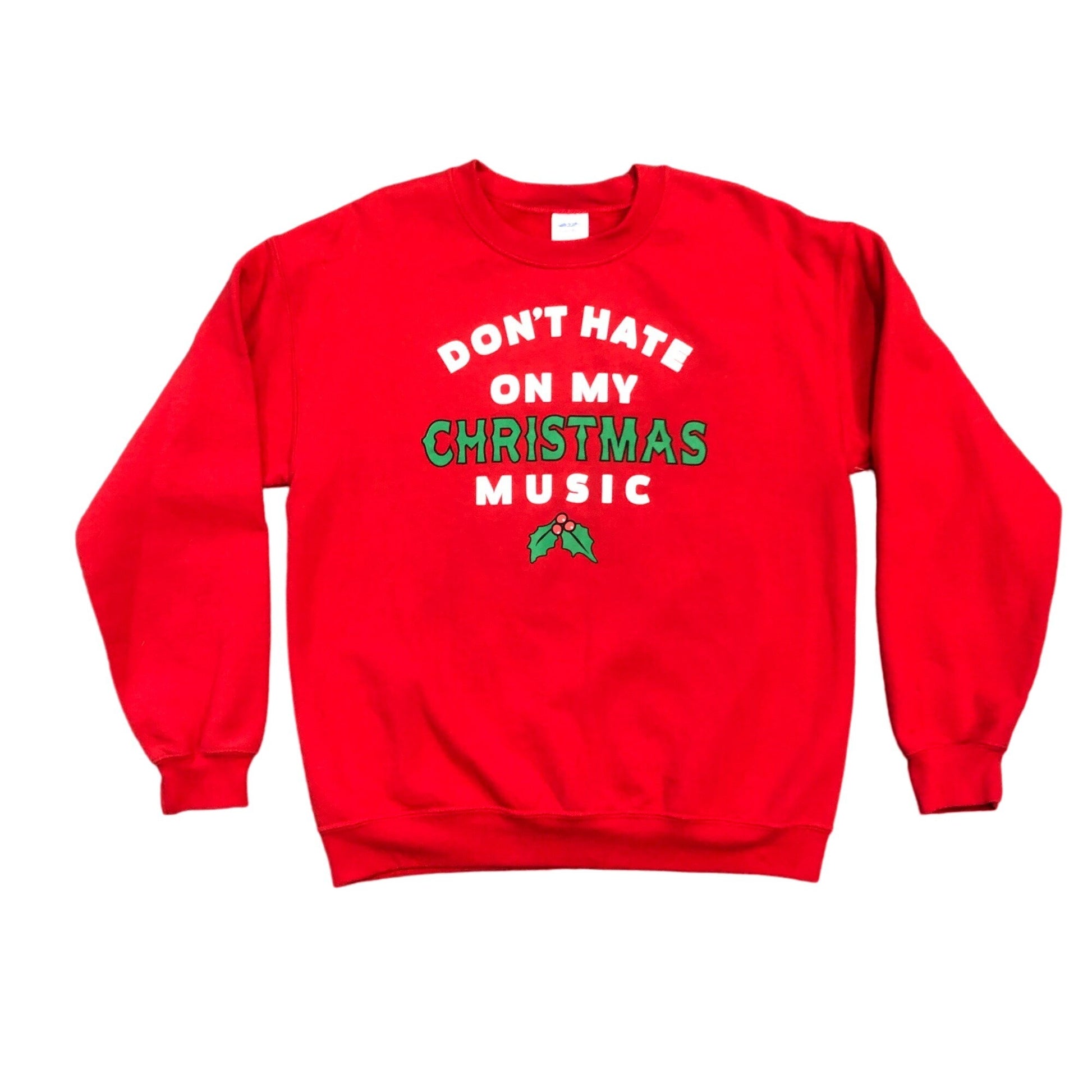 Xmas Novelty Sweatshirt "Don't Hate on my Christmas Music" Holiday Gildan M Red